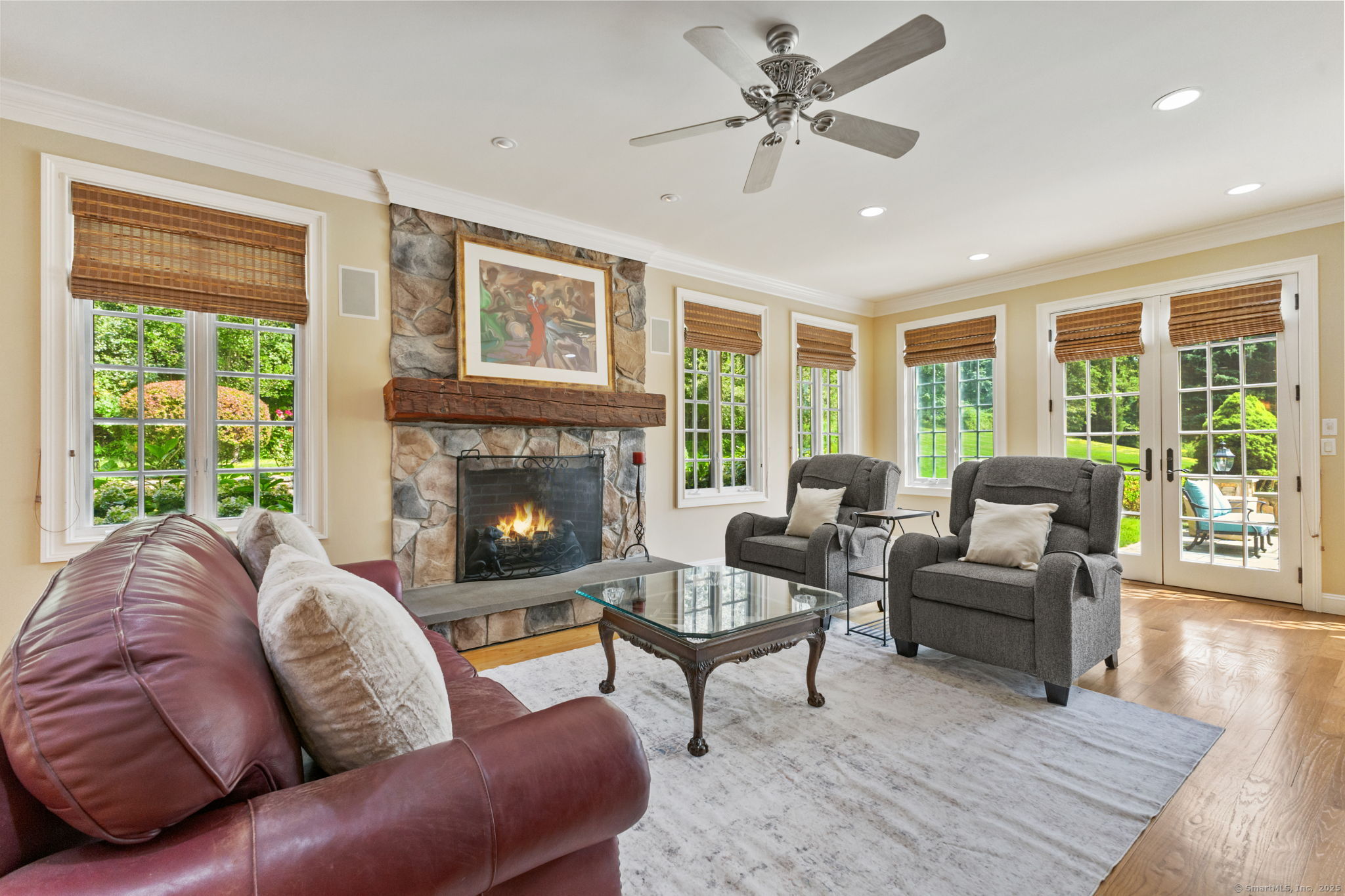 A refined Connecticut country residence for full-time living or weekend enjoyment, ideal for Westchester and NYC Buyers. Set on nearly three meticulously landscaped acres on a private cul-de-sac drive with only 4 residences, you will enjoy living in one of Redding's most desirable residential enclaves. 2 Longwood Drive offers a safe, secure, and sophisticated country lifestyle that resonates naturally with buyers seeking space, privacy, and enduring quality just beyond the city. Thoughtfully designed and meticulously maintained by its original owner, this custom-built colonial blends classic New England architecture with modern luxury, creating a residence equally suited for full-time living or refined weekend use. Spanning 6, 259 square feet, the home features beautifully proportioned interiors with spacious 9-14 foot ceilings, hardwood floors throughout, and an open yet elegant flow ideal for both everyday living and entertaining. A 47' stone-covered front porch, perfect for watching the amazing sunsets, and a central foyer introduce the main level, where light-filled spaces unfold seamlessly from room to room. The sunlit chef's kitchen serves as the centerpiece of the home, appointed with premium Sub-Zero/Wolf/Thermador appliances, custom cabinetry, a generous center island, and a butler's pantry, each designed for effortless hosting and daily comfort. The kitchen includes a hexagonal breakfast area with French doors overlooking the rear garden with a 100 foot stone wall. Enjoy time together in the spacious family room around the gas fireplace and pour cocktails at the wet bar, featuring a wine refrigerator and ice maker. Open the family room doors and relax outside on the 2nd stunning stone patio, all overlooking the serene, manicured grounds. A formal dining room offers elegant entertaining, while a dedicated home office with custom built-ins provides an ideal remote-work environment. An oversized mudroom with multiple points of entry connects the oversized 3-car garage (with a 12' ceiling to accommodate several lifts), 2nd front entry, and a rear patio adds the practicality expected in a well-designed country residence. The second level is anchored by a serene primary suite offering the rare luxury of two full bathrooms, complemented by three additional bedrooms, a large recreation room, and a thoughtfully placed laundry room. A dramatic third-level finished living space, served by a five-bedroom septic, functions beautifully as a fifth bedroom, in-law suite, guest suite, or private retreat, complete with a full bath and steam shower. An unfinished lower level of nearly 2, 300 square feet provides exceptional flexibility for future living, fitness, or entertainment space. Outdoor living is equally considered, with two stone patios surrounded by mature plantings, classic stone walls, and a huge sunny lawn space to add a pool. With a whole-house generator, and proximity to the Redding Country Club, town amenities, and commuting routes, 2 Longwood Drive presents a distinguished country residence defined by thoughtful scale, refined layout, and enduring quality, whether enjoyed full-time or on weekends. If you feel like getting outside, visit the nearby shops and restaurants in Ridgefield, Bethel, and Georgetown, or take-in the July 4th / Labor fireworks from one of the outdoor patios.