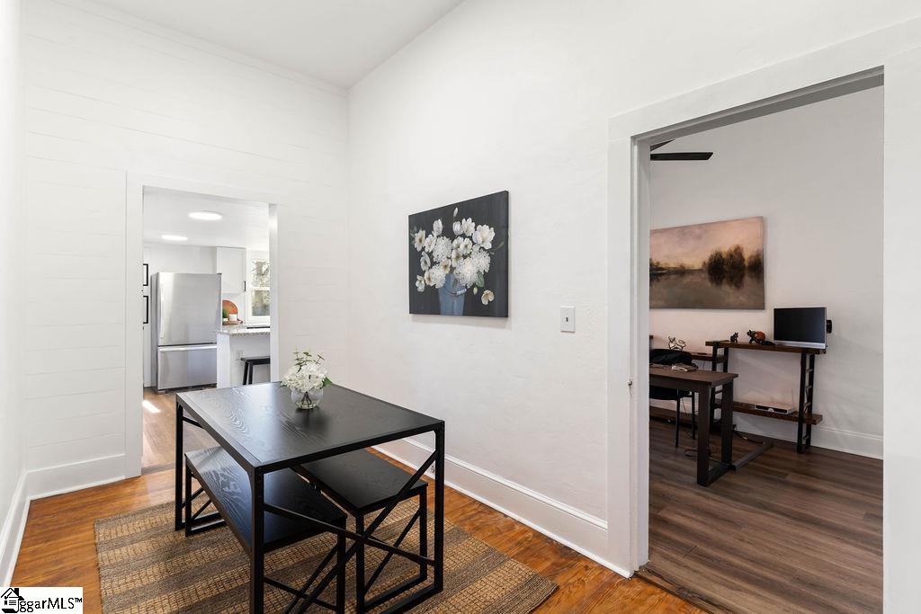 Rarely does a property offer this level of versatility, scale, and modern updates while still holding on to its old world charm. Sprawling over an acre near the heart of Downtown Laurens, this updated 2, 700+ square foot residence is a masterclass in flexible living. The interior has been completely transformed with fresh paint and comprehensive renovations to all three full bathrooms and both kitchens. The primary culinary space is a true showstopper, featuring a massive chef’s island, abundant cabinetry, and large windows that flood the room with natural light. This is complemented by a generous living room and two well sized family/entertainment rooms, creating an open, airy atmosphere perfect for large-scale entertaining. What defines this property’s unique value is in it's layout. Featuring two distinct front entrances, the home is fit to operate either as one large single-family home or as two fully independent living suites. This seamless separation is made possible by the inclusion of two full kitchens and two separate laundry areas—ensuring that each "wing" of the home (each boasting two bedrooms) has complete functional autonomy. Whether you are looking for a sophisticated multi-generational setup or a high-potential "house hack" where you can live in one side and rent the other, the infrastructure is already perfectly in place. The excellence continues outdoors with a deep, covered front porch that exudes Southern charm and a private screened-in patio that serves as a peaceful retreat. With its prime location close to local amenities and its rare "two-homes-in-one" capability, this property represents a singular opportunity in the Laurens market.