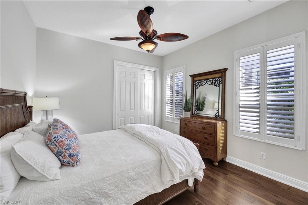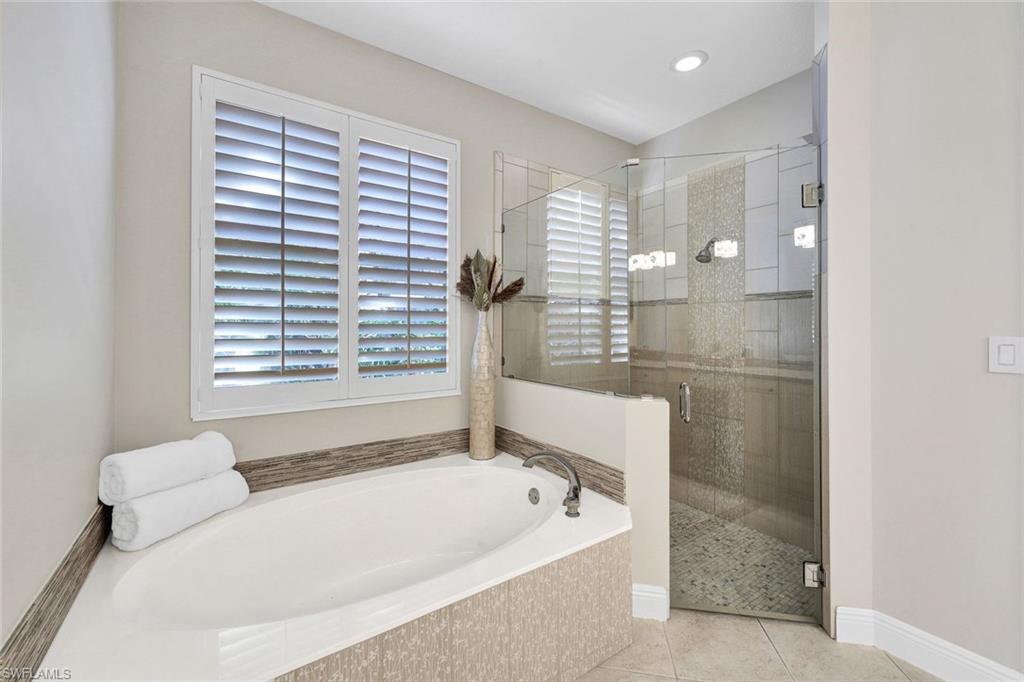 The primary suite serves as a private retreat with wood flooring, dual vanities, a relaxing garden tub, and a frameless glass shower. Residents of Fiddler’s Creek enjoy an award-winning, gated lifestyle with resort-style amenities including a community pool and spa, tennis, pickleball, bocce ball, a sauna, on-site dining, and optional golf, marina, and beach memberships.