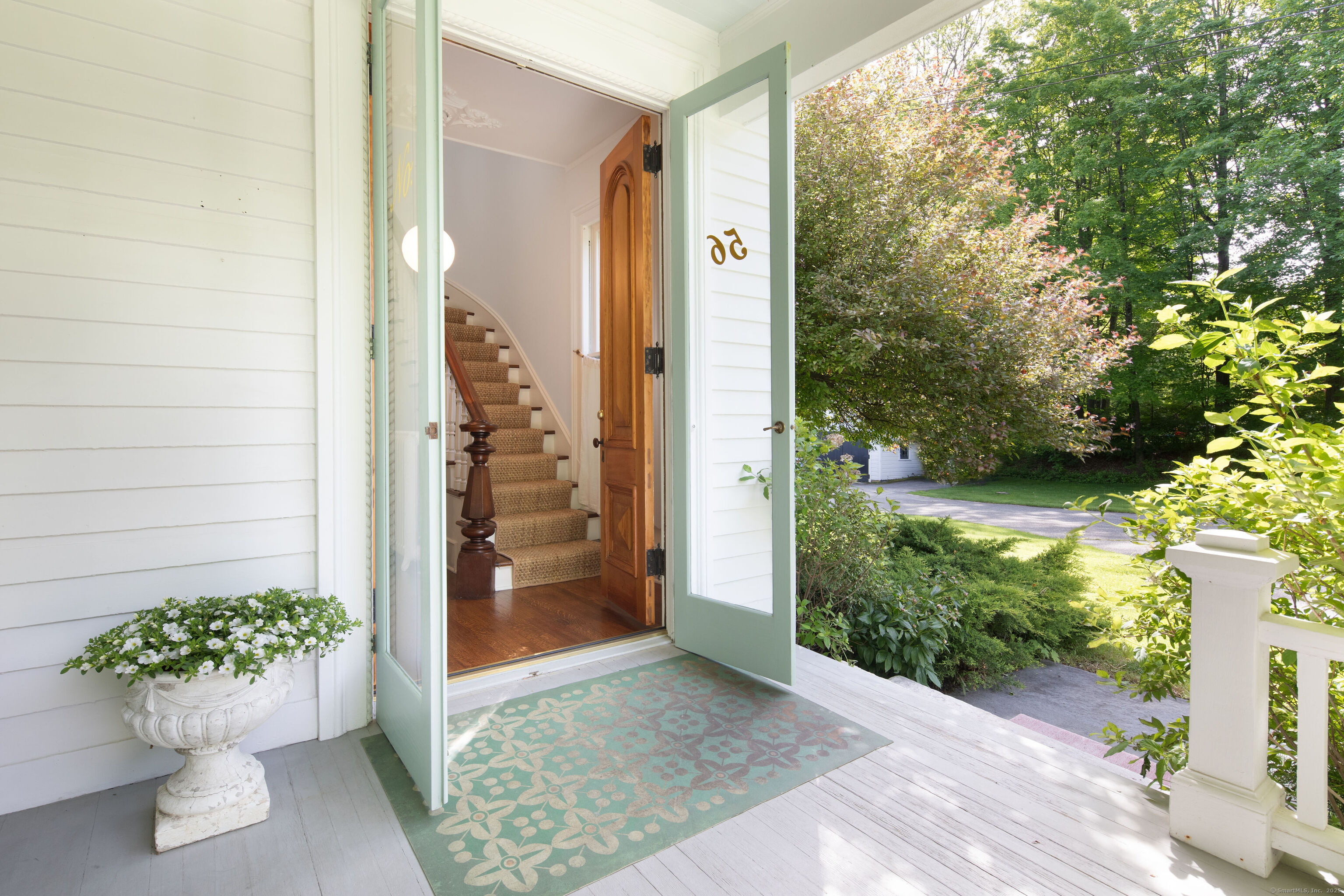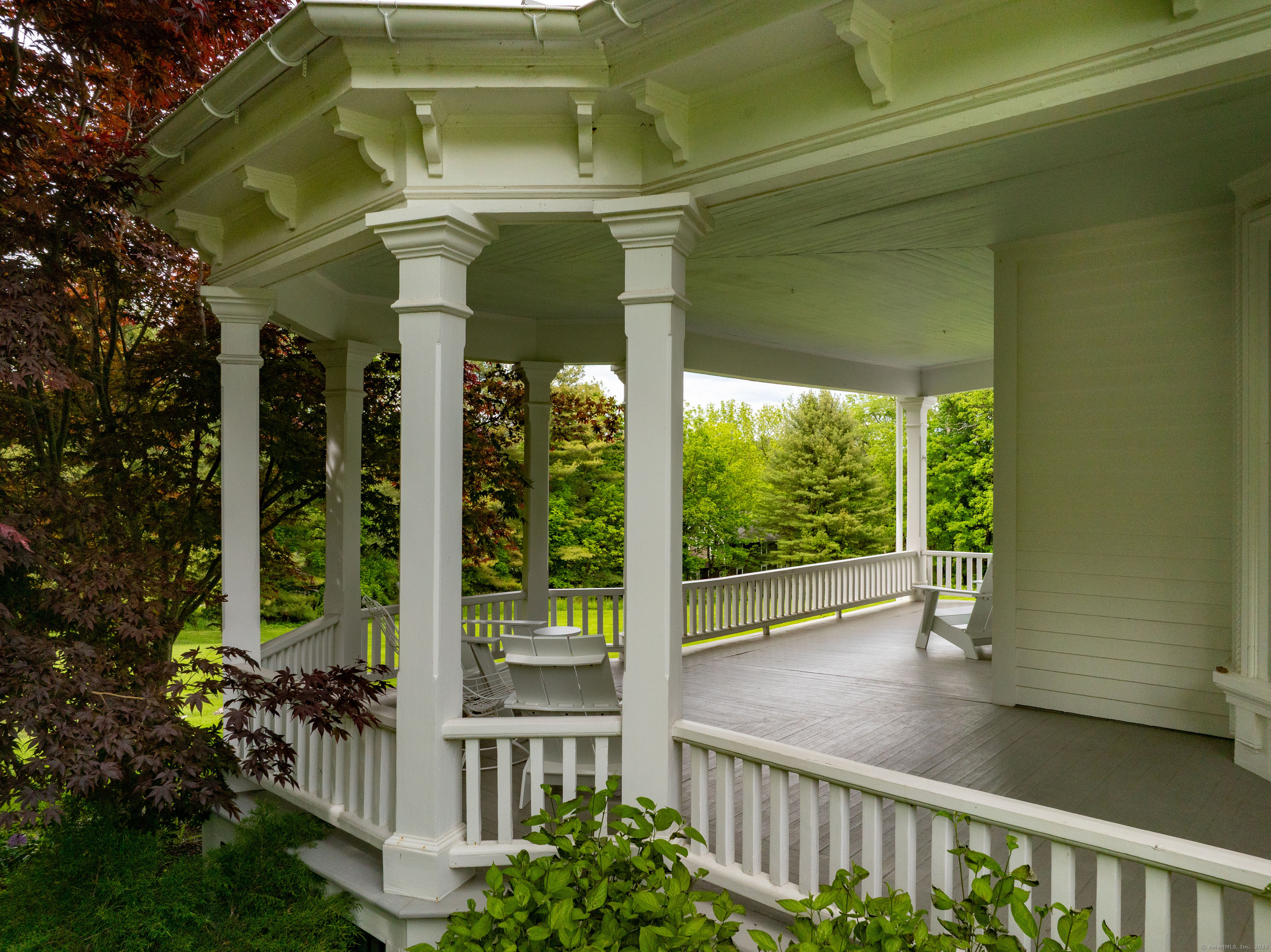 This distinguished 1880s Victorian residence in the heart of Lakeville village offers a masterful blend of period craftsmanship and contemporary luxury on 2. 5 private acres. Located moments from both the town green and Lakeville Lake, this meticulously restored 5-bedroom estate presents refined living in one of Litchfield County's most sought-after locations. The welcoming wrap-around covered porch leads to an elegant entry hall featuring a striking curved staircase. Grand proportions define the formal rooms, where original wood-burning fireplaces, soaring ceilings, and oversized windows create an atmosphere of timeless sophistication. The gourmet kitchen showcases top-tier stainless appliances, substantial island, and bespoke wood cabinetry, with a bright dining area flowing to the generous rear deck overlooking the grounds. The second floor houses a bright primary suite with ensuite bath, three additional bedrooms, a dedicated home office, and a luxurious bathroom featuring custom marble, Waterworks fixtures, and radiant heat flooring. A stylish laundry room and thoughtful storage complete this level. The third floor provides a secluded guest retreat with original wood floors, flexible studio space, and cedar-lined storage. The property's exceptional amenities include a versatile two-story barn with basement-ideal for studio, workshop, or recreational pursuits-plus a detached one-car garage. The Serene grounds frame this village estate, offering the rare combination of in-town convenience with country property privacy just steps from Lakeville's shops, restaurants, and recreation.