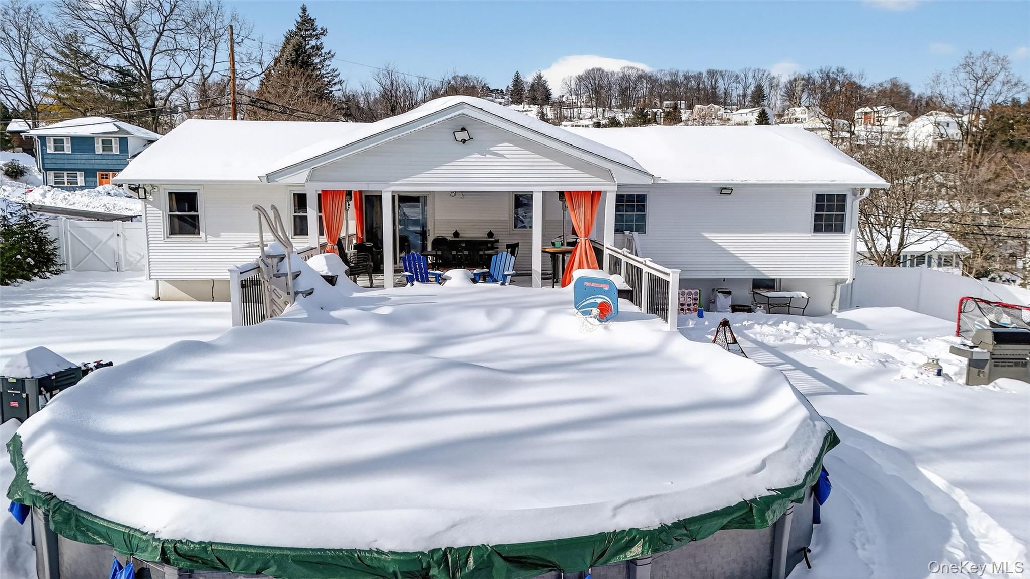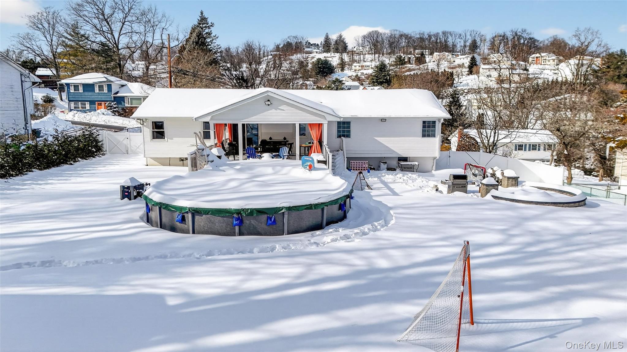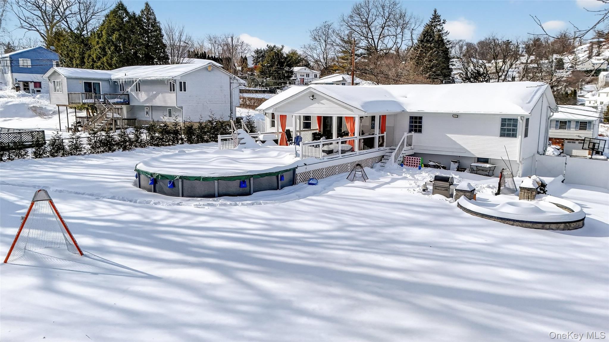 Welcome to 4 Adams Drive in Stony Point, a beautifully maintained home that radiates pride of ownership throughout. This bright and sun-filled residence offers 4–5 bedrooms and two full baths, anchored by a gorgeous open-concept kitchen that serves as the heart of the home. Featuring stainless steel appliances, rich granite countertops, and a spacious layout ideal for both everyday living and entertaining, the kitchen flows effortlessly into the main living areas and through sliders that lead directly to the incredible covered deck—creating a seamless indoor-outdoor living experience. From the deck, enjoy a thoughtfully designed backyard made for gathering, complete with beautiful architectural details, professional outdoor lighting, a built-in fire pit, paver patio, and an above-ground pool. The level, fully fenced property is also prepped for an outdoor kitchen, offering endless possibilities for outdoor enjoyment. The lower level adds exceptional flexibility with wood-grain tile flooring, custom built-in entertainment cabinetry, and a full bath, making it ideal for extended living, guests, a home office, or recreation space. Warm oak floors, solar power for energy efficiency, and meticulous upkeep throughout further enhance this home’s appeal. Ideally located near the Hudson River, Bear Mountain and Harriman State Park, residents can enjoy boating, kayaking, hiking, biking, scenic trails, and endless outdoor recreation just moments away. Combined with easy access to nearby villages, parks, and commuter routes, this home offers the perfect balance of comfort, lifestyle, and location in the heart of Stony Point.
