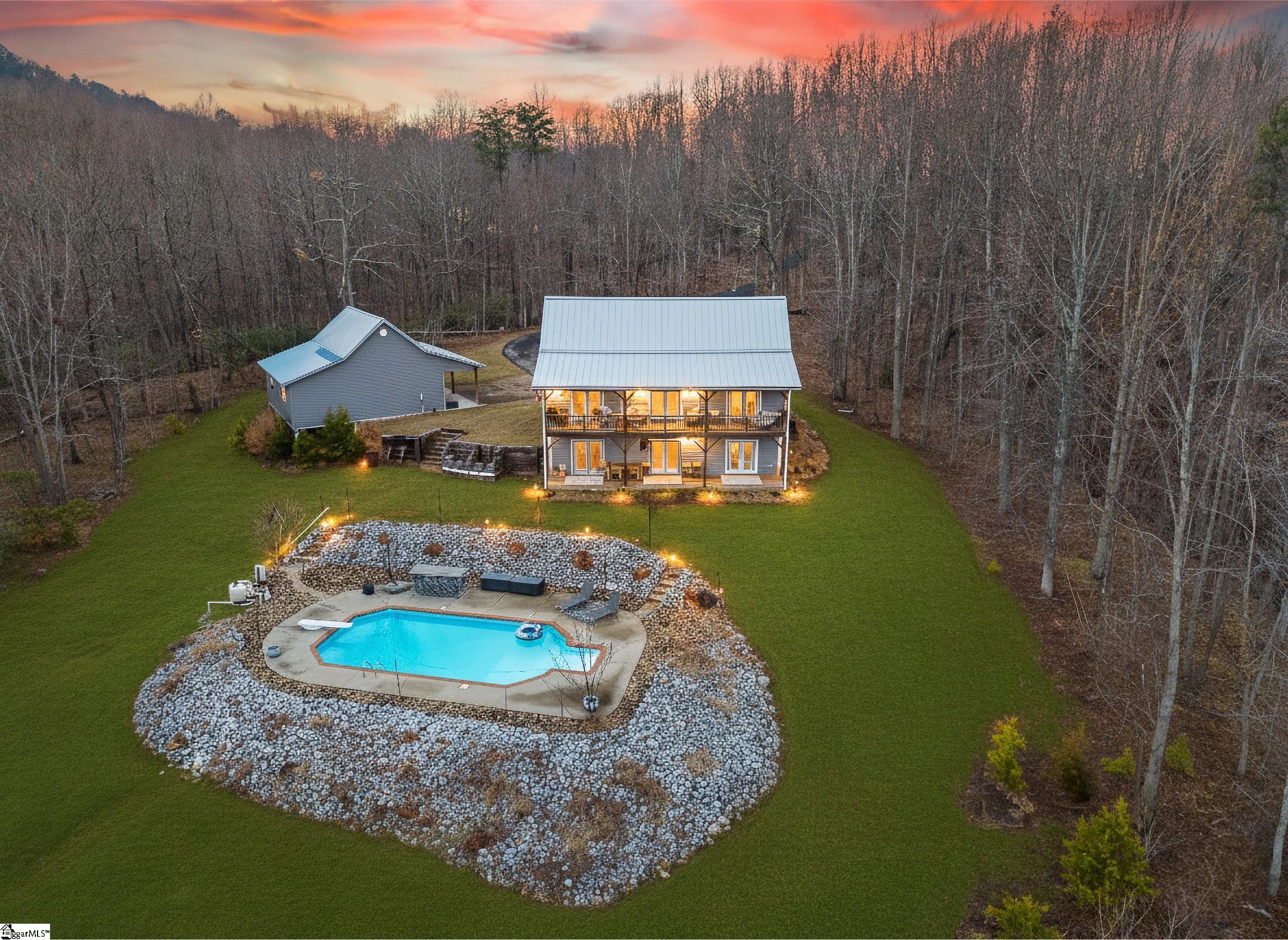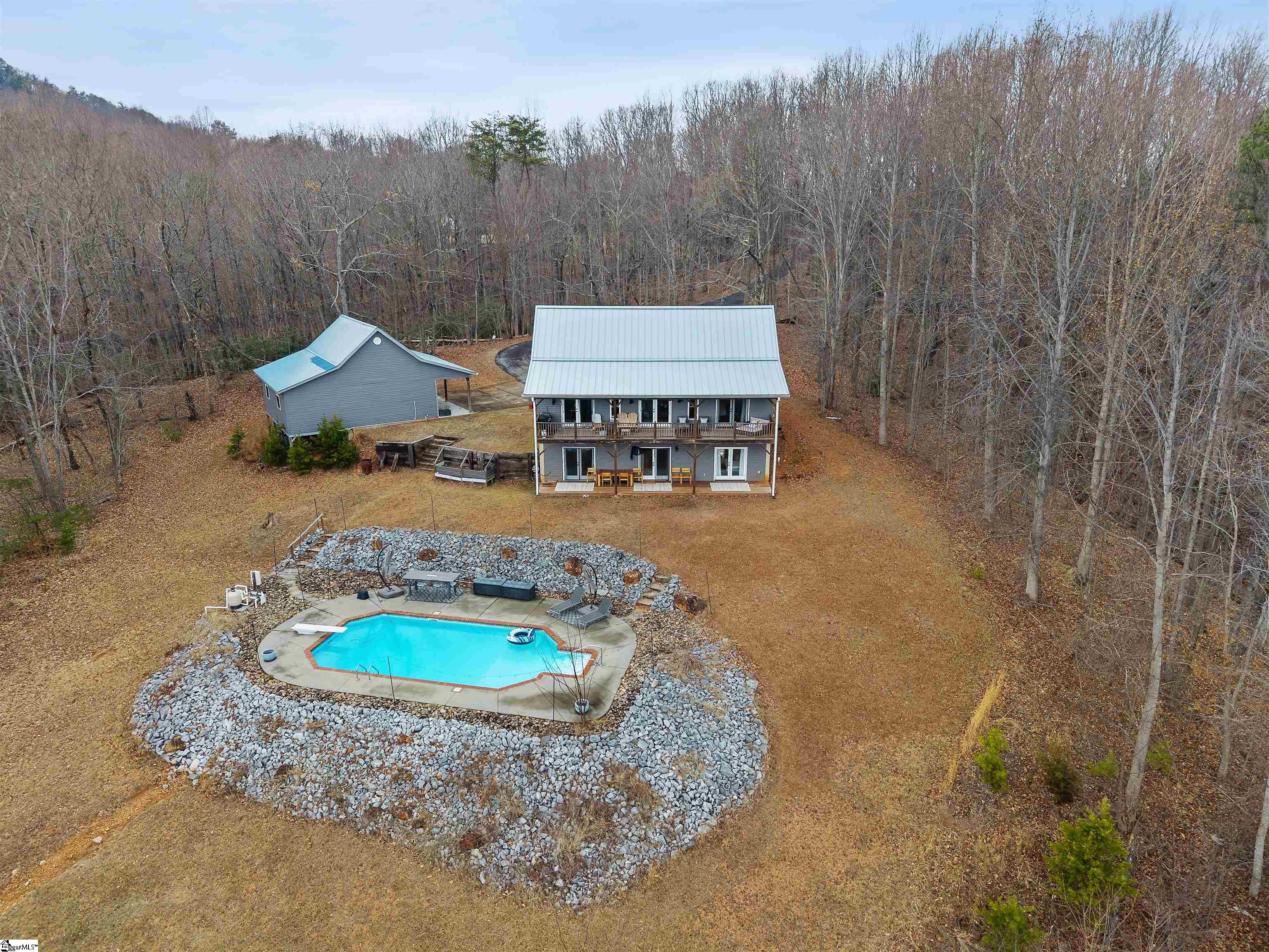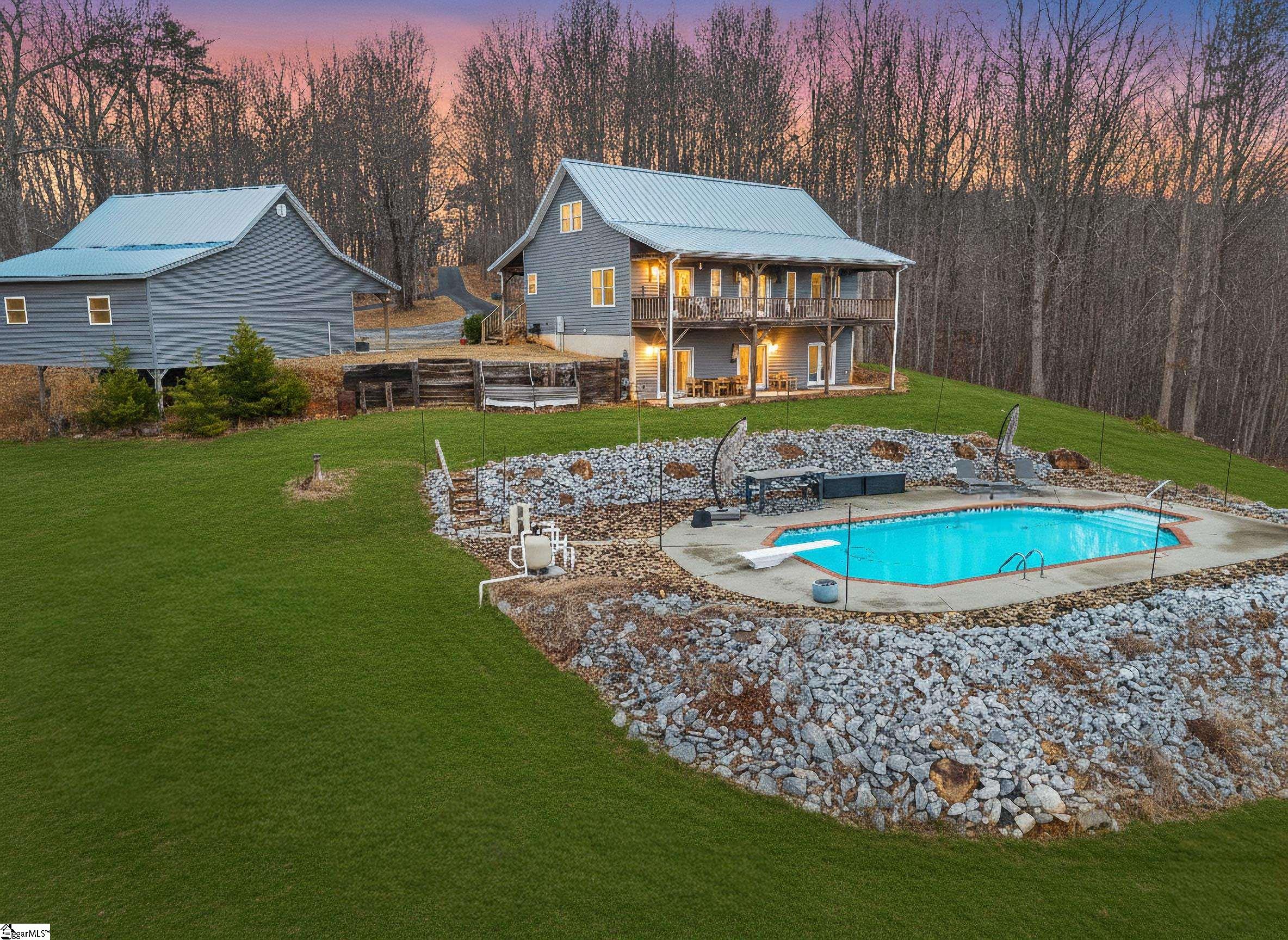 Here’s your fully polished, MLS-friendly, luxe version—clean, elevated, and irresistibly show-worthy: ? Tucked into the foothills of the Blue Ridge Mountains, 523 Upper Springs Road offers a rare blend of privacy, long-range views, and thoughtful updates in a peaceful, nature-rich setting just minutes from the charm and growth of downtown Pickens. You might almost miss the drive as you pass—but that’s part of the magic. A gently rising, fully accessible approach (no AWD required) crests before revealing a stunning descent into the property, where the landscape opens to sweeping mountain views and a breathtaking first glimpse of the home. This beautifully refreshed mountain retreat features 4 bedrooms + loft, 2 spacious living areas, 2 bathrooms, and approximately 2, 940 square feet designed to connect seamlessly with its surroundings. A classic cabin exterior—anchored by a new 50-year metal roof—sets the tone, while expansive covered porches across both rear levels and the front of the home create effortless spaces to enjoy fresh mountain air, seasonal changes, and abundant wildlife. Inside, soaring ceilings and expansive windows frame breathtaking views from nearly every room. Multiple French doors extend the living spaces outdoors, enhancing natural light and creating seamless indoor-outdoor flow. The main level has been thoughtfully updated with new interior paint and drywall, refreshed finishes, new kitchen tile flooring and backsplash, and updated cabinet hardware. The primary suite offers direct porch access and serene views, creating a true private retreat. The fully updated walkout basement provides exceptional flexibility, featuring newly finished bedrooms, a full bathroom, and a utility room—all with fresh drywall, paint, and new carpet with upgraded padding. With direct access to the backyard and pool area, it is ideal for guests, multigenerational living, or a secondary living space. Outdoor living is where this property truly sets itself apart. Step outside and imagine the height of summer—warm air, the quiet hum of nature, and a private pool tucked into the trees, completely surrounded by lush foothills forest and layered mountain views. With no visible rooftops and exceptional privacy, this is a setting designed for both relaxation and escape. The pool has been upgraded with a new pump, filter, and cleaning system, and is connected by custom rock pathways, refreshed decking, and improved access points, creating a low-maintenance and immersive outdoor experience. Additional improvements include coded front door and garage entry, new blinds and curtains throughout, updated door hardware, a new utility room refrigerator/freezer, and a new washing machine. A separate three-car garage provides ample space for vehicles, storage, or workshop use. Located near **Nine Times Preserve, Nine Times Forest, Caesars Head State Park, and extensive hiking trails—including much of the South Carolina portion of the Foothills Trail—**this property offers an exceptional lifestyle for those seeking space, scenery, and quality construction without sacrificing access to nearby amenities. The community HOA is designed to protect privacy, lot integrity, and long-term value—not restrict lifestyle. The property is registered as a farm, allows for horses or cattle, and offers subdivision potential (see CCRs for details). A rare opportunity to own a private mountain retreat with meaningful updates, unforgettable views, and true lifestyle appeal.