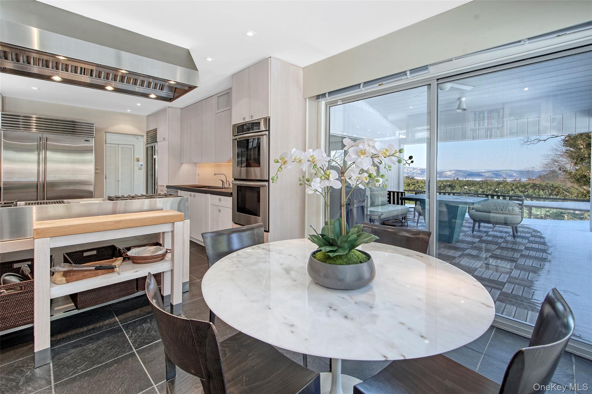 BREATHTAKING YEAR ROUND HUDSON RIVER PANORAMIC VIEWS define this iconic Mid-Century Modern residence! Located on Briarcliff’s coveted Ridgecrest Road in the highly sought-after Briarcliff Manor School District, this modern masterpiece, being sold FURNISHED, is well known in architectural and interior design circles. Ideally located just minutes from the Scarborough Metro-North station, this home offers an easy commute to New York City. Set on a private acre of level, park-like grounds with mature trees, the property enjoys exceptional river views from nearly every room. Upon entering the home, a short mezzanine staircase leads to a dramatic, light-filled great room with integrated living and dining areas, where expansive walls of glass blur the line between indoors and out. Architectural details include hardwood floors, a limestone entry, custom lighting, and exceptional millwork with built-ins. The Chef’s kitchen features custom-designed cabinetry and premium appliances—Sub-Zero refrigeration and wine storage, Thermador double ovens with integrated microwave, a Viking six-burner gas range with griddle, and a Cove dishwasher—and opens to a river-facing terrace for outdoor dining. The main level includes a family room or library with fireplace and a first-floor bedroom with en-suite bath. The lower bedroom level offers a private primary suite with outdoor access, ample closets, and a spa-like bath, along with two additional bedrooms, radiant-heated baths, an expansive laundry and mechanical room with a second Sub-Zero refrigerator, and generous storage closets. The home is on gas and sewer and is equipped with a Generac whole-house generator. Outdoor living includes a wraparound Mahogany deck, patio, and a flat landscaped yard. Included in the sale is a curated collection of high-end Mid-Century Modern and contemporary furnishings. Don’t miss this truly one of a kind residence where architectural pedigree, panoramic beauty, and refined living converge in an enduring celebration of style, craftsmanship, and sophistication.