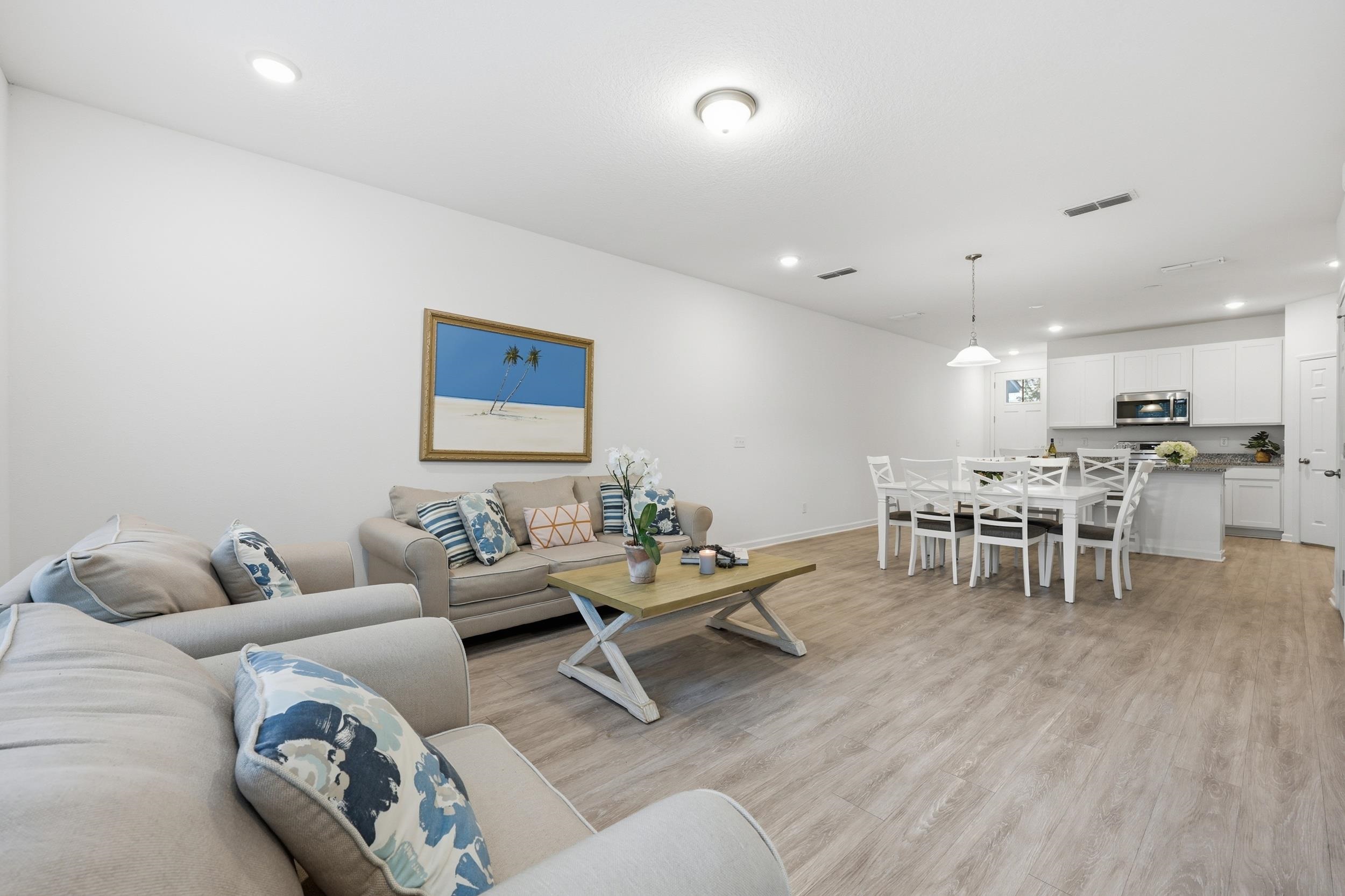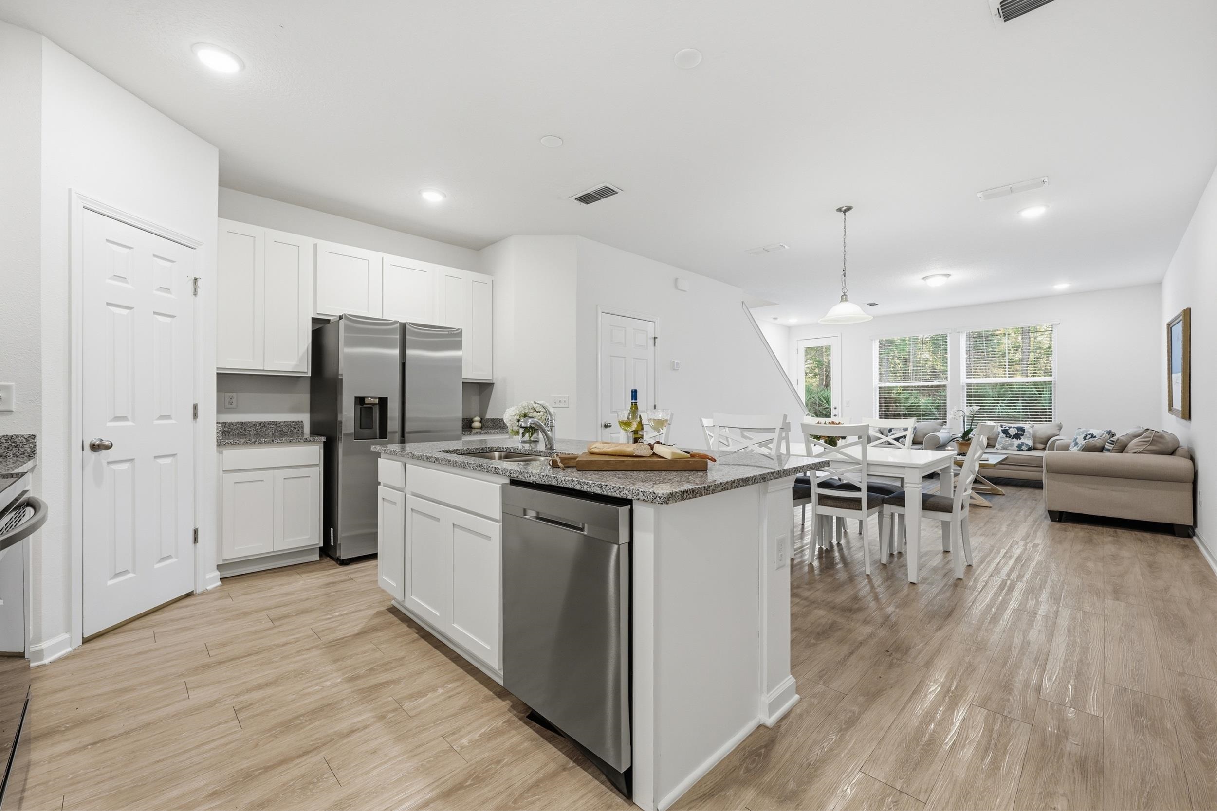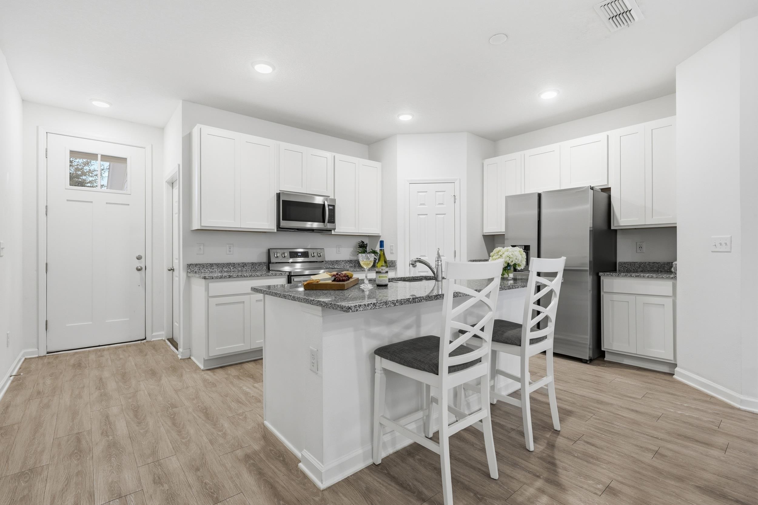 Embrace the ease of St. Augustine living in the highly desirable Park Ridge community. This thoughtfully designed 3-bedroom, 2. 5-bath townhome offers 1, 470 square feet of light-filled space, blending modern finishes with everyday comfort in a location that keeps you close to beaches, downtown, dining, and shopping. Striking 8-foot front and rear doors invite natural light inside, while 9-foot ceilings create an airy, open feel throughout the main living level. The kitchen is both stylish and functional, featuring a generous island, granite countertops, shaker-style cabinetry, and stainless steel Energy Star® appliances—perfect for casual mornings or gathering with friends. Luxury vinyl flooring flows seamlessly through the main living areas for beauty and durability. Upstairs, the spacious primary suite offers a quiet retreat with a large walk-in closet and an en-suite bath complete with double vanity and walk-in shower. Two additional bedrooms provide flexibility for guests, a home office, or family living. One of Park Ridge’s most appealing features is the ability to personalize your outdoor space. Fencing is permitted, giving you the opportunity to create a private backyard oasis—whether that’s a garden, paver patio for entertaining, or a secure space for pets. An attached one-car garage and additional parking add everyday convenience. Designed for low-maintenance living in one of St. Augustine’s most central neighborhoods, this home is ideal as a primary residence, second home, or long-term investment. Furnishings available with accepted contract.
