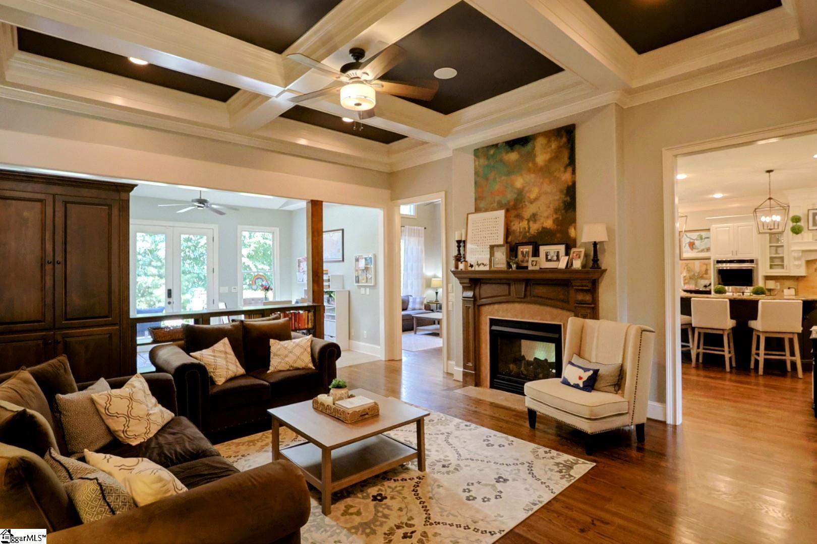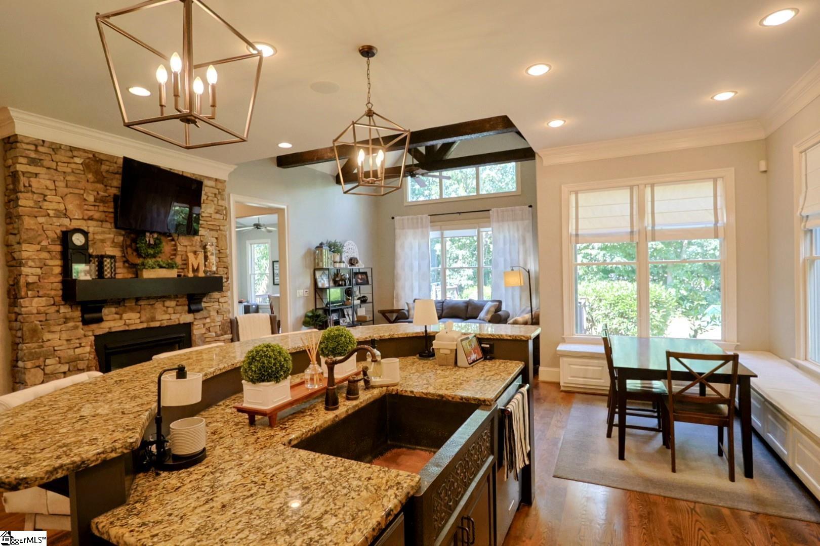 Welcome to Ledgestone, one of Five Forks most sought-after pool communities featuring 62 luxury custom homes! 108 Ledgestone Way is a rare find, with more than 4, 000sf of living space on a cul-de-sac! The stone front porch will instantly greet you, and lead you into the foyer where you will immediately fall in love with this open floor plan, built for entertaining! The great room features a deep coffered ceiling and double-sided fireplace, shared with the magnificent kitchen! Featuring recent refinished cabinets this space is centered around an island built for conversation! The built-in bench and breakfast table can accommodate a large group, and the morning room with exposed wood beams will be an amazing place to enjoy morning coffee or tea, or switch it up and enjoy peace, quiet and privacy in the beautiful sunroom! The main level master suite is right around the corner, and talk about an oasis! Yet another deep coffered ceiling will definitely impress, and the sitting room features a ventless gas log fireplace for those chilly mornings or a glass of wine at the end of the night with a little ambience! The master bath features a gorgeous tile shower and jetted tub, and the walk-in closet even has the option to house it's own stackable washer/dryer for the ultimate convenience! Head upstairs where you will find 3 additional bedrooms, one of which features a very unique step-up sitting area! Just wait until you enter the first of two flex rooms! The first is a step-down with high ceilings and the second is a step-up and couple make the perfect home theater or golf simulator room, as the current owner has enjoyed! Head back downstairs and out to the large multi-level deck. You will immediately be impressed by the privacy of this backyard! Don't miss your opportunity to own this amazing home!