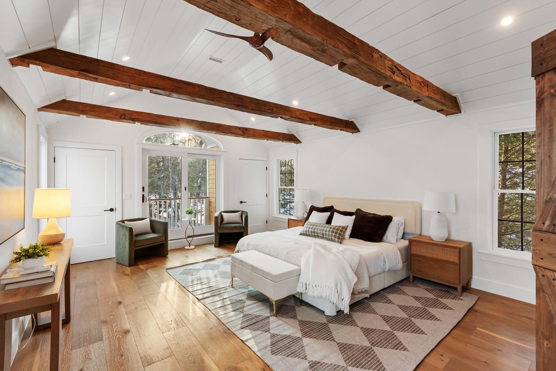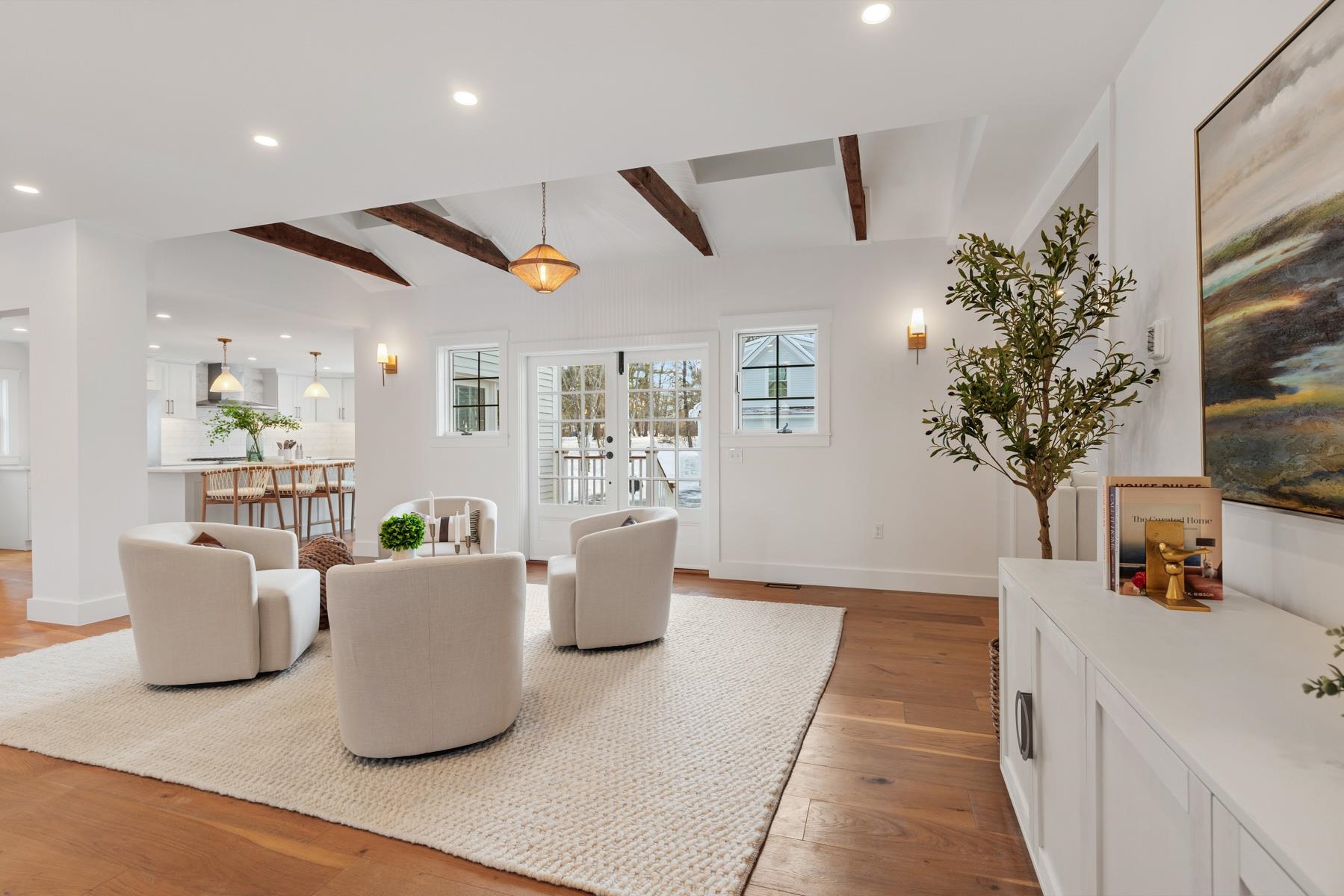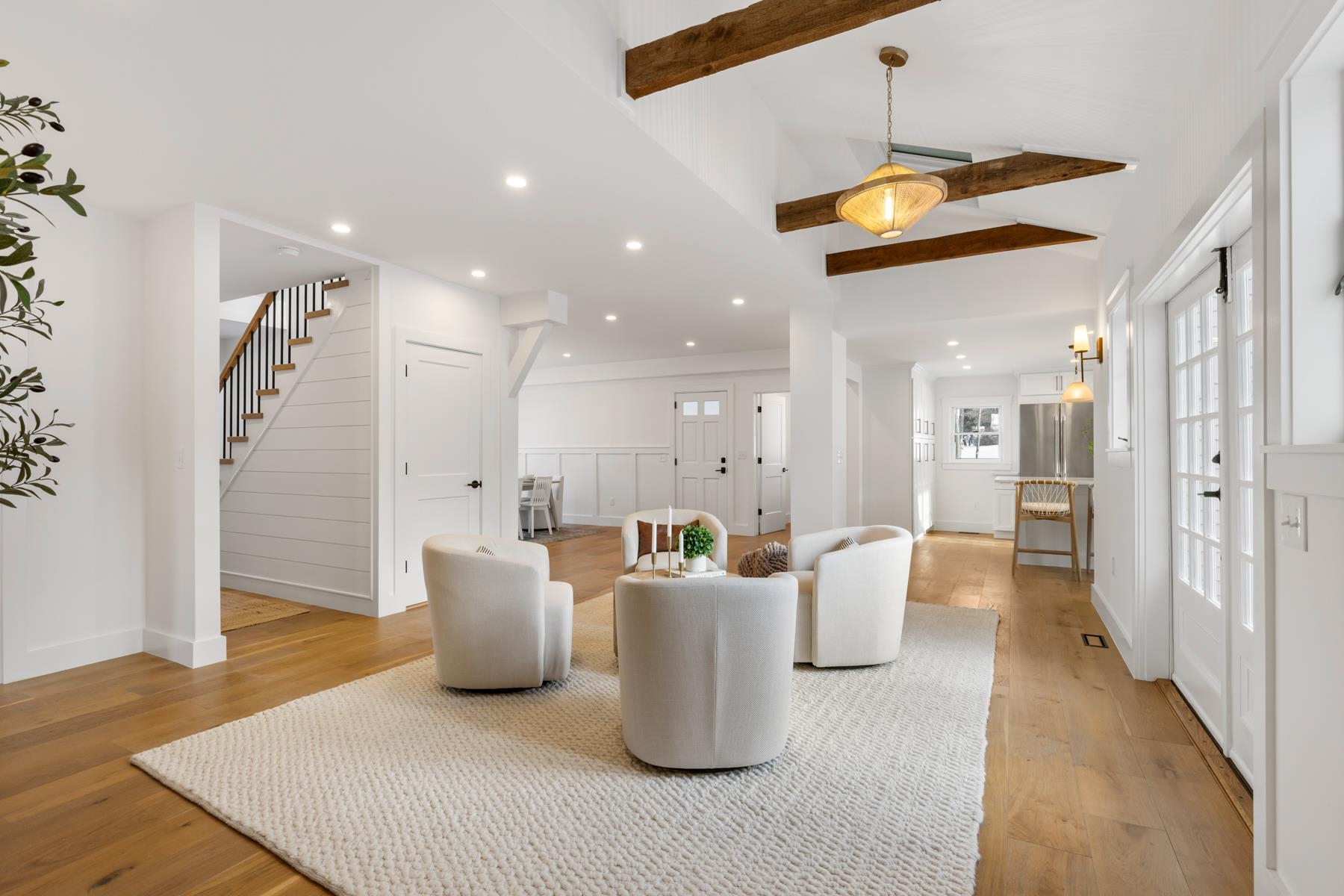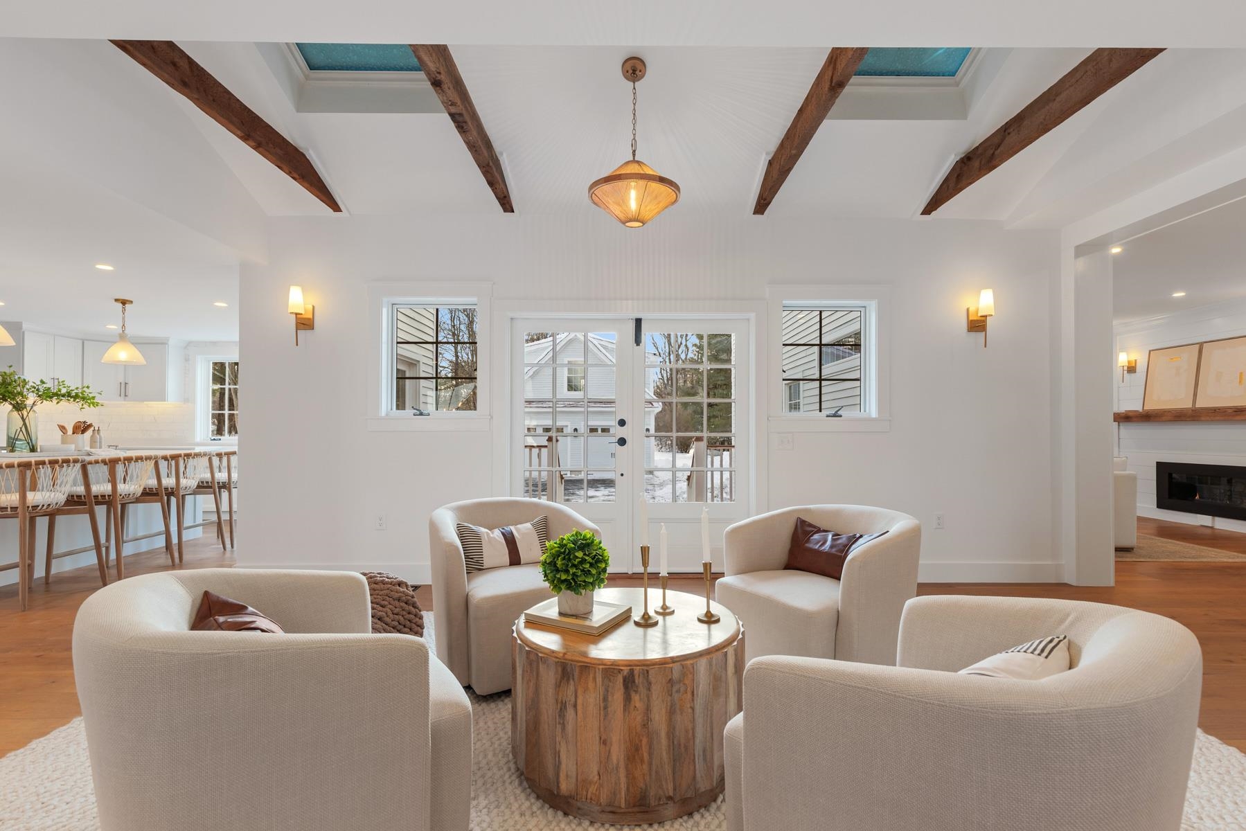 Meticulously renovated Modern Vintage Colonial set on a private 0. 89-acre lot in sought-after Newfields, NH. Originally built in 1832, this exceptional home blends historic character with thoughtful modern design, offering a fresh yet timeless take on classic New England living. The home features beautiful hardwood floors throughout, paired with preserved architectural details and a contemporary flow. A light-filled gourmet kitchen with oversized island connects seamlessly to both formal and casual living spaces. The formal dining room showcases traditional wainscoting, while a skylit sitting area with French doors opens to the patio and expansive backyard. A welcoming family room centered around a fireplace anchors the living space, with a nearby den creating a cozy spot for cocktails, card games, or quiet conversation. The primary suite is a refined retreat with vaulted beamed ceilings, a luxurious bath, and private balcony. Additional bedrooms are spacious and inviting. Flexible living continues with a finished third-floor space and a versatile bonus room above the two-car garage, ideal for a home office, studio, or guest accommodations. Comprehensively renovated with updated systems throughout, including efficient heating & central AC. Outdoor living is enhanced by a deck, open yet tree-lined backyard offering privacy and room to enjoy the setting. A rare opportunity to own a fully updated historic home that feels both effortlessly cool and enduringly elegant in a desirable Seacoast community.