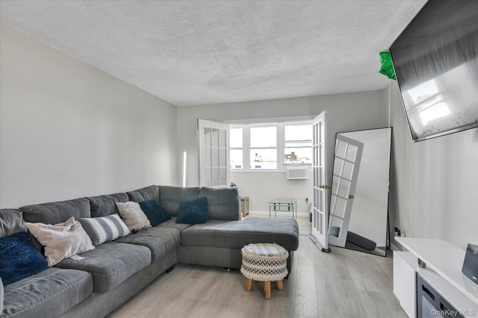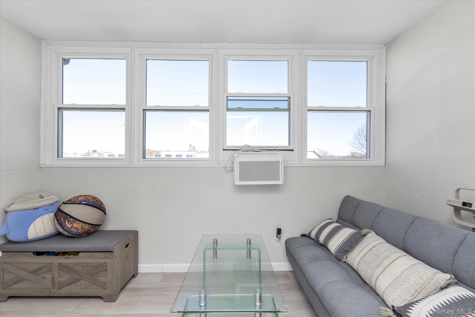 Beautiful one-bedroom corner apartment on the fourth floor in a building with ELEVATOR, featuring windows throughout that flood the space with natural light. Ideally located within walking distance to town, shopping, schools, and the train, and just minutes from Jones Beach—one of Long Island’s most beautiful beaches. The apartment offers a spacious living room with French doors opening to a versatile bonus area, perfect for a home office, guest space, or stylish bar. A defined dining area, windowed kitchen, full bathroom, and comfortable bedroom complete the layout. Elegant vinyl flooring runs throughout the unit. The building features a laundry room on every floor and includes one designated parking space. A bright, functional home with an excellent layout and abundant natural light.
