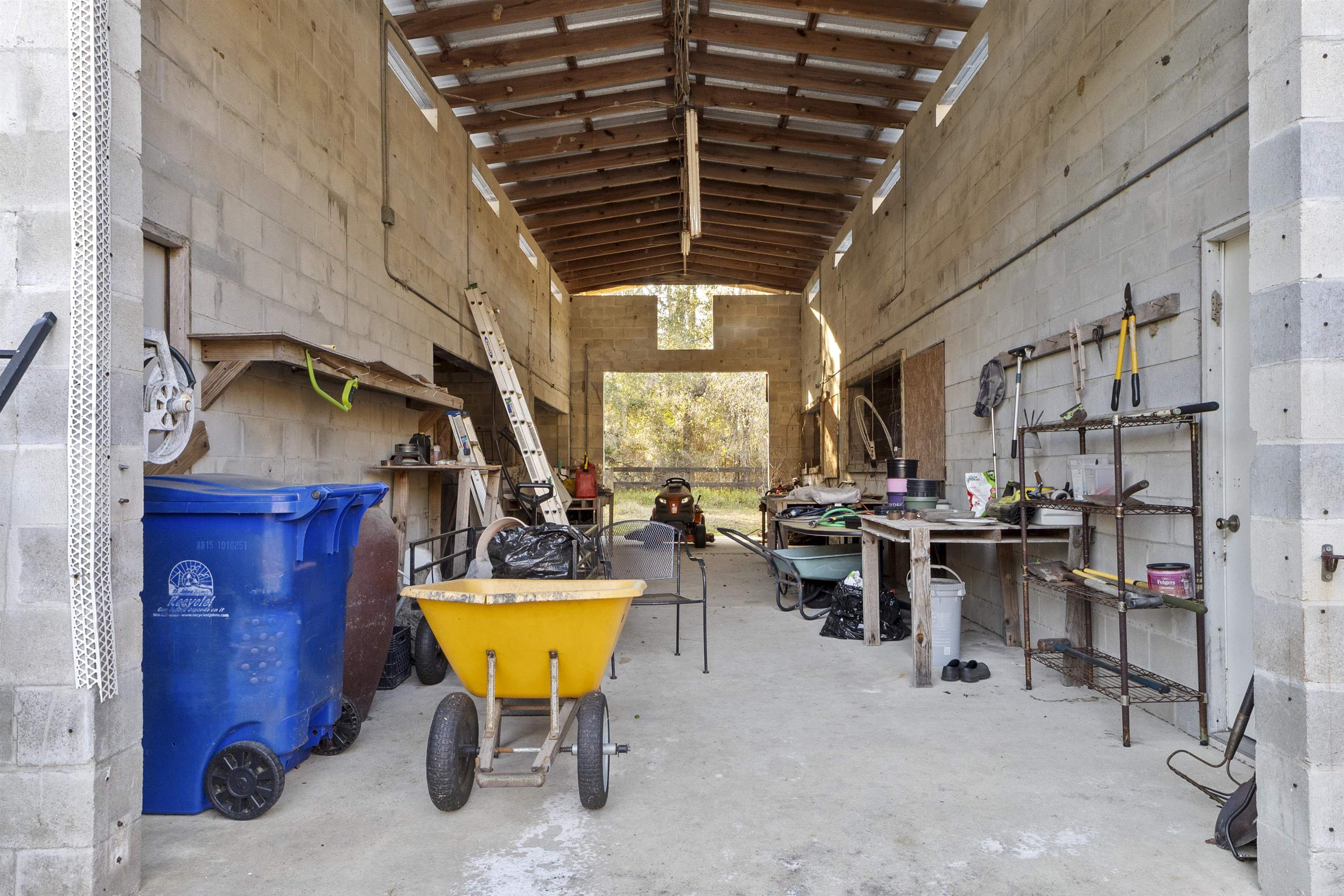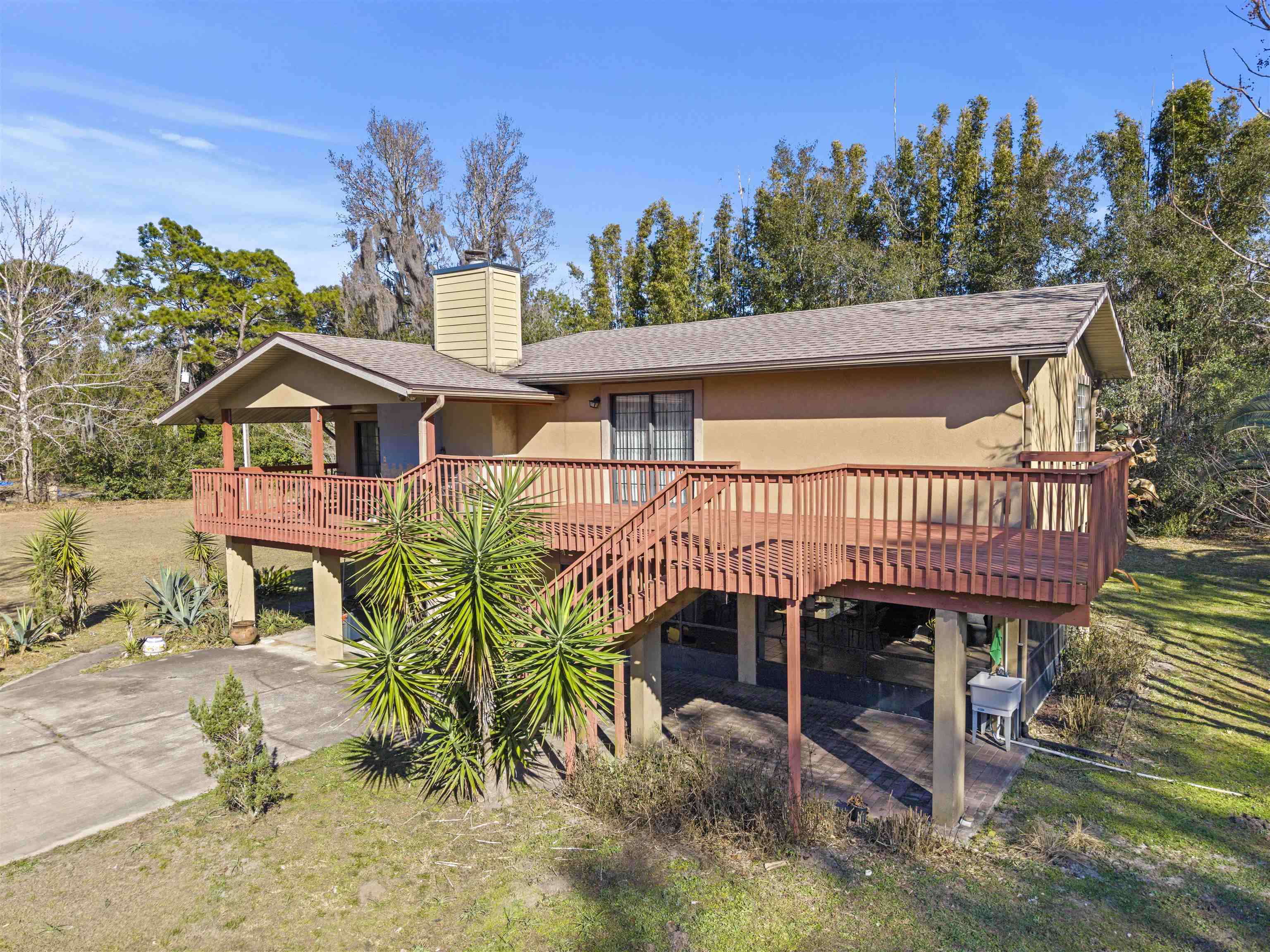 A rare home-and-business opportunity on 1. 9 fully fenced acres! This exceptional property offers the perfect blend of comfortable living, wide-open space, and serious functionality. The two-story residence features 3 bedrooms and 2. 5 bathrooms with room to grow, complemented by multiple outdoor living areas designed to embrace the surrounding landscape. Inside, you’ll find a warm mix of wood and tile flooring, abundant natural light, and two expansive living areas—one on each level. The upstairs living room showcases a beautiful stone fireplace and flows into a large open kitchen, ideal for entertaining or everyday living. The primary suite is a true retreat with a cathedral ceiling, an oversized walk-in shower, and a jumbo soaking tub. Large windows throughout the home bring the outdoors in and highlight the property’s peaceful setting. Outdoor living truly shines here with multiple exterior decks stretching approximately 50 feet wide, plus a 26’ x 19’ tiled, screened room on the first floor—perfect for relaxing, dining, or entertaining year-round. For those needing space to work, create, or store, this property delivers in a big way. The 2, 000 sq. ft. concrete block barn is ideal for a home-based business and currently offers four horse stalls, with ample land to accommodate horses. A 24’ x 23’ workshop building adds even more flexibility, while a separate structure housing the water softener system keeps utilities neatly organized. There’s even a chicken coop tucked along the edge of the property for those seeking a more self-sufficient lifestyle. With a wide-open front and backyard, plenty of room for gardening, recreation, or expansion, this property is well-suited as a primary residence, vacation home, investment property, or live-work compound. This is truly a must-see property—the space, versatility, and potential must be experienced in person to be fully appreciated. Rural zoning excellent for keeping animals NO HOA, Save storage fees. . . plenty of room for boats, RV and trailers on site. Location, Location, Location. . . This amazing home site is located just minutes away from shopping, 15 minutes to the beach and 20 minutes to the Historic downtown St Augustine.