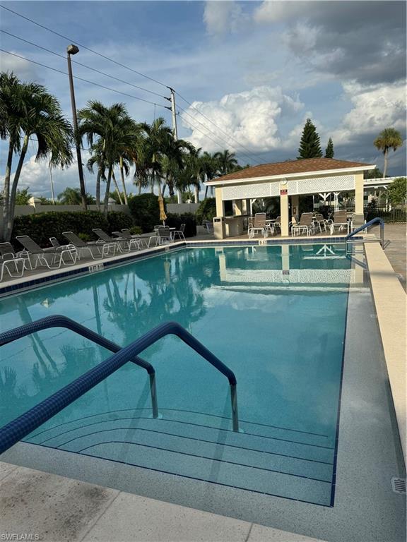 Welcome to the perfect NOT in a Flood Zone 55+ community conveniently located to shopping, beaches and 5th Ave S. Naples, Florida. This 2 bedroom, 2 bath manufactured home comes furnished, AC 2025, new water heater, washer and dryer, new fans, flooring and updated bathroom. The extended Florida room is perfect for extra living space and the extended storage has room for a motorcycle, all permitted. Golf cart pad has a built in electric charger. The community's low fees and rental flexibility make this a great investment with great rental potential or use seasonally or full time. Gated, pet friendly, calendar filled active community, pool, hot tub, pickle ball, Bocce, shuffle board are all waiting for you. Low monthly fees include lawn maintenance, reserves, rec facilities, manager and street lights. Community also offers extra storage area for boats and RVs.