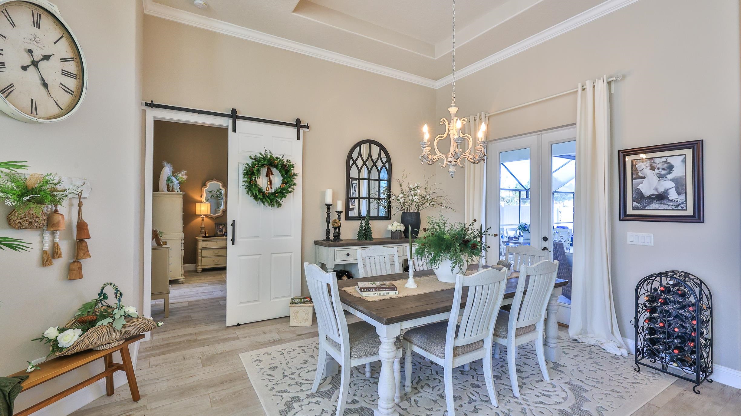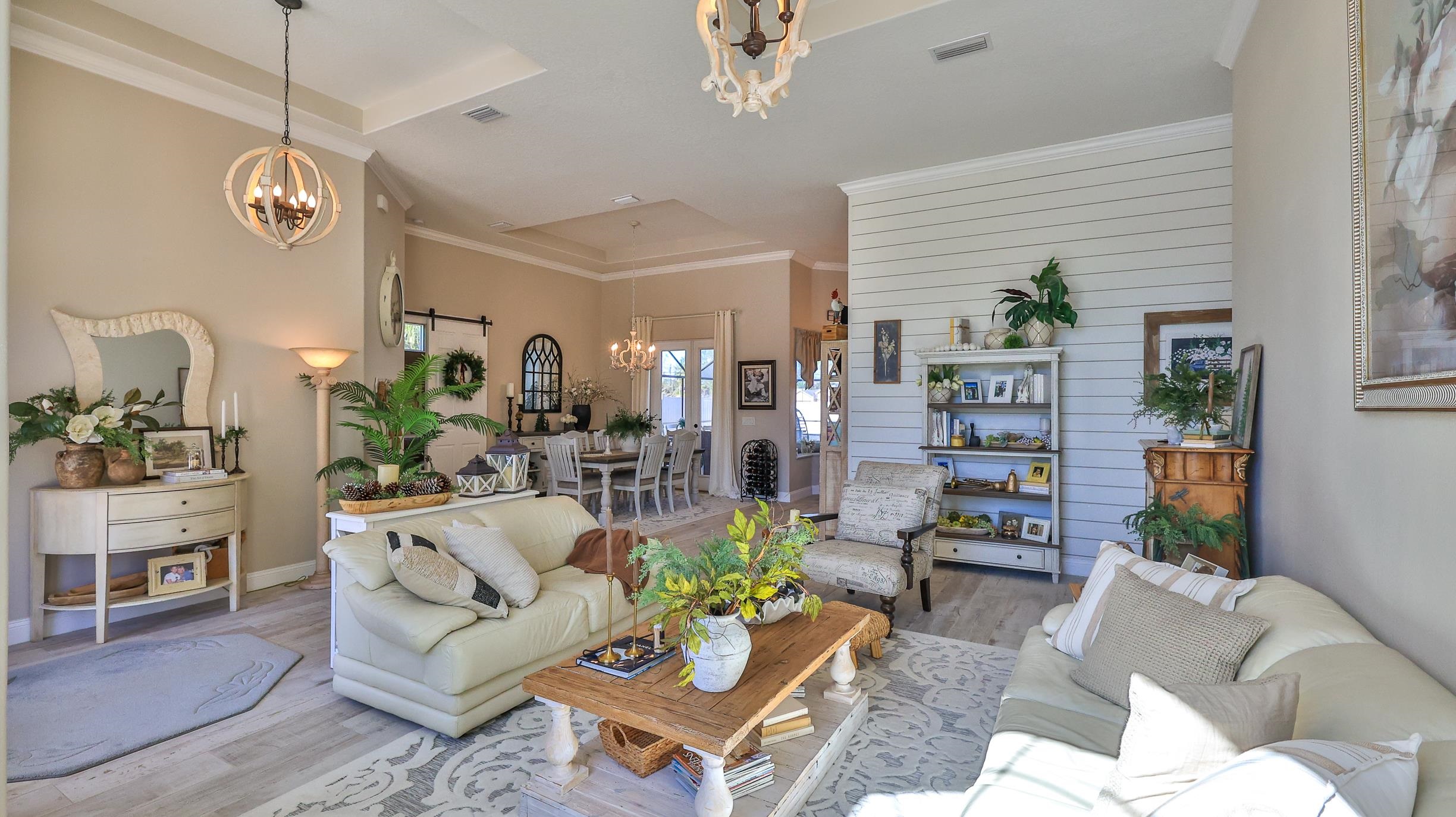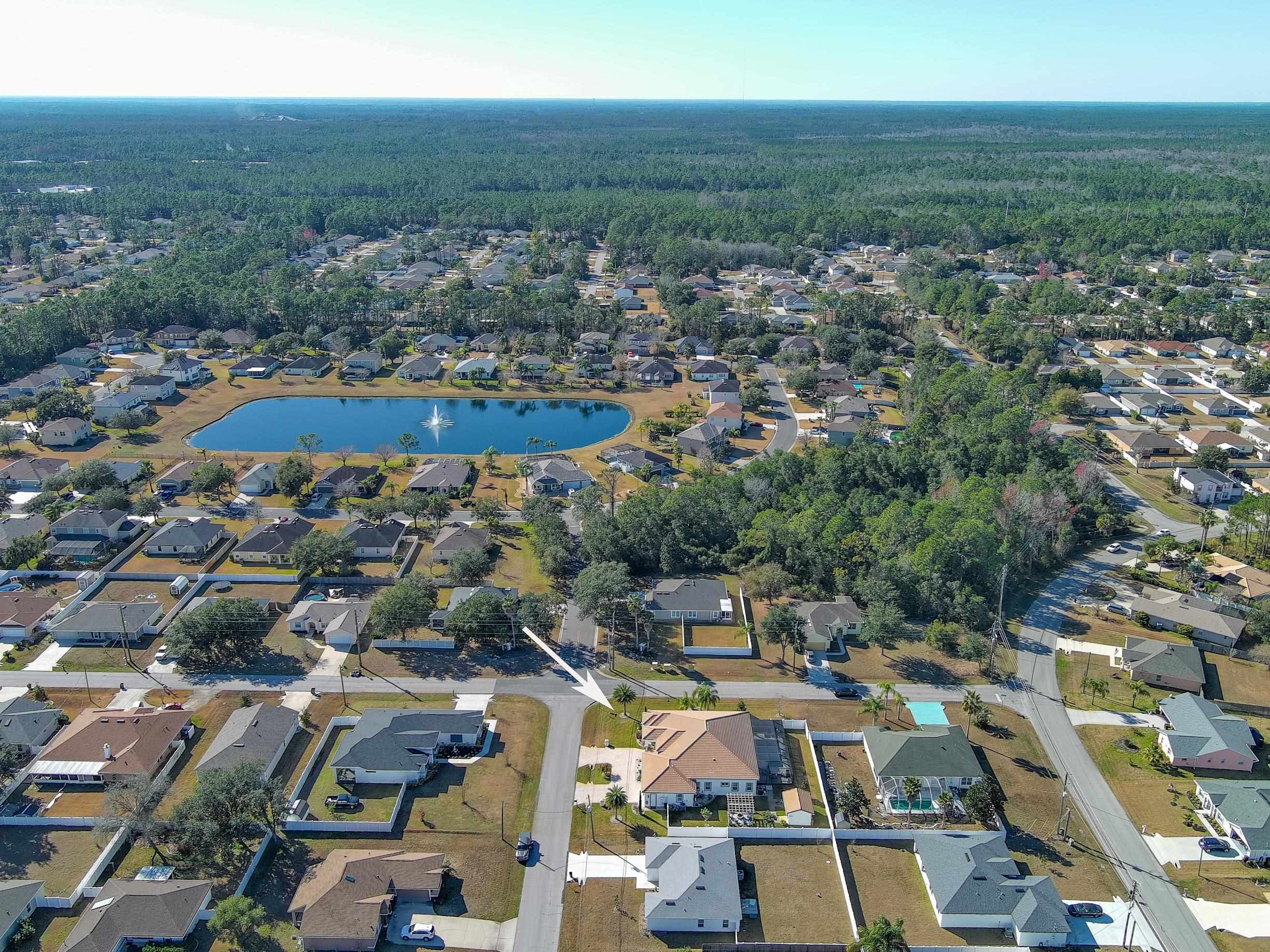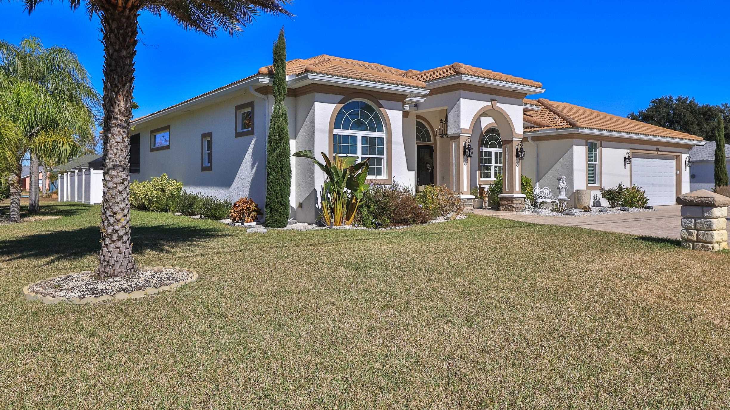 Welcome to 1 Rockwell Lane, Palm Coast, FL, a magnificent custom-built home completed in 2022, ideally situated on an oversized corner lot. A stunning circular paver driveway, concrete block and stucco construction, and a beautiful tiled roof create exceptional curb appeal and set the tone for the quality found throughout. Step through elegant French doors into a bright, open interior featuring arched windows, soaring 12-foot ceilings, tray ceilings, and tile flooring throughout. Thoughtful architectural details, including barn doors and crown molding, add warmth while maintaining a modern, upscale feel. The living room makes an immediate impression with a striking shiplap accent wall that serves as a welcoming focal point. The chef's kitchen is truly the heart of the home, offering quartz countertops, a massive island with farmhouse sink, induction cooktop, built-in microwave, updated appliances, custom cabinetry with crown molding, a spacious walk-in pantry, and a charming bay window overlooking the pool. Designed for comfort and function, the home features three bedrooms, three full baths, walk in closets, a convenient wet bar, and a separate laundry room with sink and quartz countertops. The primary suite is a private retreat with double barn doors, generous space, and a spa-like en-suite bath featuring a double vanity, soaking tub, large walk-in closet with custom built-in shelving, and a nearby flex room perfect for a home office. Enjoy Florida living at its finest in the private backyard oasis with a heated saltwater pool and waterfall, covered screened lanai, and fully equipped outdoor kitchen. Additional highlights include a fire pit under a gazebo, outdoor shed with tiled roof, white vinyl privacy fencing, two-car garage, and 2, 859 square feet of heated living space. A rare opportunity to own a nearly new luxury home in Palm Coast. Sellers cannot closed until August 2026.
