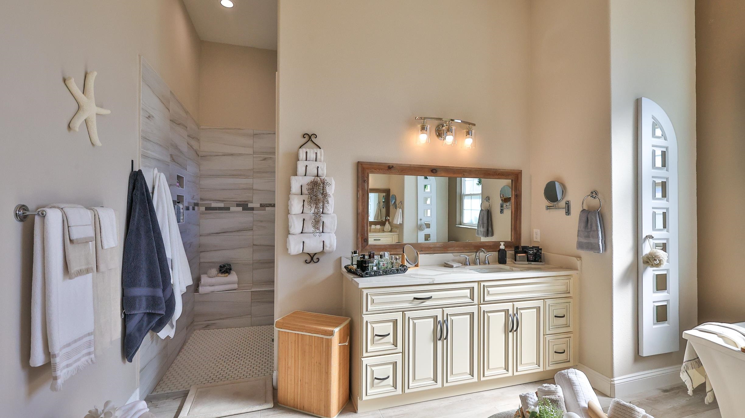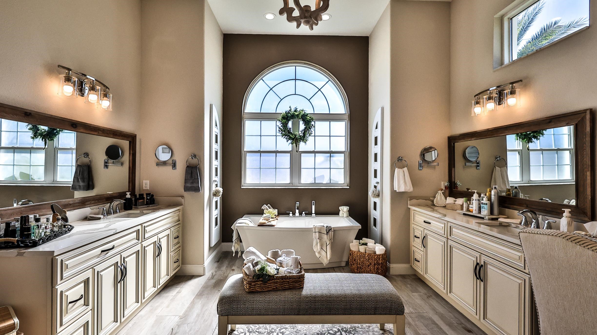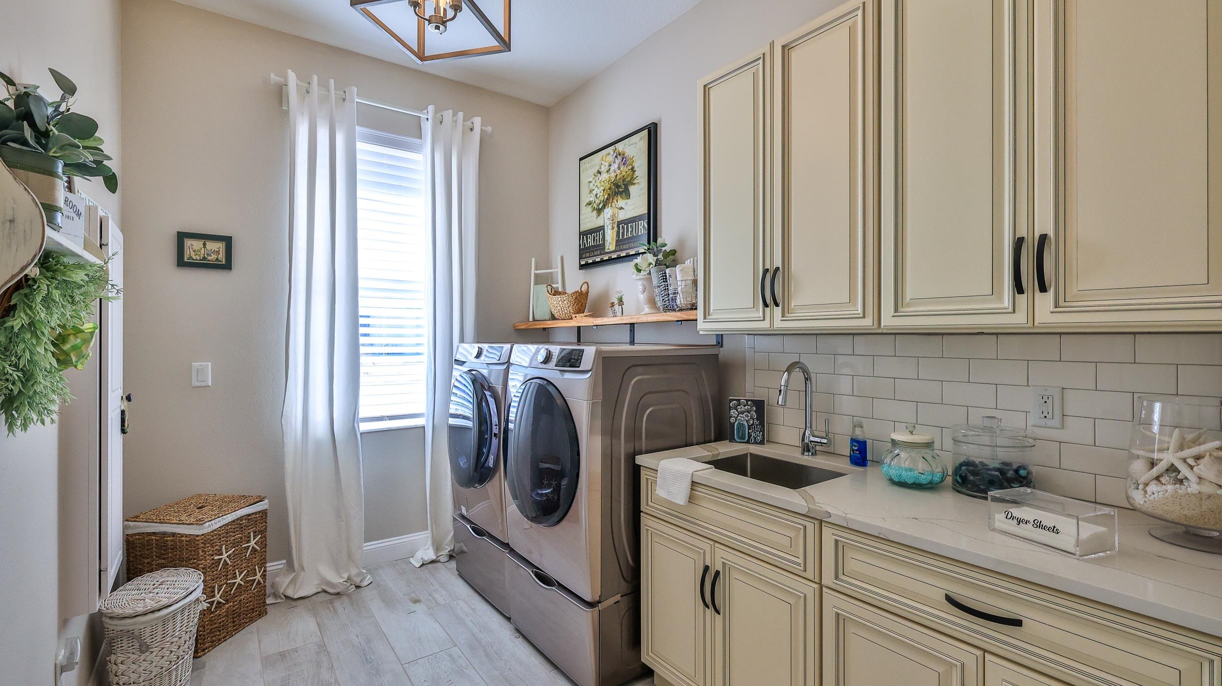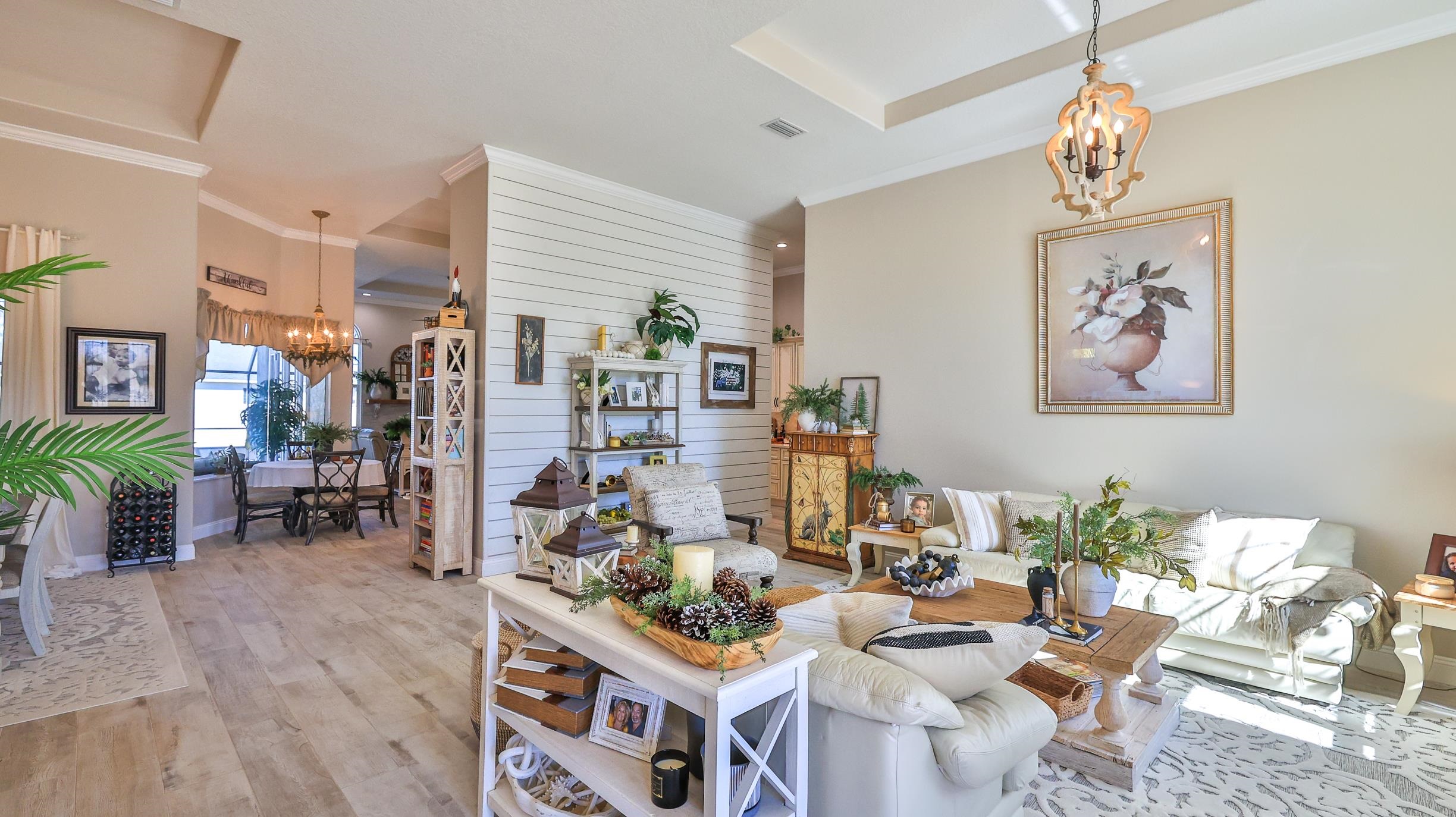 Welcome to 1 Rockwell Lane, Palm Coast, FL, a magnificent custom-built home completed in 2022, ideally situated on an oversized corner lot. A stunning circular paver driveway, concrete block and stucco construction, and a beautiful tiled roof create exceptional curb appeal and set the tone for the quality found throughout. Step through elegant French doors into a bright, open interior featuring arched windows, soaring 12-foot ceilings, tray ceilings, and tile flooring throughout. Thoughtful architectural details, including barn doors and crown molding, add warmth while maintaining a modern, upscale feel. The living room makes an immediate impression with a striking shiplap accent wall that serves as a welcoming focal point. The chef's kitchen is truly the heart of the home, offering quartz countertops, a massive island with farmhouse sink, induction cooktop, built-in microwave, updated appliances, custom cabinetry with crown molding, a spacious walk-in pantry, and a charming bay window overlooking the pool. Designed for comfort and function, the home features three bedrooms, three full baths, walk in closets, a convenient wet bar, and a separate laundry room with sink and quartz countertops. The primary suite is a private retreat with double barn doors, generous space, and a spa-like en-suite bath featuring a double vanity, soaking tub, large walk-in closet with custom built-in shelving, and a nearby flex room perfect for a home office. Enjoy Florida living at its finest in the private backyard oasis with a heated saltwater pool and waterfall, covered screened lanai, and fully equipped outdoor kitchen. Additional highlights include a fire pit under a gazebo, outdoor shed with tiled roof, white vinyl privacy fencing, two-car garage, and 2, 859 square feet of heated living space. A rare opportunity to own a nearly new luxury home in Palm Coast. Sellers cannot closed until August 2026.