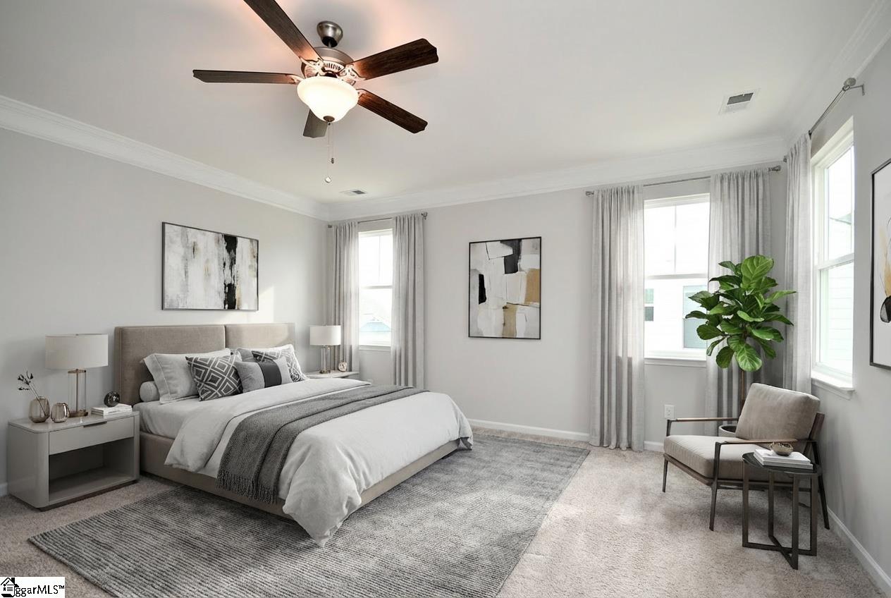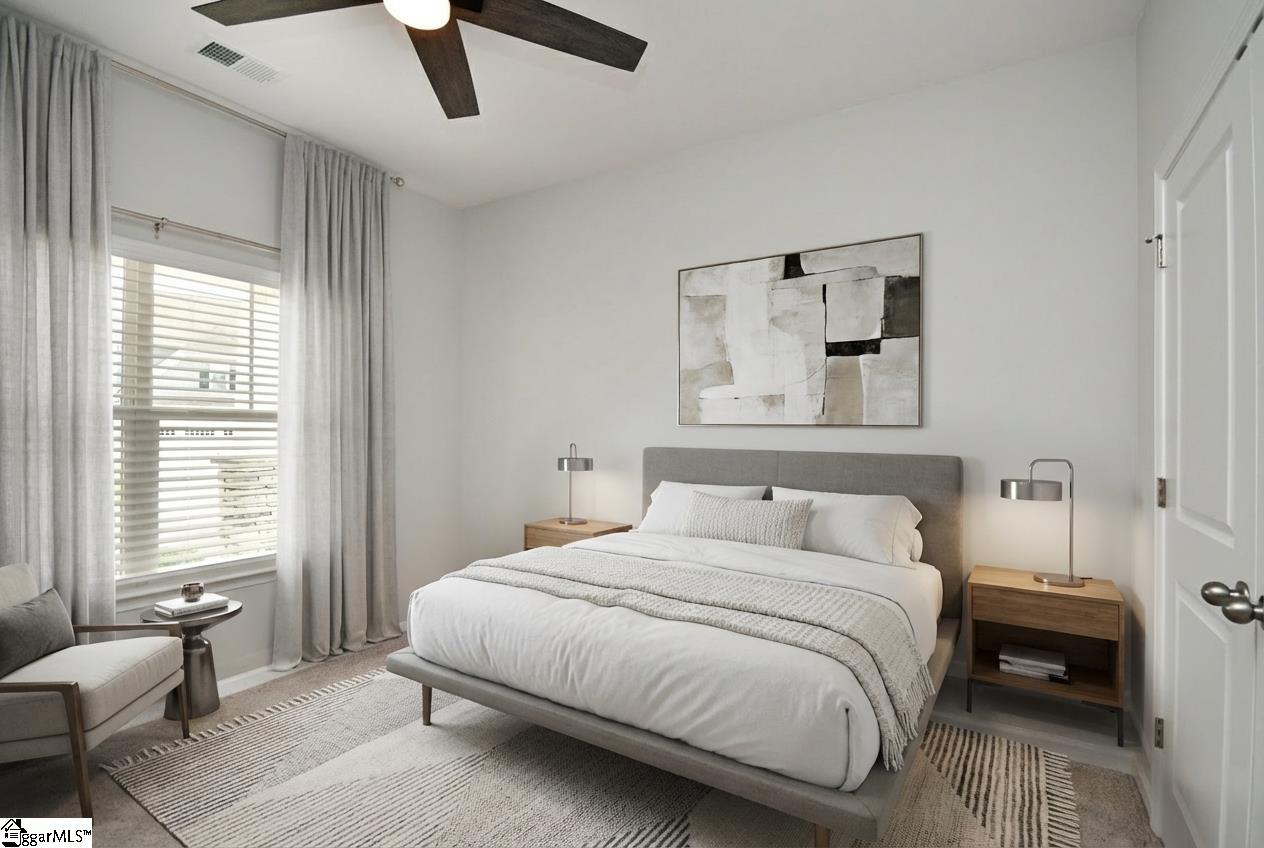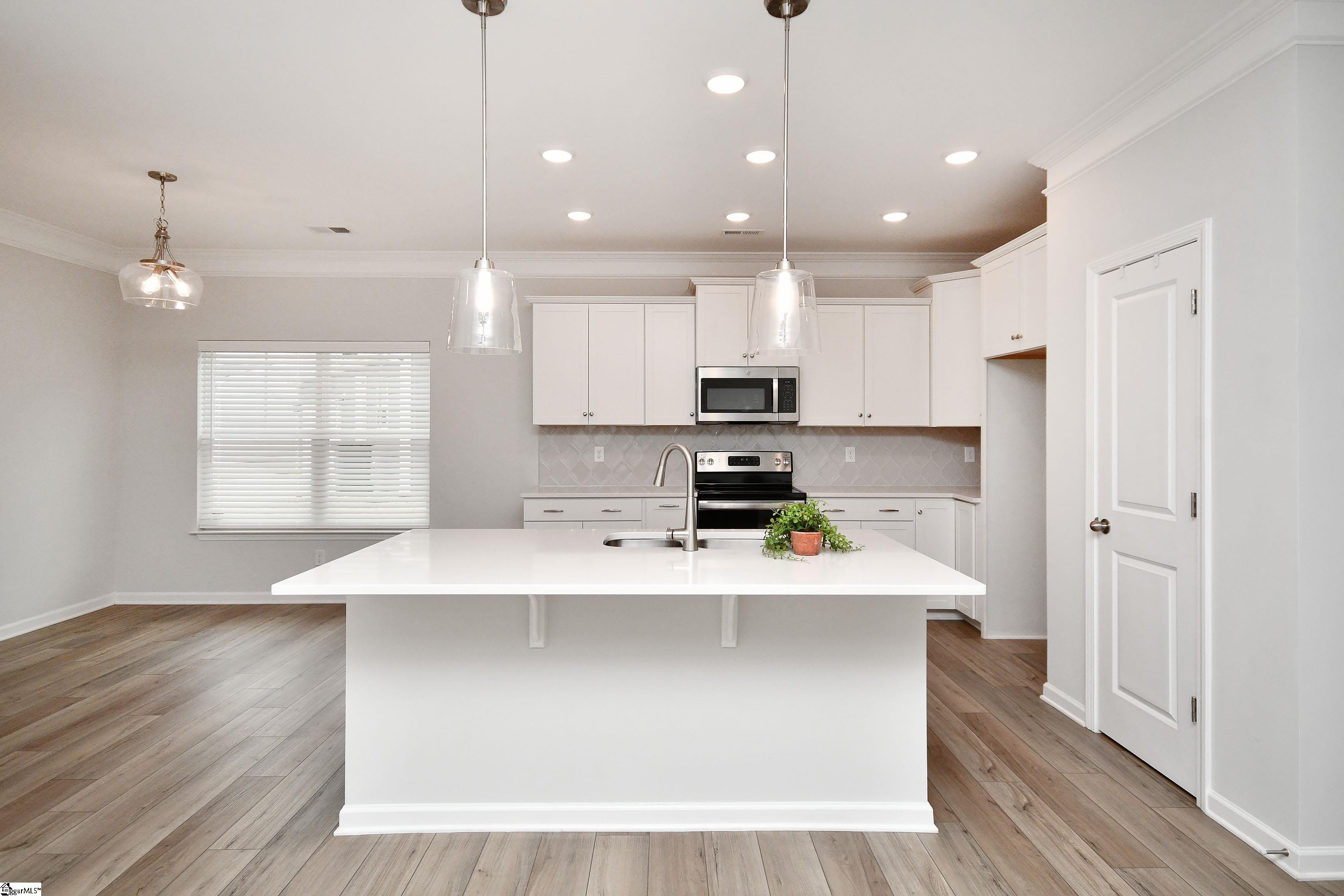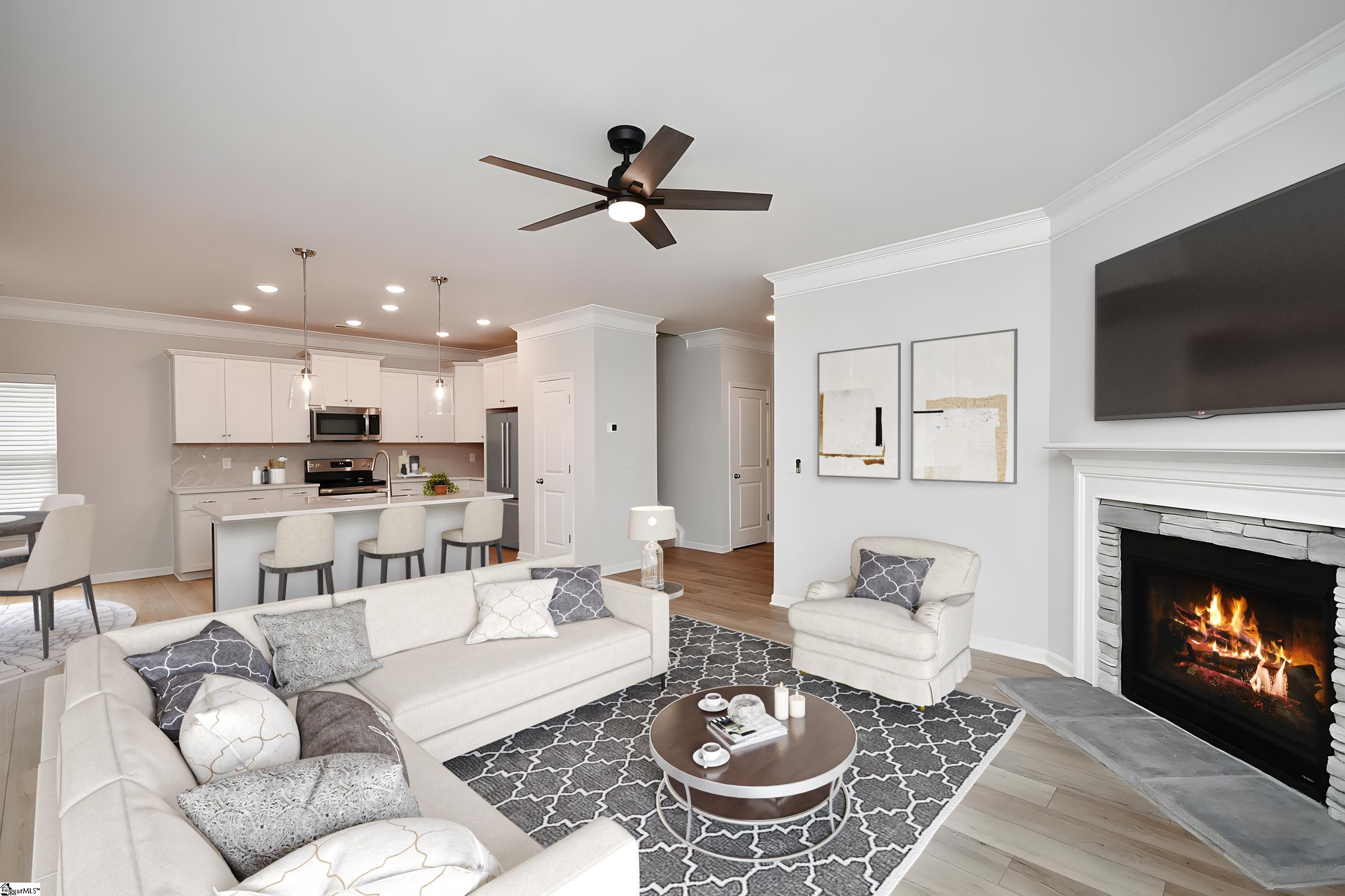 Beautiful traditional home with so much curb appeal and rocking chair front porch. Rear entry garage with extended concrete drive for additional parking and extended private patio. Floorplan flows beautifully with open living area, kitchen with quartz countertops and SS appliances, and dining area. Cozy fireplace with gas logs for cold winter nights. Downstairs also features an office with french doors, and a downstairs bedroom and full hall bath. This seller spared no expense in the garage with a polyurea coated floor which comes with a 15 yr warranty, more durable than epoxy. Garage also features added LED lights and an insulated garage door! Vinyl fencing around patio for privacy, and the same coated floor for easy cleaning. Upstairs floorplan features large primary bedroom, full master bath, walk-in closet, separate shower and tub. All baths have quartz countertops and upgraded plumbing. Main living areas feature upgraded EVP and bedrooms have carpet for comfort. All custom cordless blinds remain. Seller added extensive river rock landscaping and plants. Come see this beautiful home today!