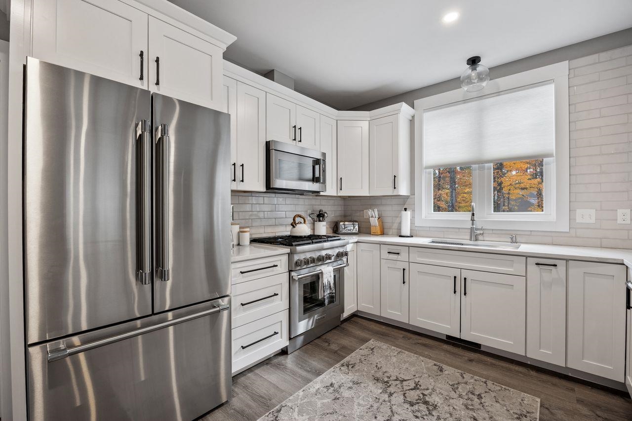 Experience mountain living in this luxurious 4-bedroom, 5-bathroom home perfectly situated across from Cranmore Mountain Resort and minutes from downtown shops and restaurants. Designed for year-round enjoyment, or adding beauty to your short-term rental portfolio, this exceptional property blends elegance, comfort, and adventure all within a breathtaking natural setting. Interior Features: Thermador Appliances, Expansive open concept with large island, thoughtfully designed mudroom area, bedrooms with ensuites and a large game room. Exterior Features: a creek along the back of the property that provides a serene setting for fishing or relaxing, trails nearby for hiking, biking or snowshoeing, and proximity to the Saco River for rafting, kayaking and summer fun.