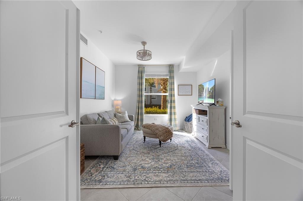 The primary suite offers a peaceful escape with a walk in closet and an en suite bath featuring dual sinks and a walk in shower. The guest bedroom is generously sized and positioned near a full guest bath. The den provides flexible space ideal for a home office, study, or additional guest accommodations.