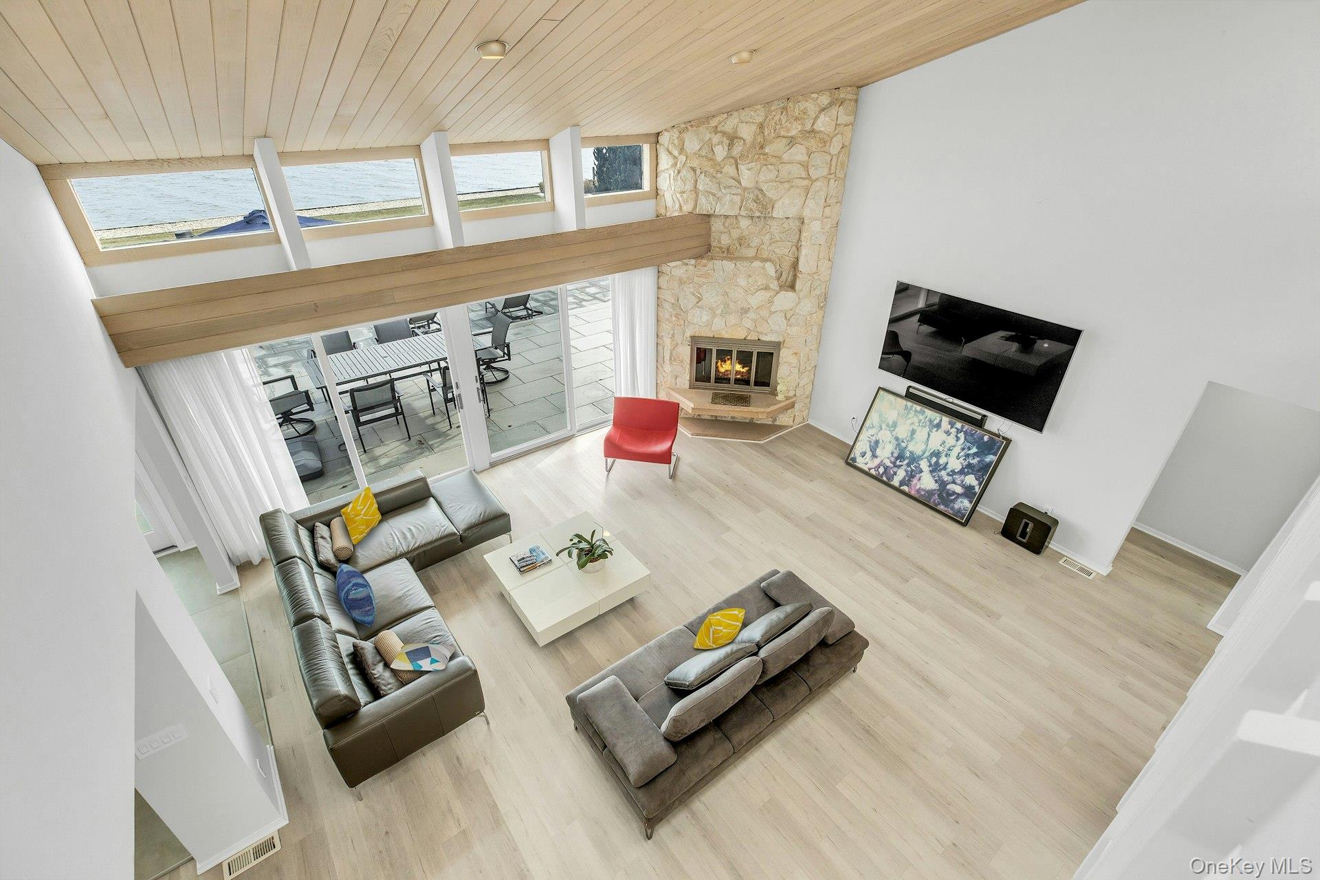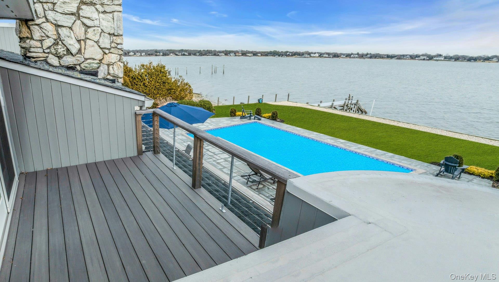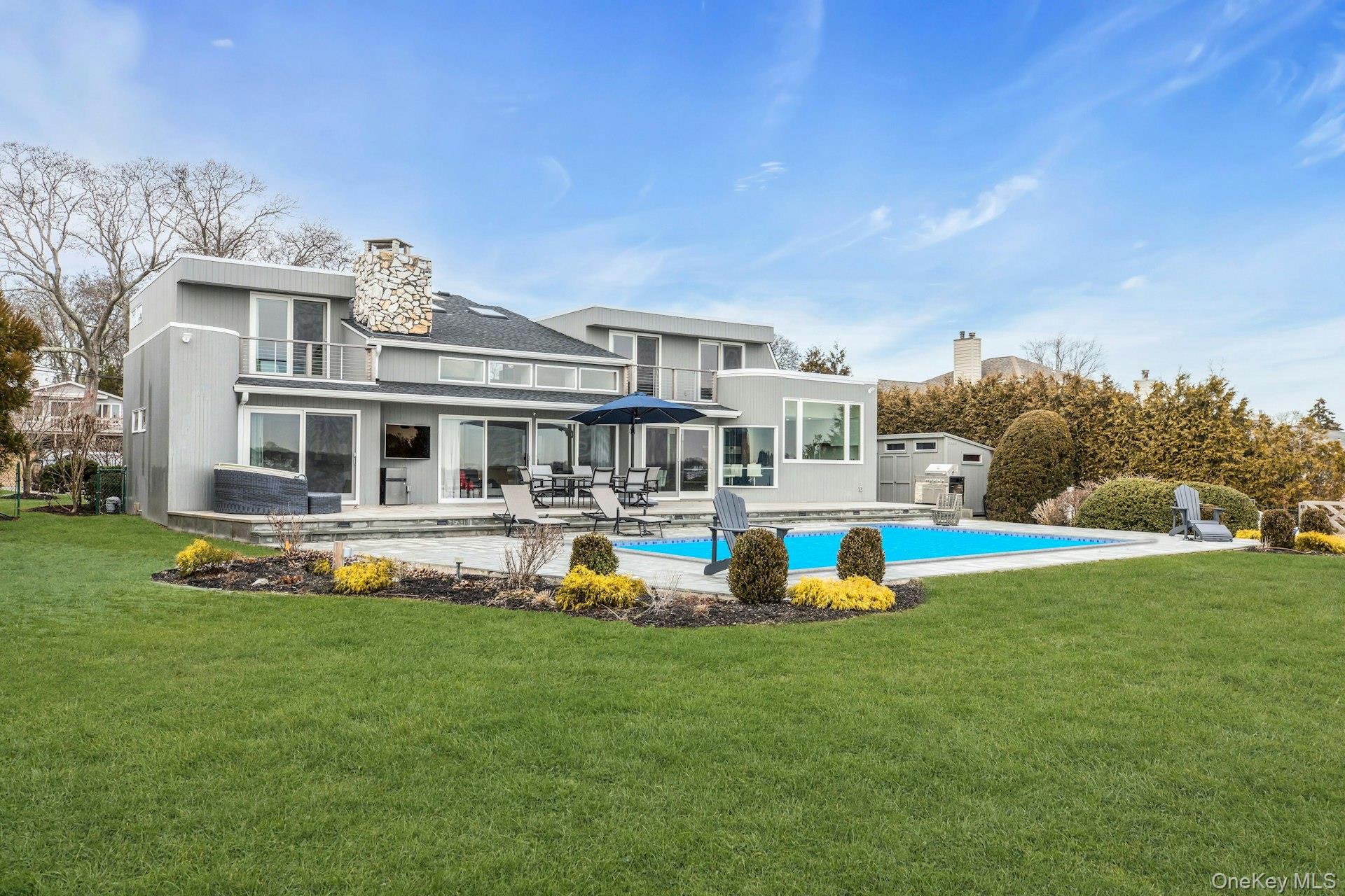 Welcome to 17 Romana Drive, a picturesque bayfront home nestled in the vibrant Tiana Shores community of Hampton Bays, NY. This stunning property, bathed in natural light, offers a harmonious blend of comfort and luxury, promising a lifestyle of tranquility and convenience. Stepping into this magnificent home, you are greeted by an open floor plan that exudes a sense of spaciousness. The soaring ceilings add to the grandeur, while the stone fireplace in the living room creates an inviting ambiance. The updated kitchen, equipped with modern amenities, is a haven for the culinary enthusiast. Adjacent to the kitchen is a formal dining room, perfect for hosting memorable gatherings. The home boasts four generous bedrooms, each designed to ensure your comfort. The primary suite and guest suite offer an oasis of relaxation, while the two additional guest bedrooms provide ample space for everyone. Each of the four and a half bathrooms have been updated, reflecting a blend of style and functionality. Step outside to a backyard that is nothing short of a private retreat. The in-ground gunite pool, surrounded by new pavers, invites you to take a refreshing dip on a warm day. The grassy area provides an ideal space for outdoor play or relaxation. The property also features a two-car garage and a circular driveway, adding to its appeal. One of the standout features of this home is its privileged location on the bayfront. The dock presents an opportunity for boating enthusiasts to embark on nautical adventures right from their backyard. The panoramic water views add a touch of serenity to this beautiful home. The Tiana Shores community is a welcoming neighborhood known for its friendly residents and local amenities. The community environment is warm and inclusive, making it an ideal place to call home. In summary, 17 Romana Drive is more than a house; it's a lifestyle. It promises a blend of luxury, comfort, and convenience, all set against the backdrop of stunning water views. This property offers a unique opportunity to experience the best of Hampton Bays living. Whether you're seeking a peaceful retreat or a vibrant community, this home has it all. We invite you to experience the magic of 17 Romana Drive for yourself.