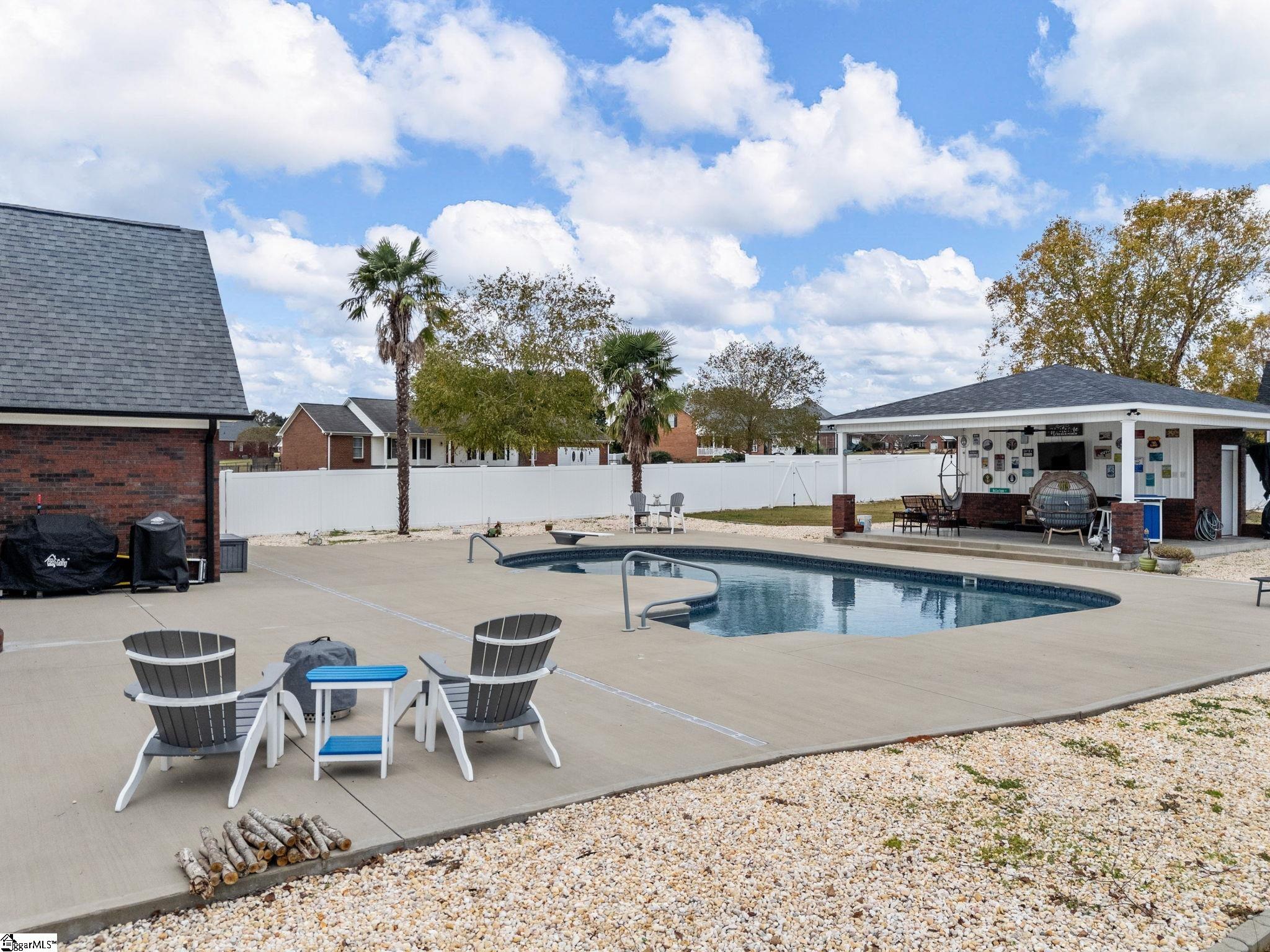 Welcome to 114 Planters Drive - where comfort meets craftsmanship. This beautifully updated 3-bedroom, 3-bath home features an inviting open-concept layout with thoughtful upgrades throughout. The gourmet kitchen is a showstopper, featuring double ovens, a gas cooktop, a spacious island, and a farmhouse sink - perfect for both everyday living and entertaining. The living room boasts custom built-in cabinetry and a cozy fireplace, creating a warm, welcoming atmosphere. The primary suite on the main level provides a relaxing retreat with built-in drawers, a luxurious ensuite bath featuring a soaking tub and oversized walk-in shower, and a split-bedroom floor plan for added privacy. Upstairs, a large flex room provides flexible space that can easily serve as a 4th bedroom, office, or playroom. Step outside to your own private oasis - an in-ground pool with a newer liner and pool pump, surrounded by extra concrete with proper drainage and a fully fenced yard. The pool house includes a full bathroom and additional storage, adding both convenience and charm to your backyard entertaining space. Nestled on one acre, this property also features a circular driveway for extra parking, providing the perfect blend of function and curb appeal. If you're looking for a home that combines modern updates, spacious design, and outdoor enjoyment, you'll find it all here at 114 Planters Drive.