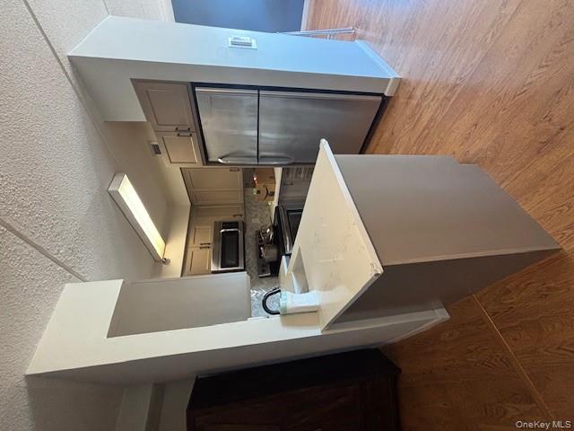 Welcome to Unit 4D at 205 Mineola Boulevard, a beautifully updated 2-bedroom, 2-full-bath corner condominium offering space, comfort, and modern upgrades throughout. This bright corner unit features a living room/dining room combination with views in two directions and access to a large private balcony. The updated kitchen offers custom cabinetry with a transferable lifetime warranty, quartz countertops, and all new appliances. The primary suite includes a newly replaced en-suite bath with both a shower and tub. The main bath also features a full bath with shower and tub. Additional highlights include new Andersen windows, three new A/C units with heat pump functionality, a new water heater, Pergo wood flooring throughout, and laundry in the unit with a storage closet. No wallpaper or paneling—move-in ready. Assigned parking space #34 is conveniently located just two spaces from the back door.