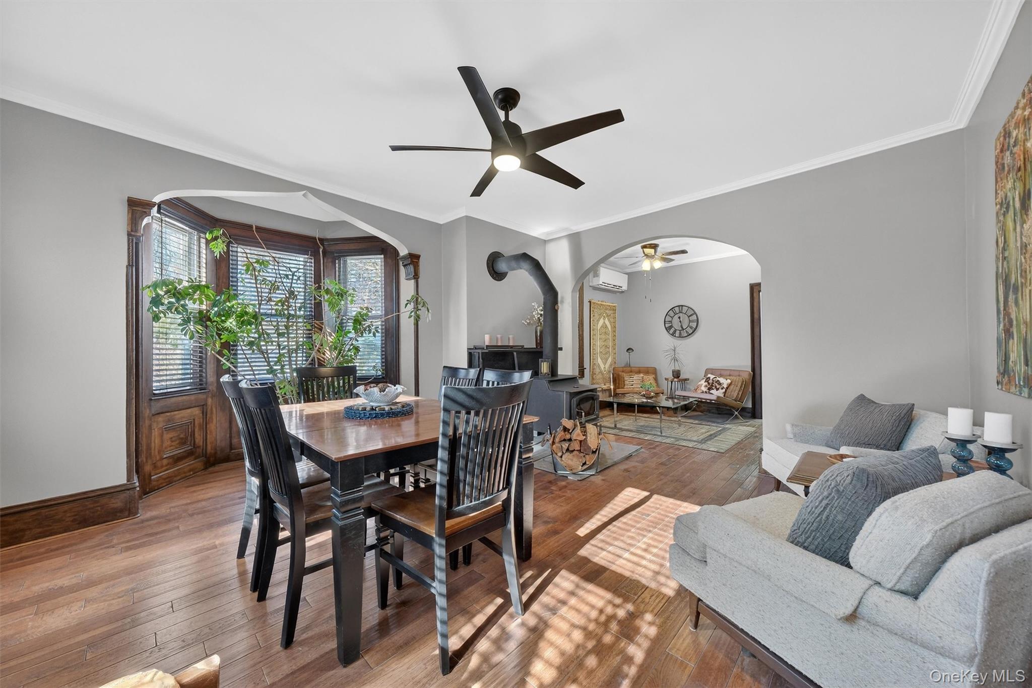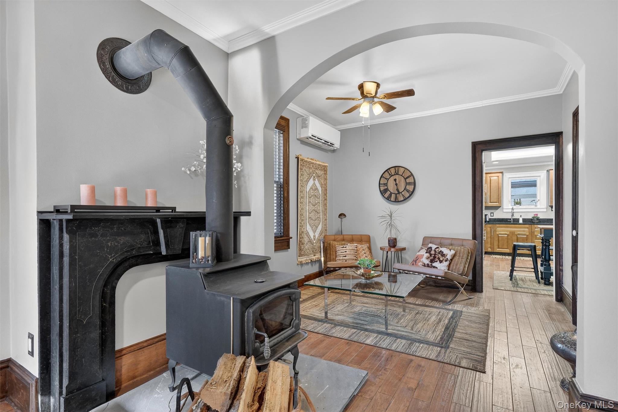 GARDINER – OLD-WORLD CHARM WITH MODERN UPDATES Step into a home full of character and timeless charm! This turn-of-the-century vintage colonial will wow you from the moment you enter the grand foyer with its sweeping stairwell, stunning hardwood floors, wide-plank baseboards, and elegant arched doorways that flow throughout the home. The main floor features a beautifully updated kitchen with quartz countertops and warm cinnamon cabinetry. Relax in the inviting sitting room with its wood-burning fireplace or retreat to the home library, a perfect spot for reading or working from home. With 5 bedrooms and 2 baths, spacious rooms, high beamed ceilings, and wide hallways, this home offers both comfort and grandeur. Nine-foot ceilings on the main floor and eight-foot ceilings on the second floor enhance the sense of space, while a full walk-up attic and a walk-out basement provide plenty of storage, flexible living space, or future expansion possibilities. Set on a private, expansive lot, the property also includes a 20x20 barn with electric ideal for a workshop, home office, or creative space. Once an antique center, the home enjoys excellent visibility while maintaining a serene country setting. The large backyard with lush perennial gardens and mature trees provides a peaceful oasis for outdoor enjoyment. Located just minutes from Gardiner, Mohonk, and Minnewaska State Parks, with nearby farmstands and wineries, this home is a rare blend of old-world elegance and modern convenience. Truly a special property you won’t want to miss!