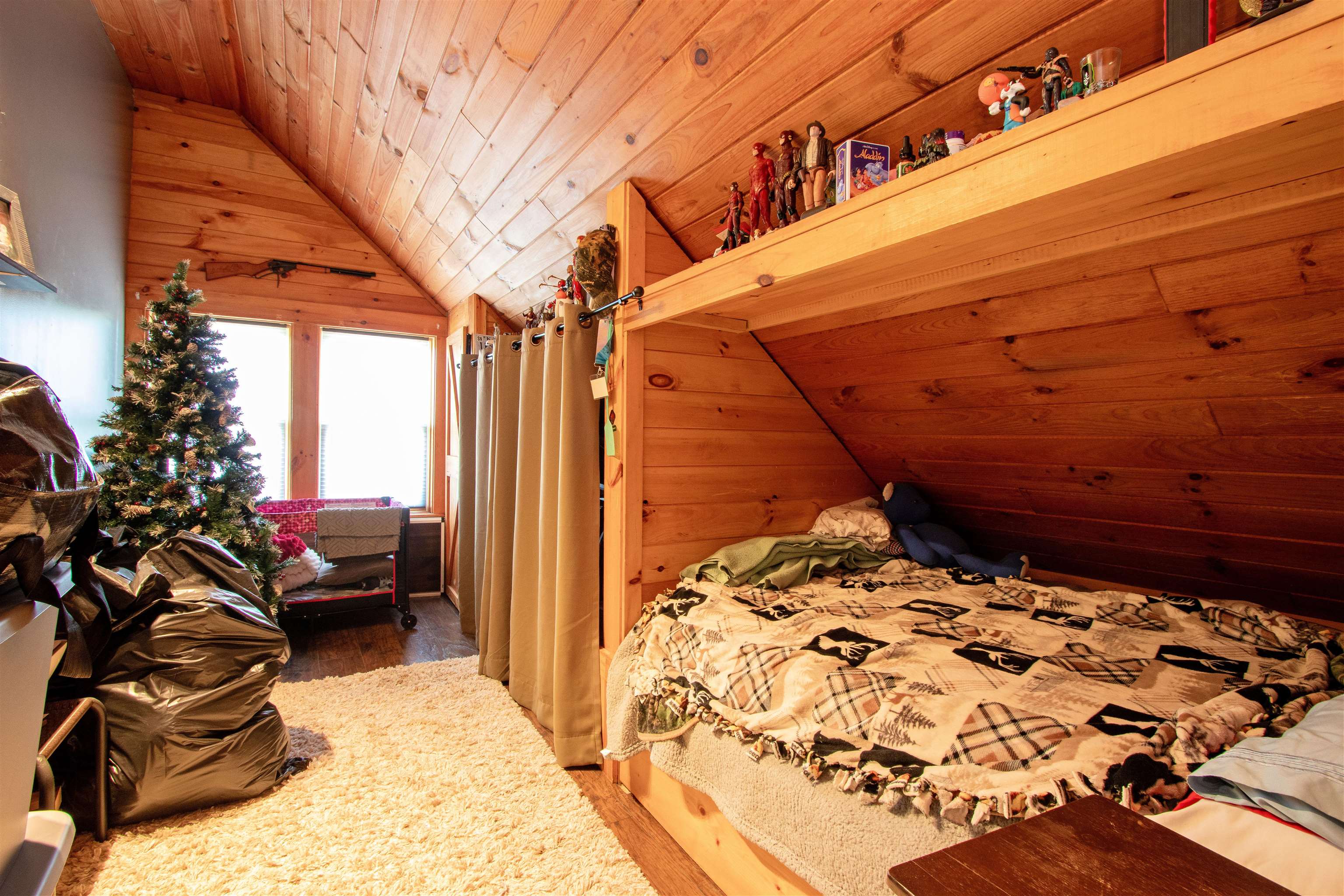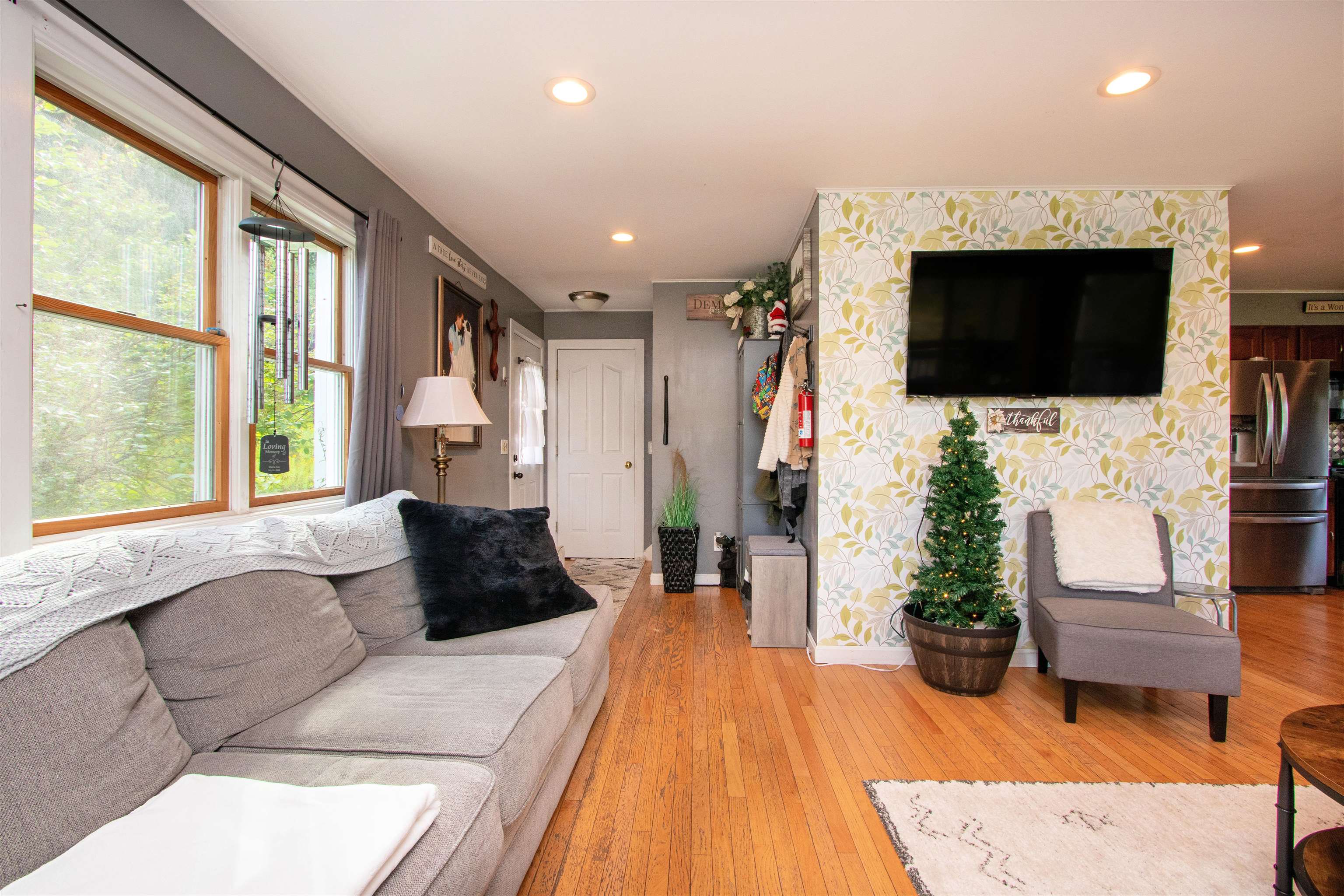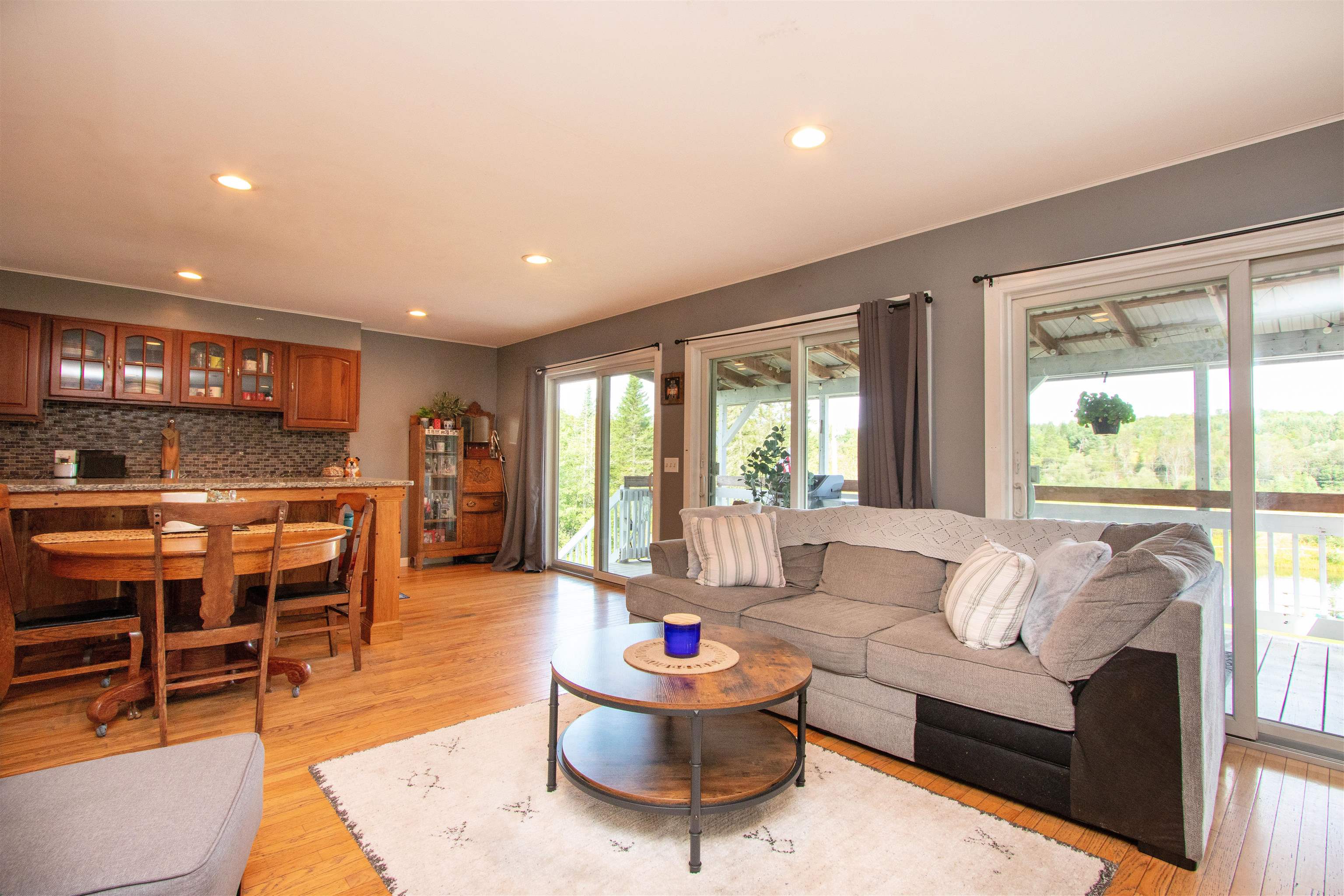 Set back from the road on 10+/- acres, this Hardwick home offers a bright and inviting open layout where the living room, dining area, and kitchen flow seamlessly together across hardwood floors. The kitchen features ample cabinet and counter space, a center island, and a walk-in pantry, while the living room is warmed by a pellet stove in the corner. Three sets of sliding glass doors connect this main living space to a covered porch overlooking the yard and private pond perfect for soaking up the light and embracing indoor-outdoor living. The main level also includes a family room, a bonus room ideal for a home office, and a full bath. Upstairs, you’ll find a convenient central laundry area, three bedrooms, and a full bath. The finished walkout lower level adds even more living space with a family room, a guest area, and a half bath. Outside, the land offers both open and wooded areas, plenty of room for gardens, a lean-to, and a shed. Living here means more than just enjoying your private retreat. Hardwick has earned a reputation as a hub for Vermont’s local food and farm-to-table movement, with nearby farms, cheesemakers, and markets adding to the community’s vibrant culture. The historic village center offers cafés and small shops along the Lamoille River, while the Lamoille Valley Rail Trail, beloved for walking, biking, and snowmobiling, runs right through town. It’s a place where outdoor recreation, community connection, and Vermont charm all come together.