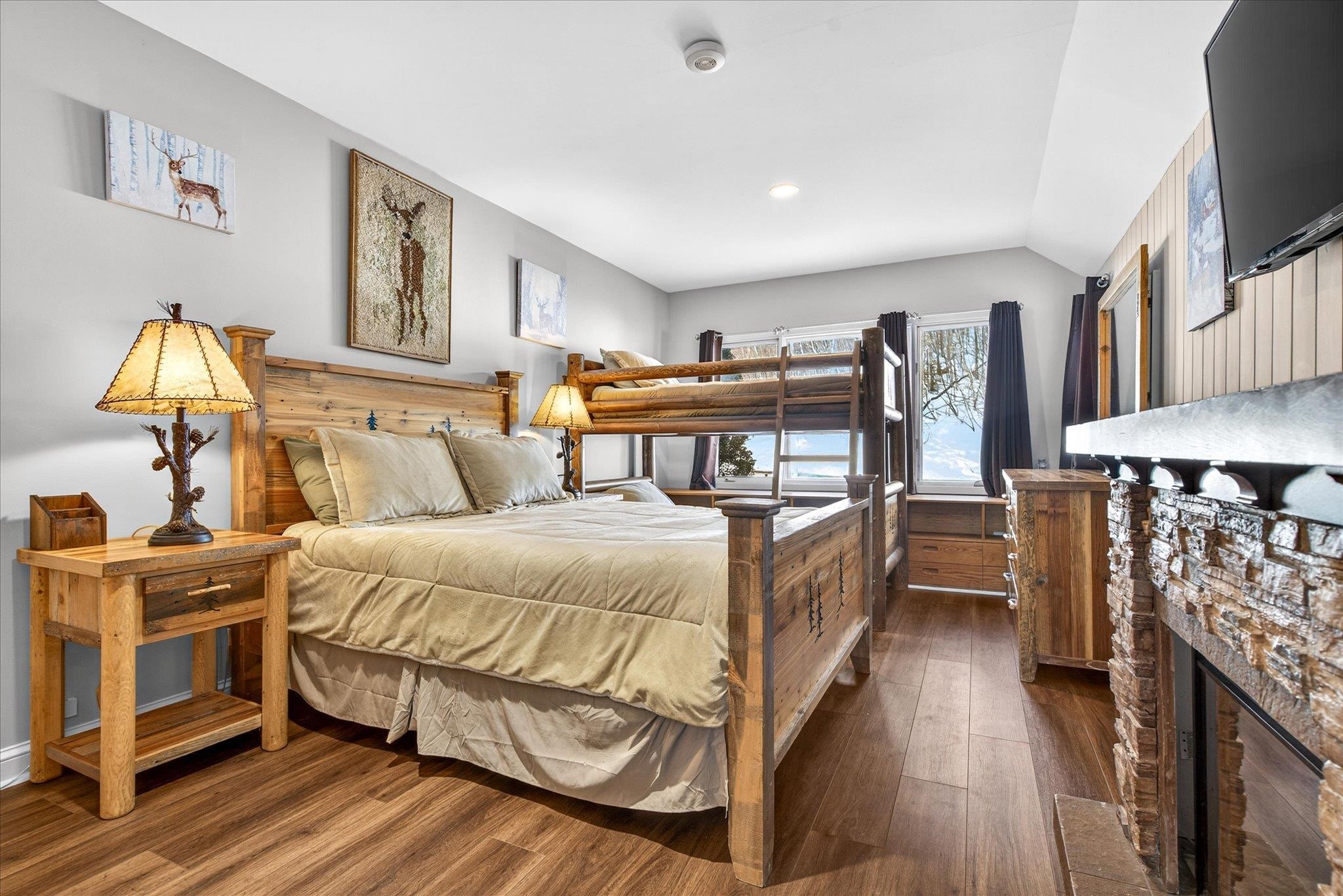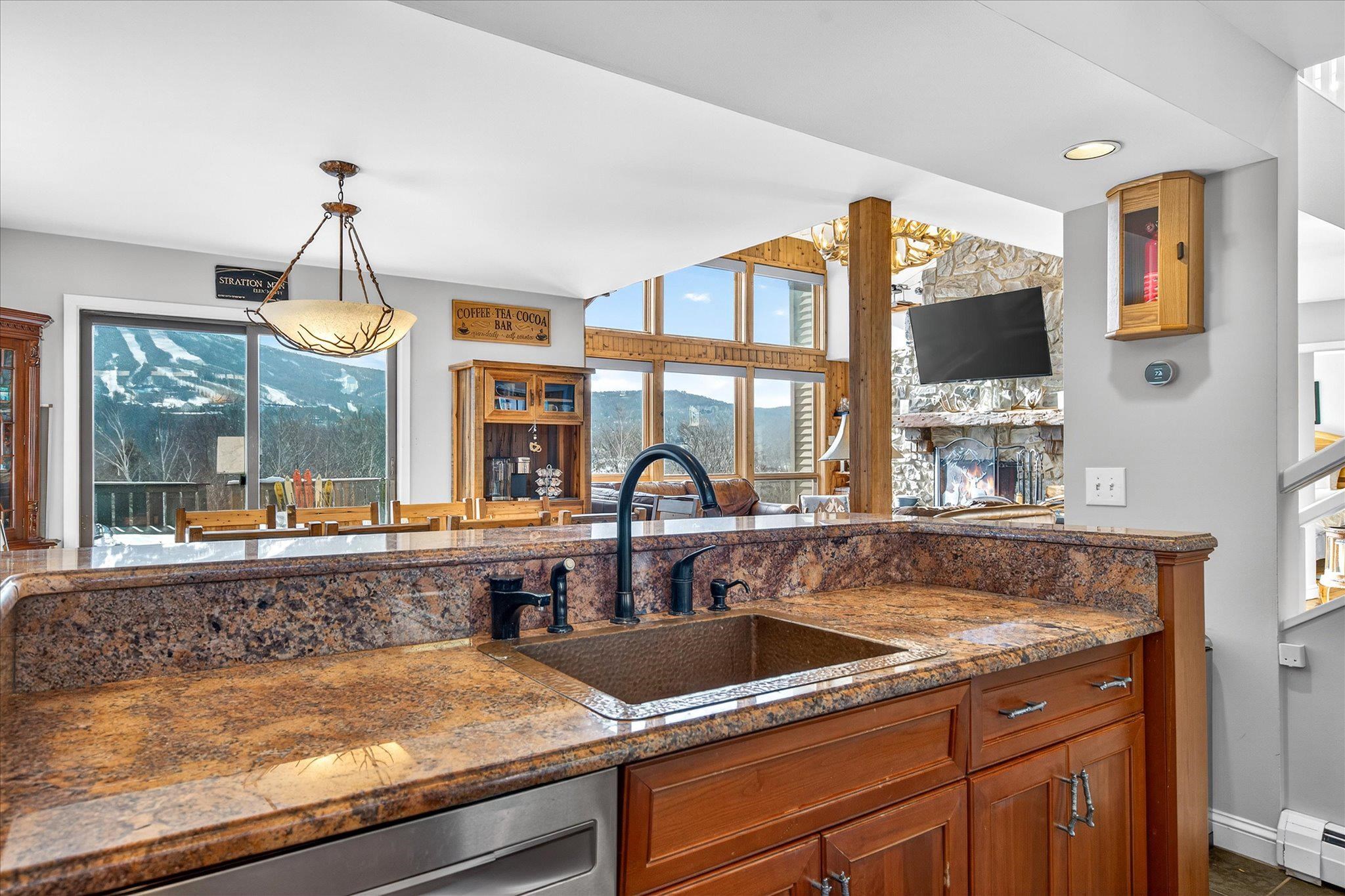 Ideally situated near the renowned Stratton Mountain Resort and offering convenient shuttle service to the slopes, this spacious four-bedroom, three-bath ski condo is thoughtfully designed for year-round enjoyment. A true retreat for outdoor enthusiasts, the home provides effortless access to world-class skiing in the winter and outstanding hiking and mountain biking throughout the warmer months. Step inside to a bright, open-concept living area where expansive windows showcase stunning views of Stratton Mountain. Warm wood accents throughout reflect classic Vermont style, creating a welcoming yet refined atmosphere. The generous kitchen, living, and dining spaces are perfectly suited for both everyday living and entertaining, offering an ideal place to gather after a day on the trails or slopes. Unwind in the private hot tub, or recharge by the wood-burning fireplace for another day of adventure. A finished lower level adds valuable additional space, perfect for guests to relax, gather, or be entertained. Nestled within a pristine natural setting, this condo offers a rare balance of privacy and convenience—just minutes from premier resort amenities while surrounded by scenic beauty. Whether you’re seeking adventure, relaxation, or both, this exceptional mountain retreat delivers comfort, charm, and the best of alpine living.