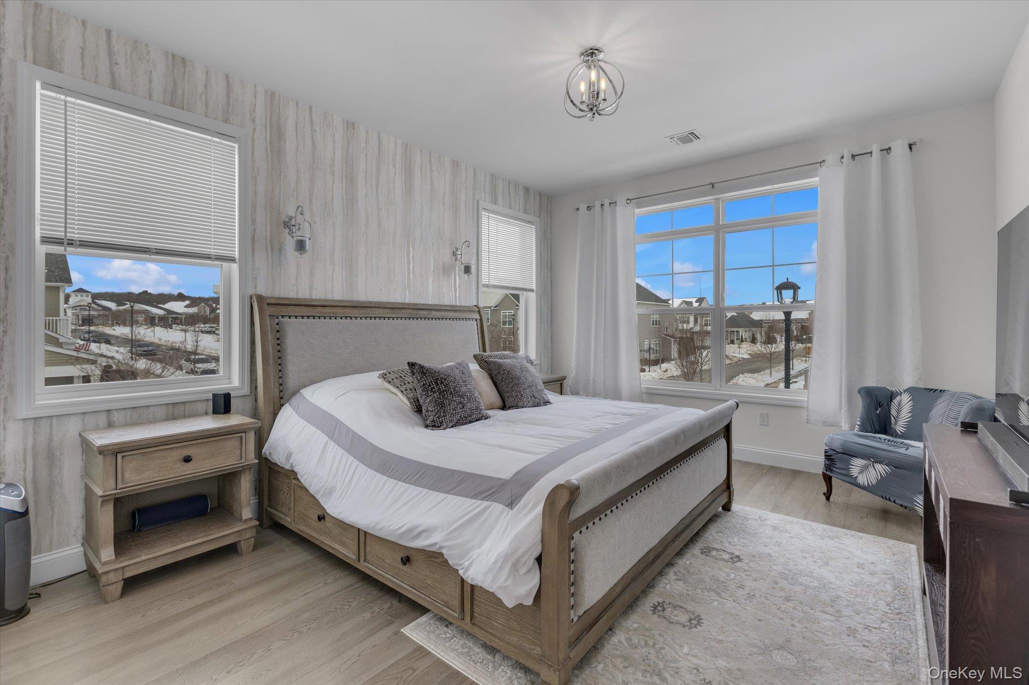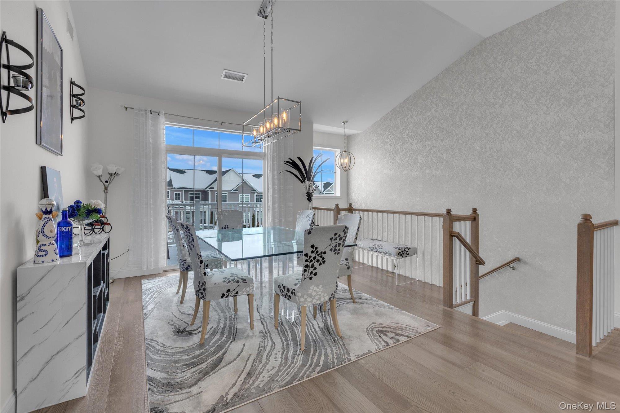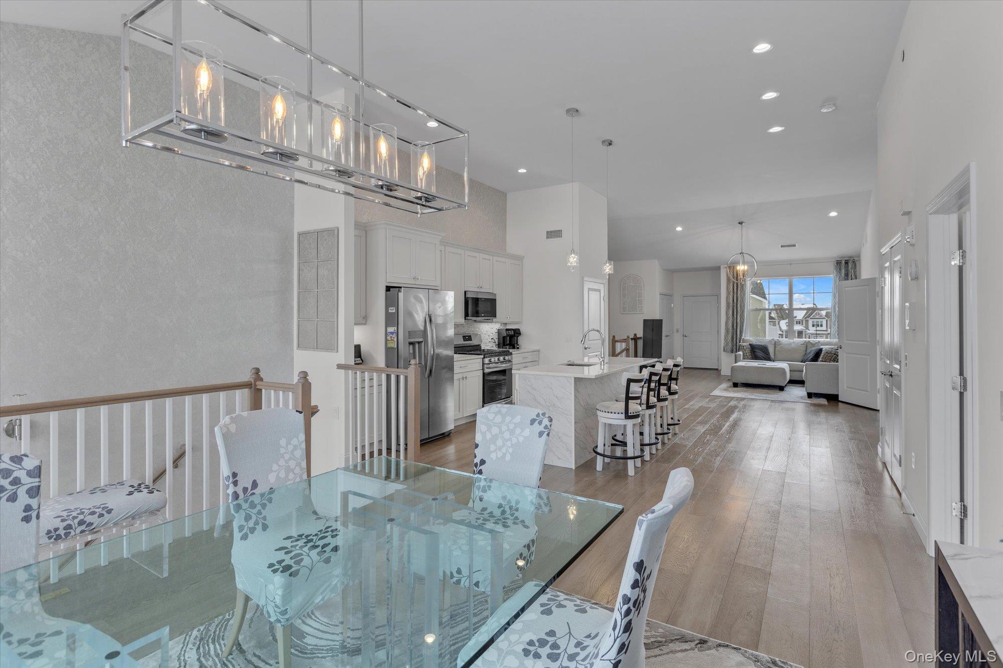 This lovely 2 Bed 2 Bath Bradford Model is an exquisitely finished, sun drenched, corner unit with soaring 14 ft. Vaulted Ceilings; your own private Elevator, unlike most Bradford units, and this one has high end fixture upgrades, such as Real Wood Flooring throughout; High End Lighting; Chandeliers; Sconces; Recessed medicine cabinets; Glass partition in Primary Bath; High end imported wallpaper, with a tastefully selected color palette. Additionally there is a 220v/15 amp dedicated outlet for an EV in the garage. This community is privileged to have a club house with a gym facility; numerous Dining and other establishments within a stones throw, such as Northwell Health Urgent Care; Starbucks, Walmart Super Center, SouthPaw Brewery, Several Restaurants, Paris Baguette Pastry, Wine Store, Hair Salons, and several other convenience stores. Additionally you are within 1-2 mins. of William Floyd Pkwy and the LIE which makes getting around the Island fairly convenient.