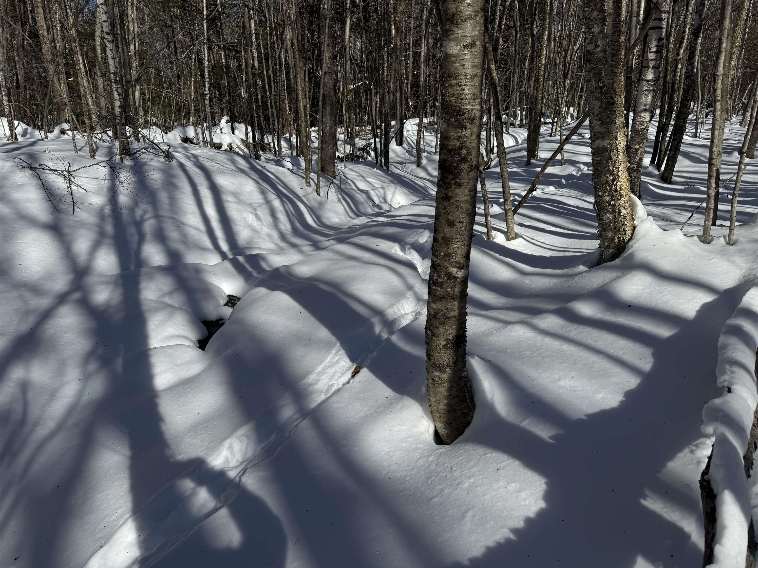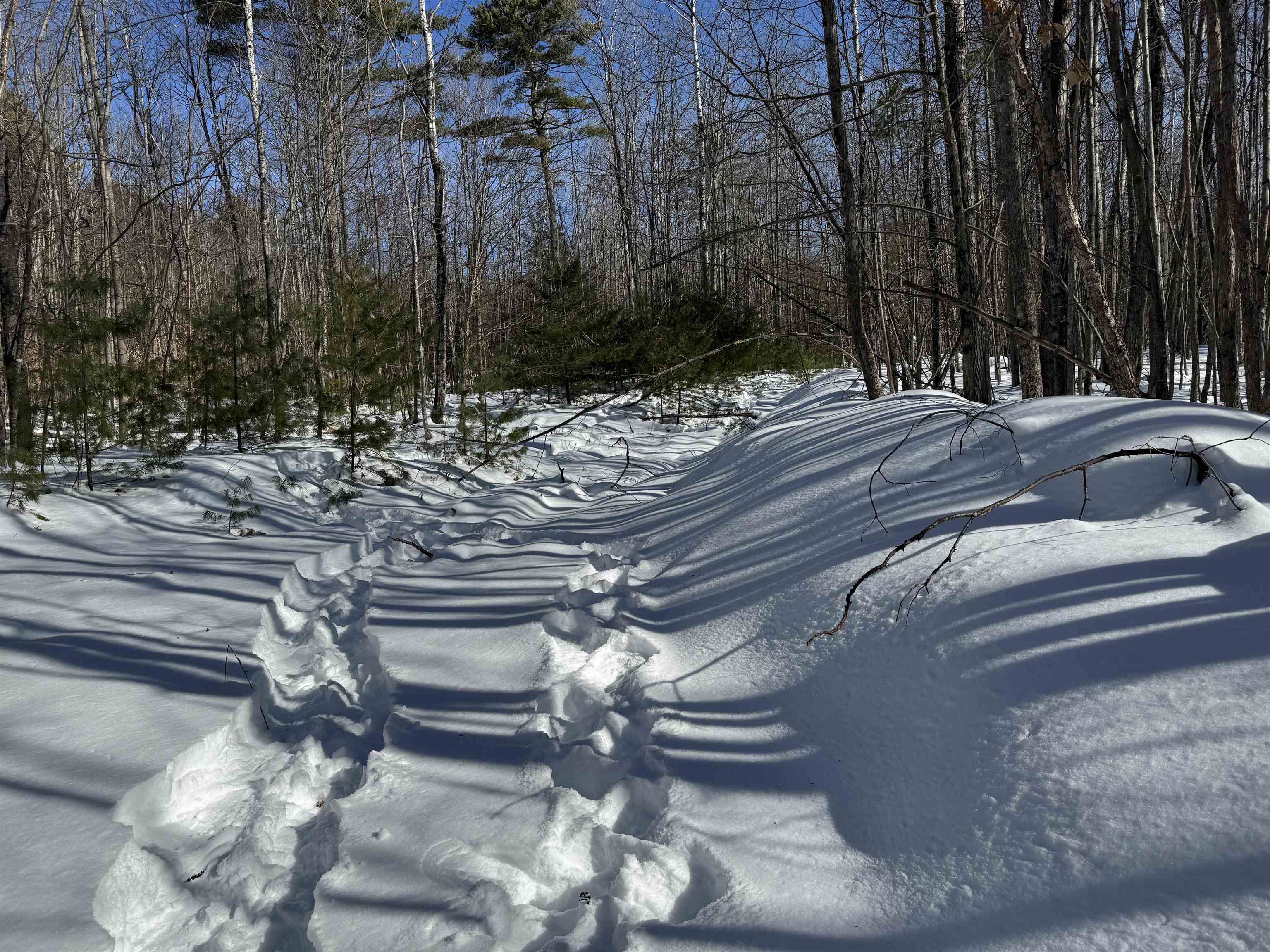 Come walk this gorgeous lot of 22 acres. Toby has had a splendid time checking out every tree, the stone wall and gazing longingly at stream that mom wouldn't let him go in to! The old logging trail will walk you around a good portion of this lot. It has a slight slope down from Rte 16. Property was logged many years ago, trails still there though not a lot of harvestable timber. Once you get a short way into the lot, the sounds of the highway fade away and the sounds of the forest calm your mind, the wind through the trees sings a comforting song. 180 feet of road frontage gives you plenty of space for your driveway, the permit will have to be renewed, it's good to know that there was one in place. Power of course is at the street; you decide where you want to bring onto the lot once you decide which of the many building sites suits your design! So, bring your builder, plans for your dream home or getaway and let's get started! This is a wonderful lot with a good feel to it as you walk through, don't miss it. And of course you have the great town of Wakefield minutes away, breakfast at Leno's, lunch at Poor Peoples Pub after a day spent at the town beach on Lovell Lake! Then fine dining at the Wakefield Inn! For a quick to go meal, stop at the Miss Wakefield Diner. All just down Rte 16 from your new place! Toby's ready to run through the snow and show all the great spots! Come check it out today!