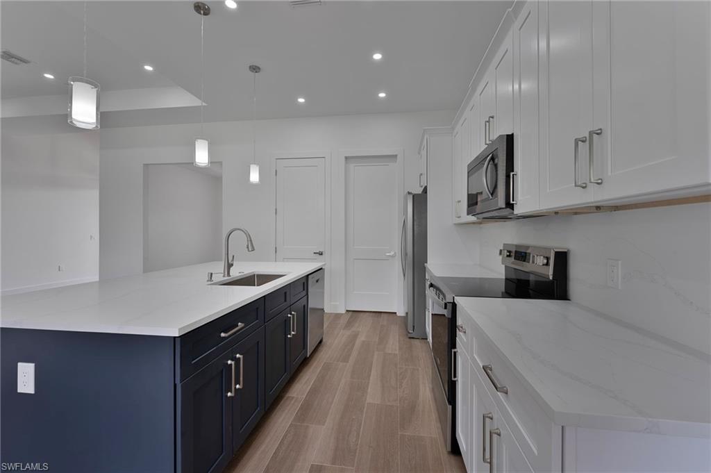 Embrace a life of comfort and style in this newly constructed home offering an oversized backyard with a covered lanai, perfect for families and enjoying Florida's sunshine all year round. The bright and open interior showcases beautiful tile flooring throughout, 8'-foot doors, high ceilings and a gourmet island kitchen, complete with modern shaker style cabinetry, quartz counters, an elegant backsplash, and stainless-steel appliances. The home is ideal for both everyday living and entertaining. You'll appreciate the epoxy finished garage floors and the convenience of an automatic sprinkler system, ensuring your new home's exterior is as impressive as the interior. Strategically located near SR 82, schools, and the SW Florida International Airport, this property perfectly balances tranquility and accessibility.