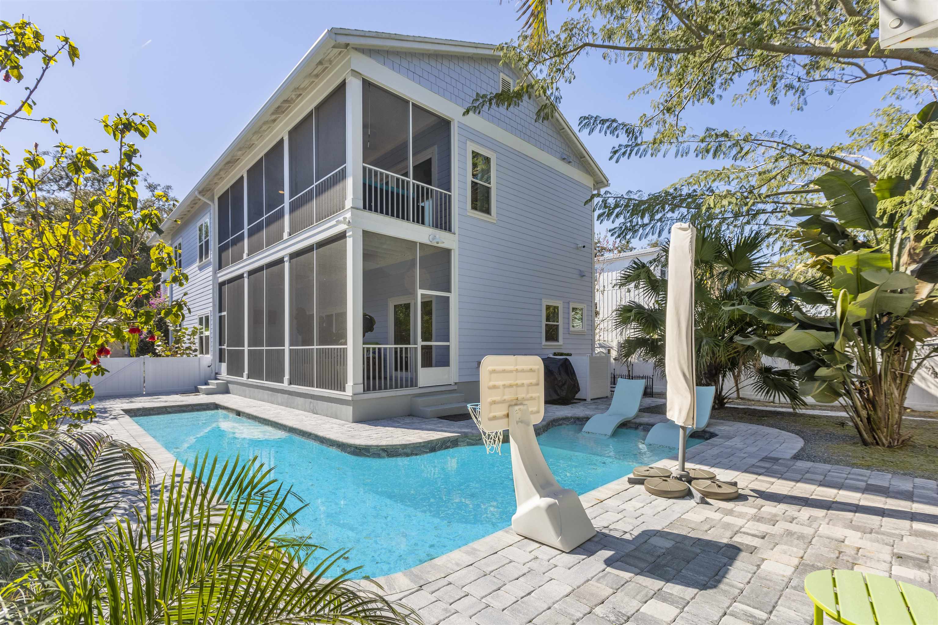 Set in one of St. Augustine’s most desirable neighborhoods, 38 Dufferin Street enjoys a prime Uptown location adjacent to the iconic Magnolia Avenue, one of the most photographed and celebrated streets in the country. This prestigious setting offers timeless Old Florida charm while remaining walkable to downtown cafés, wine bars, the marina, and the beach. Built in 2023, 3-bedroom, 3-bath, plus Office/Studio. This custom coastal home sits on an oversized downtown lot and offers resort-style living with a reinforced L-shaped saltwater pool, lush landscaping, and expansive porches. High-end finishes include a chef’s kitchen with Samsung Bespoke appliances, Cambria quartz counters, marble bath vanities, whole-home audio, and smart tech throughout. Walk to cafés, marina, and only 2 miles to beautiful Vilano Beach. A rare blend of new construction, luxury, and location.