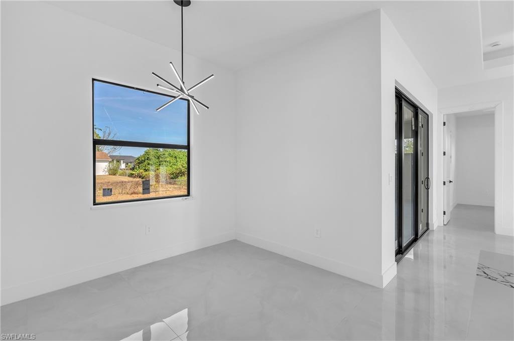 This stunning 3-bedroom + den, 3-bathroom new construction home offers the perfect blend of modern design and comfort in a rapidly growing Lehigh Acres area. Featuring an open layout, tray ceilings, and porcelain tile throughout, this home feels bright, spacious, and inviting! The kitchen is a true standout with a sleek quartz waterfall island and stainless steel appliances, ideal for entertaining or everyday living. The primary suite includes dual sinks and a spa-inspired shower with a waterfall shower head and elegant porcelain tile. This room has total 4 bedrooms, or 4th bedroom could be utilized as a den! Enjoy the Florida lifestyle with a spacious patio, perfect for relaxing or hosting guests. Thoughtfully designed and move-in ready, this home delivers modern living at its fines!