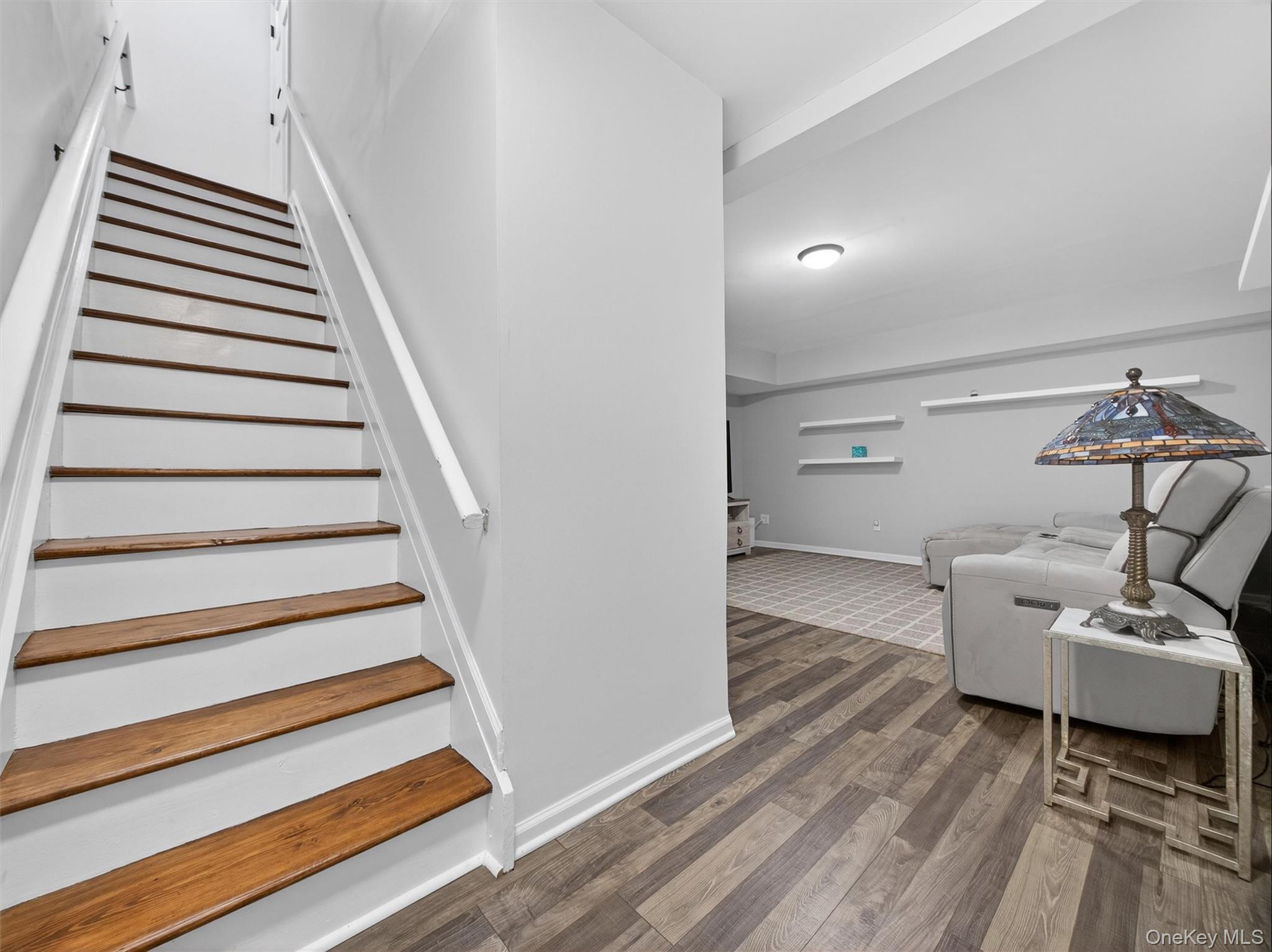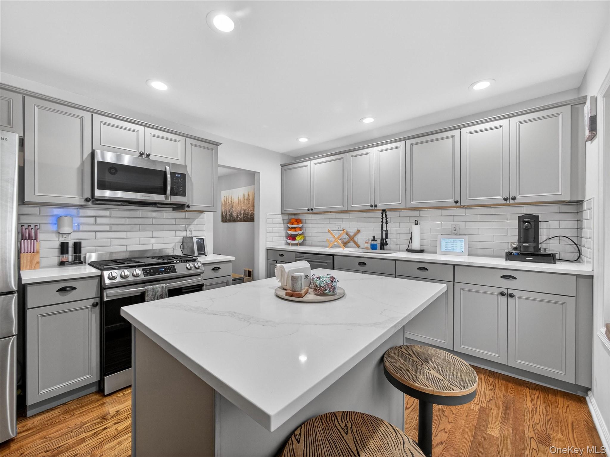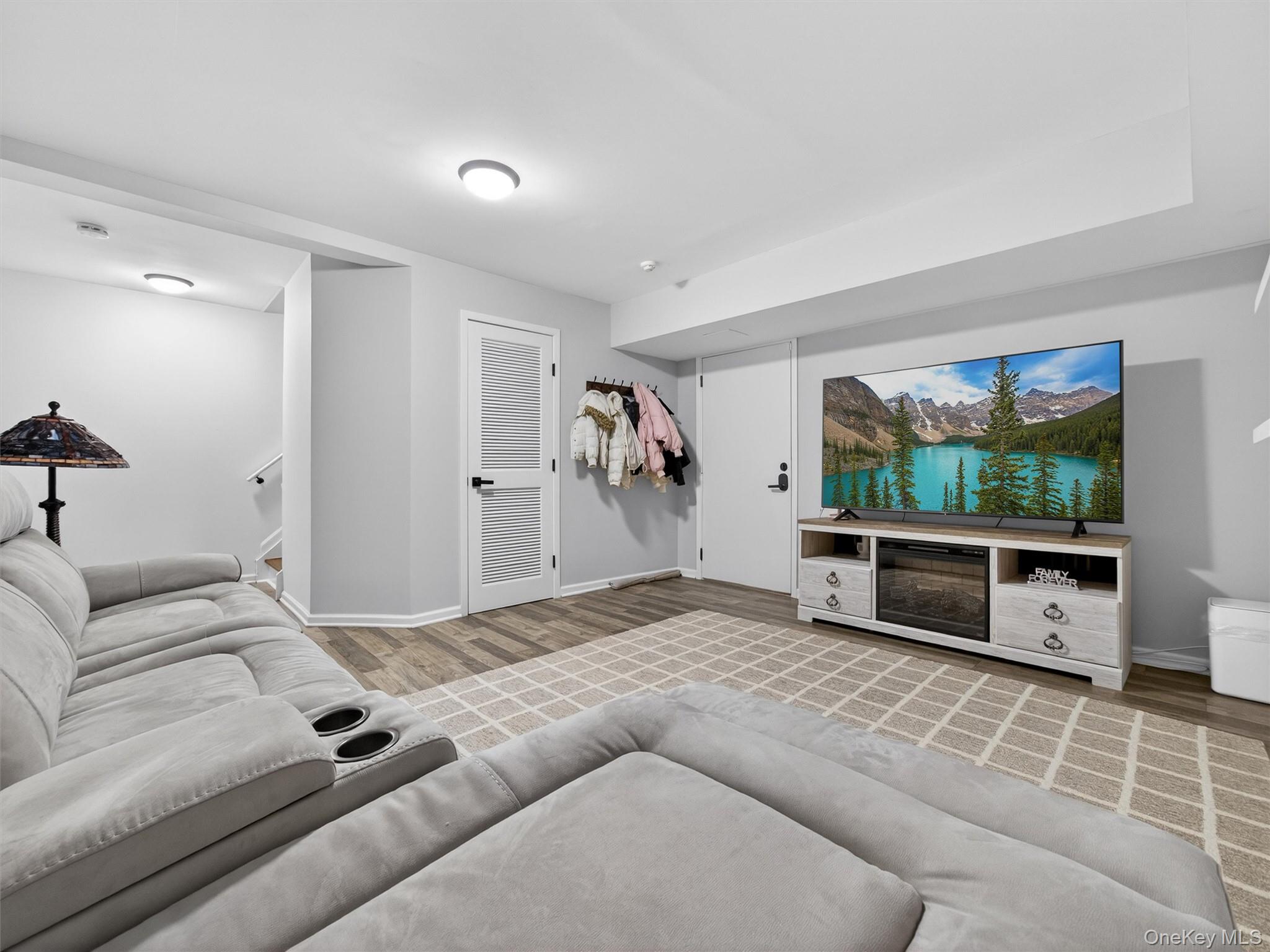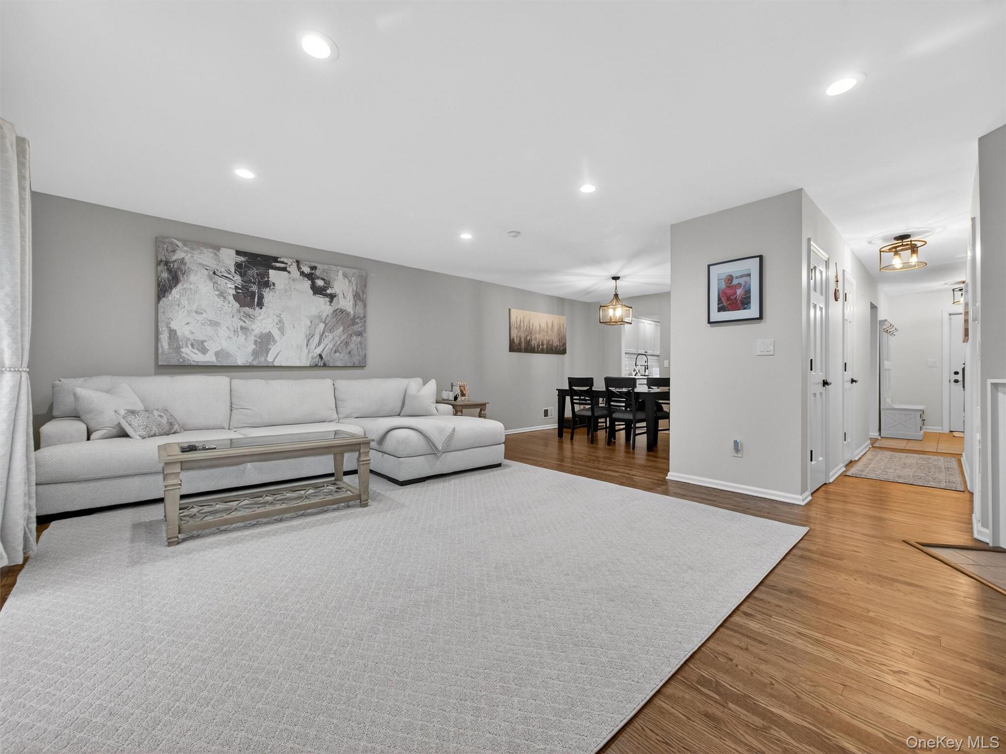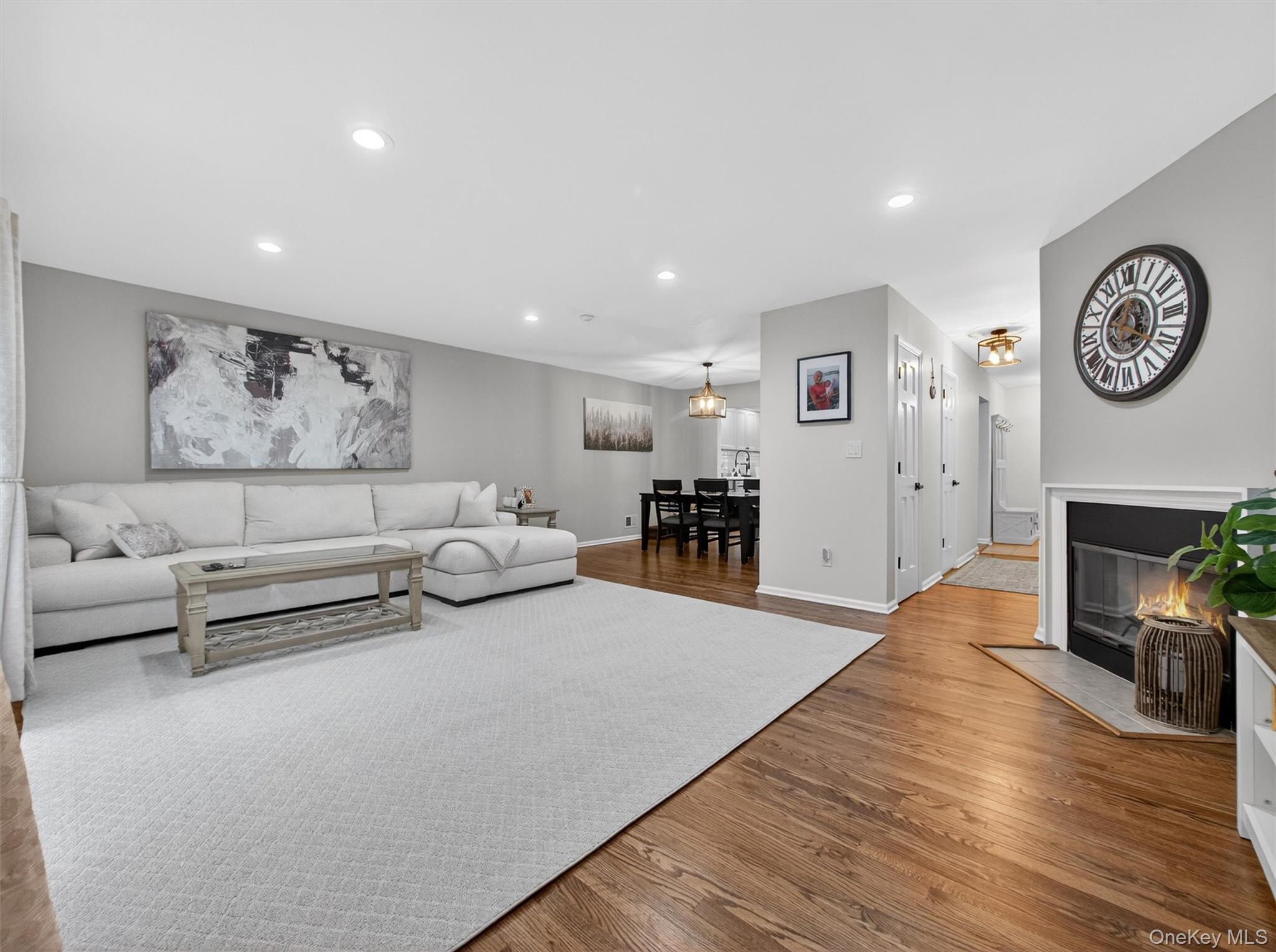 Welcome to this beautifully updated, modern townhome with a two-car attached garage, ideally located within the highly sought-after Clarkstown School District. Designed for both comfort and style, this residence offers refined living across multiple levels. The heart of the home is a stunning chef’s kitchen, featuring sleek quartz countertops, a generous center island, stainless steel appliances, and newer bay windows that flood the space with natural light. Refinished hardwood floors flow seamlessly through the inviting living room, complete with a cozy fireplace, dining area, recessed lighting, a convenient powder room, and a newer slider leading to a private balcony—perfect for morning coffee or evening relaxation. The second level offers two generously sized bedrooms, an updated hallway bath, and a conveniently located laundry area. The upper level is dedicated to a serene primary suite, boasting a walk-in closet and a spa-inspired, updated bathroom with skylight, soaking tub, and separate shower. The finished lower level provides additional versatile living and entertaining space and offers direct access to the two-car attached garage. Ideally situated near major highways, shopping, dining, parks, and recreational amenities, this exceptional townhome blends luxury, convenience, and modern living in the heart of Congers.