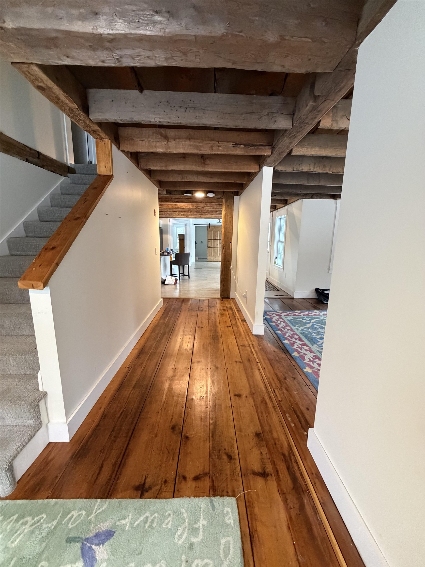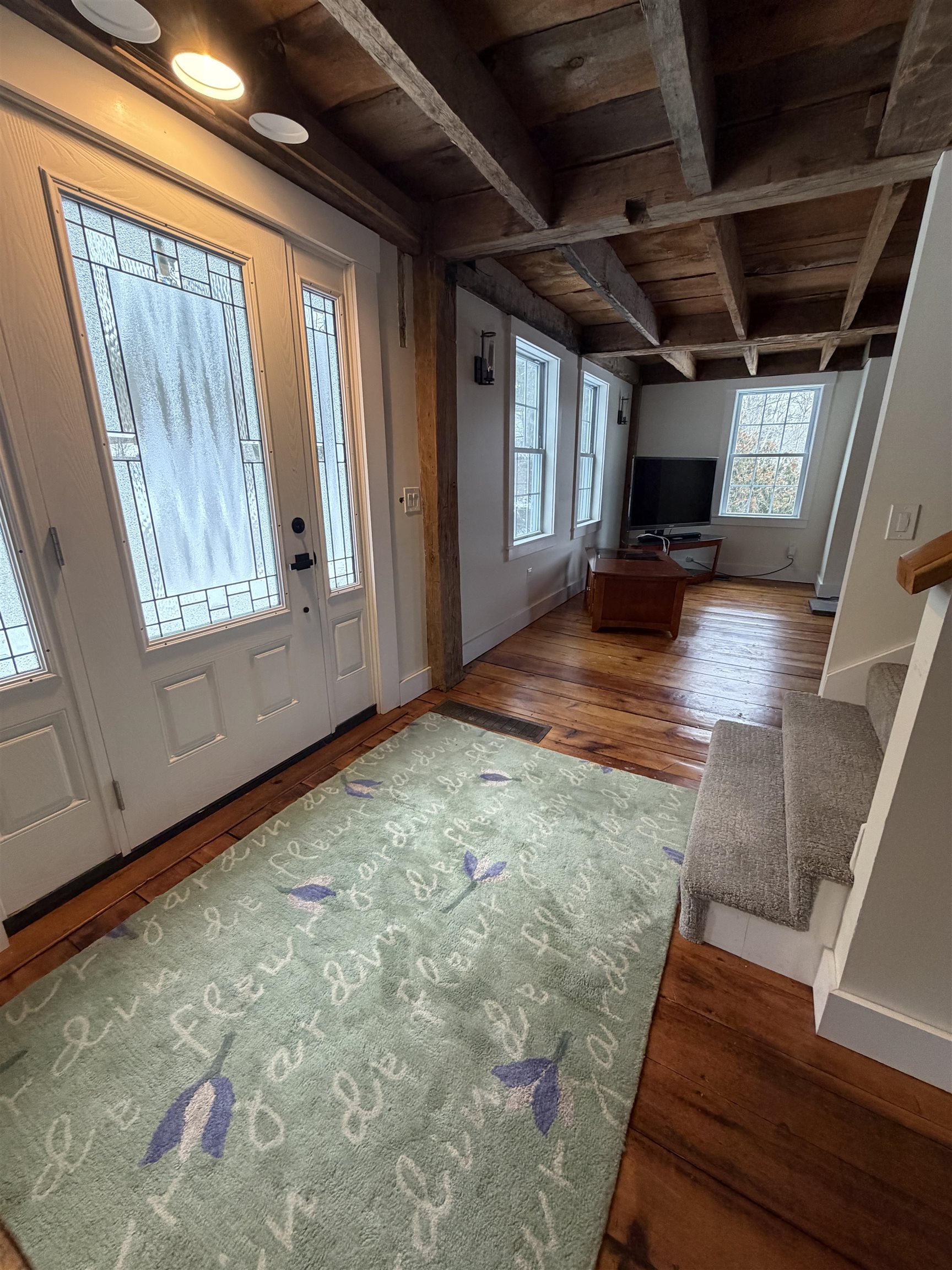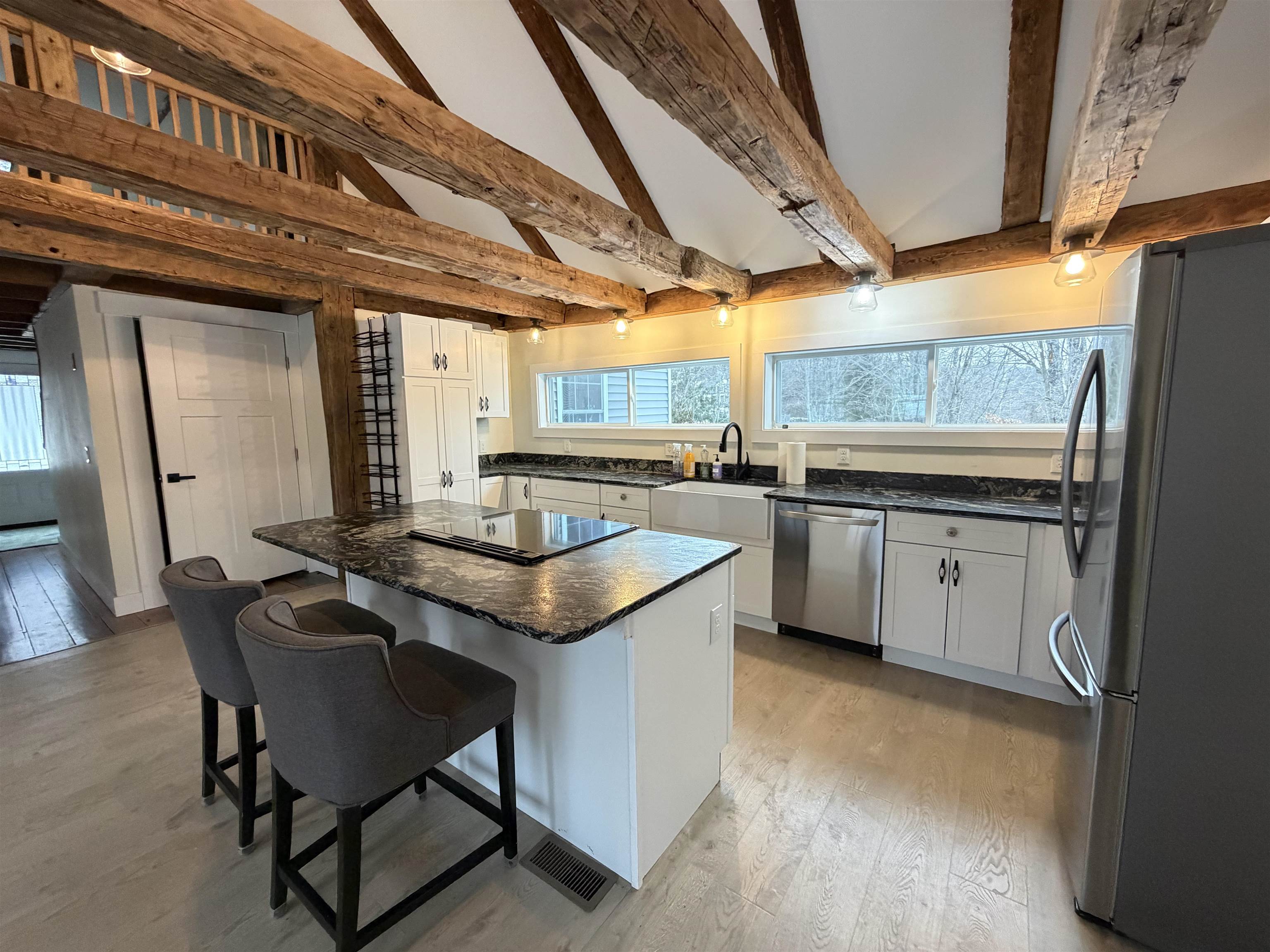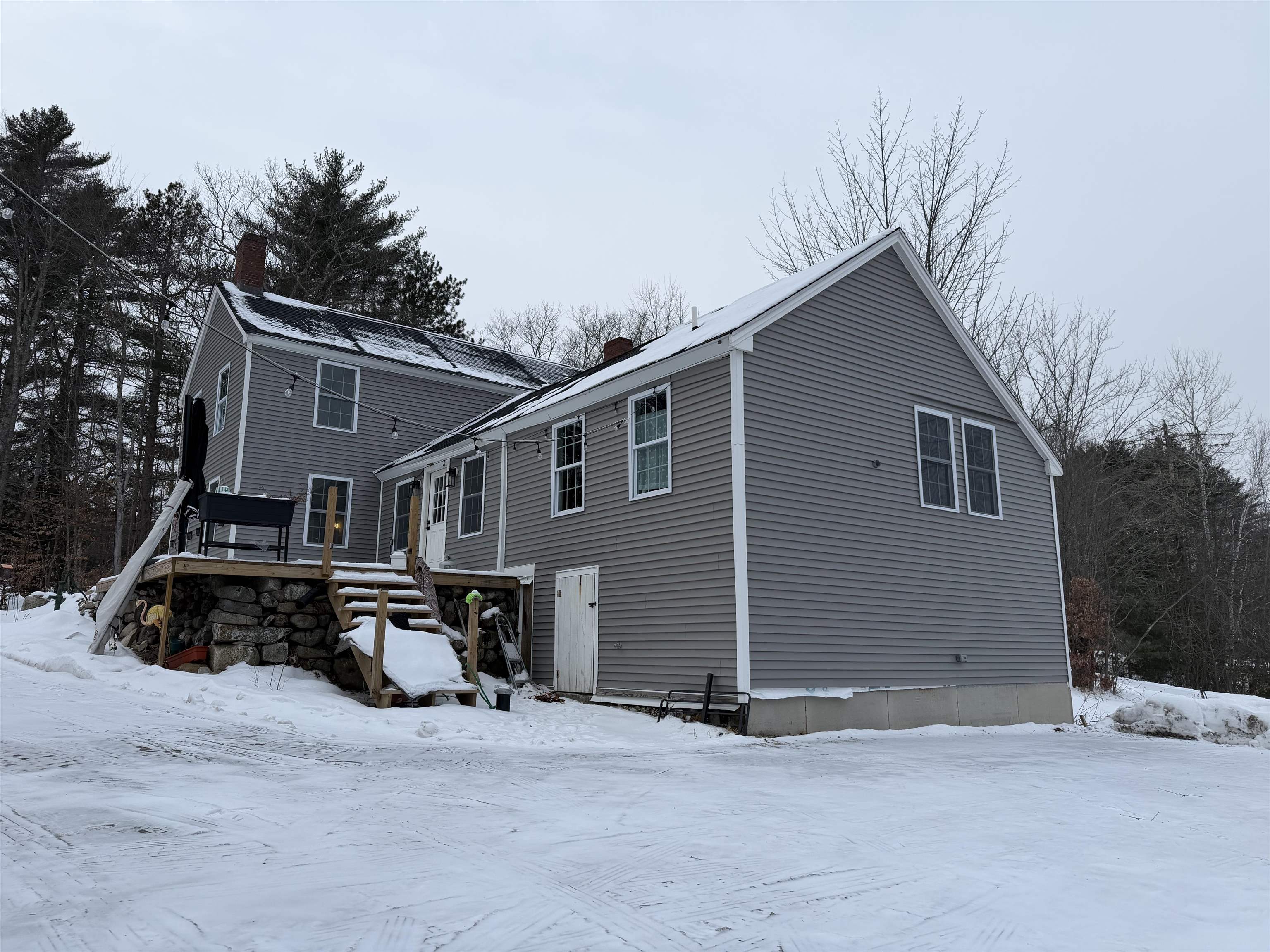 Completely renovated farmhouse including new windows, electrical, flooring, kitchen, roof, heat, plumbing, spray foam insulation and bathrooms. Classic New England farmhouse with original post and beam accents, completely renovated in 2023 to bring new life to this old beauty. Home has 3 bedrooms upstairs with full bath and a bonus room on first floor which could be used as a first floor primary. Second full bath on first floor with washer/dryer hookup (stackable only) and 2 options for living rooms. Oversized eat in kitchen with newer appliances and granite counters provide ample space for dining and cooking. Side entrance has a large wood deck (under the snow) which will have new railings come springtime (per owner). Additional insulated but not heated storage space under the house is available for use. This home is located within 14 miles of Concord Hospital and all Concord amenities as well as only 6 miles to Interstate 89, providing easy access to all points north or south. Detached 20 x 20 garage with electricity available for additional monthly fee. Pets considered on case by case basis. Absolutely no smoking anywhere on property. Owner interest.