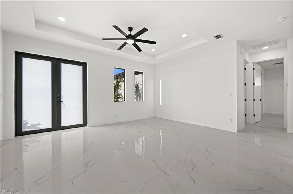 Welcome to the "Moonstone" Model. This amazing home is the perfect blend of value, comfort, luxury, style, and security. This beautiful new construction is built for everyone who wants to live with all the comforts of 'home. ’ Impact windows and doors, European style kitchen featuring soft closing cabinet doors, drawers and Bloom hardware, high-end appliances, double oven, hood, cooktop, wine cooler, and much more. Master bedroom with custom designed built in walk-in closet, master en-suite with glass shower enclosure, double vanity, and linen closet. Two spacious bedrooms with walk-in closets, guest bathroom with glass shower enclosure. Home offers open concept layout with 10-foot-high interior ceilings, 8-foot-high designer doors. Outdoor kitchen with marble countertops and 1/2 bath by the pool, ready for enjoyment 12' x 24' beautiful pool with Sun Ledge, 2 car garage, washer, dryer, and laundry sink. "NO FLOOD INSURANCE NEEDED". Engulf in the multitude of upscale details that you must see to appreciate. Enjoy your day by the pool or explore everything Cape Coral has to offer. Do not miss out on this one-of-a-kind opportunity! Schedule your showing today and make this beauty your home!