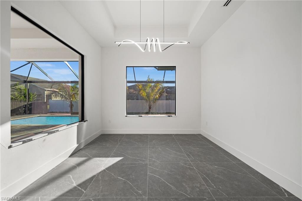 Beautifully designed modern residence offering 4 BEDROOMS and 3 BATHROOMS with a bright, expansive layout that feels open and seamlessly connected throughout. The heart of the home is the stunning KITCHEN, featuring a STATEMENT WATERFALL ISLAND, CUSTOM CABINETRY, DOUBLE WALL OVENS, WINE COOLER, and sleek contemporary finishes, all flowing effortlessly into the main living and dining areas. The PRIMARY SUITE delivers a spa-like retreat with a JETTED SOAKING TUB, OVERSIZED WALK-IN SHOWER with multiple shower heads, DUALVANITIES, and refined designer details. Additional bedrooms provide excellent flexibility for guests, home office, or den space. Interior highlights include TILE FLOORING THROUGHOUT, TRAY AND COFFERED CEILINGS, BUILT-IN CABINETRY, and IMPACT-RESISTANT WINDOWSAND DOORS for comfort and peace of mind. Outdoor living is elevated with a SCREENED LANAI showcasing a HEATED SALTWATER POOL, POOLBATH, OUTDOOR SHOWER, and a FULL OUTDOOR KITCHEN ideal for entertaining, all complemented by PROFESSIONAL LANDSCAPING and an AUTOMATIC SPRINKLER SYSTEM. Private and located in a NON-HOA area with central utilities, this home offers modern style, functional living, and a refined Florida lifestyle.