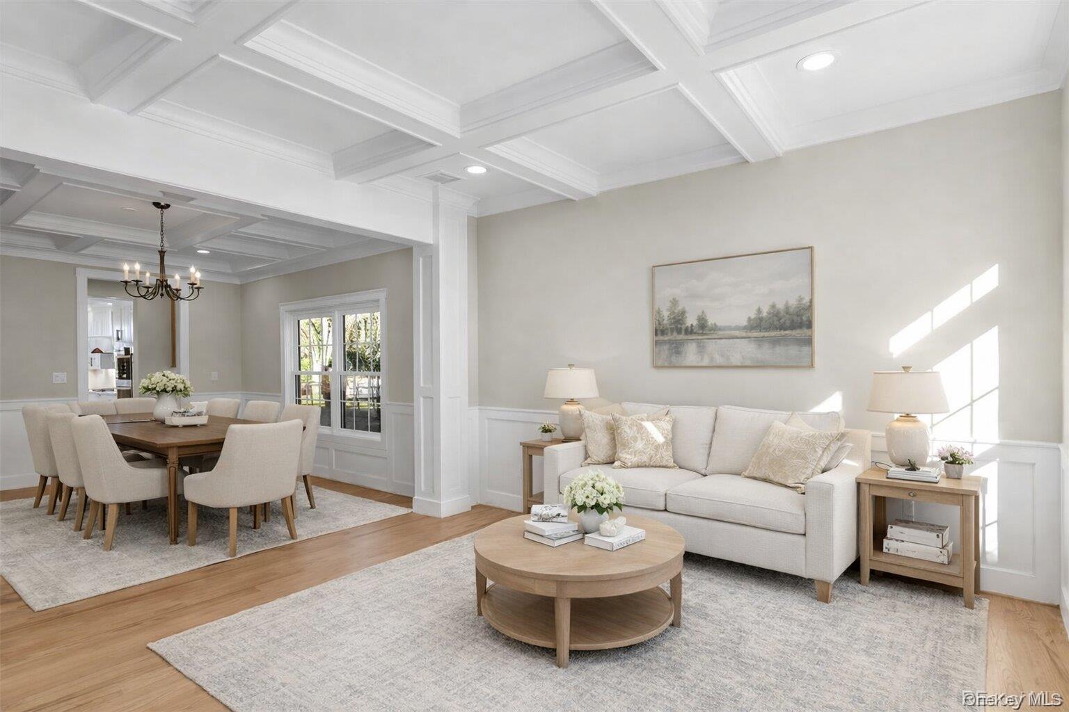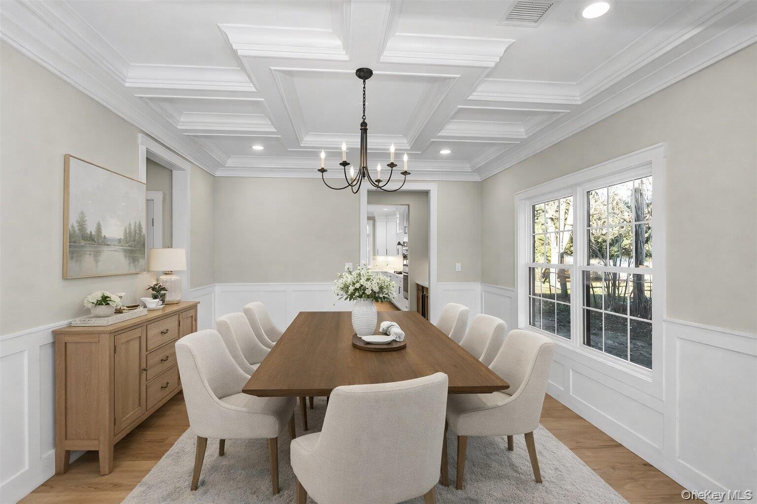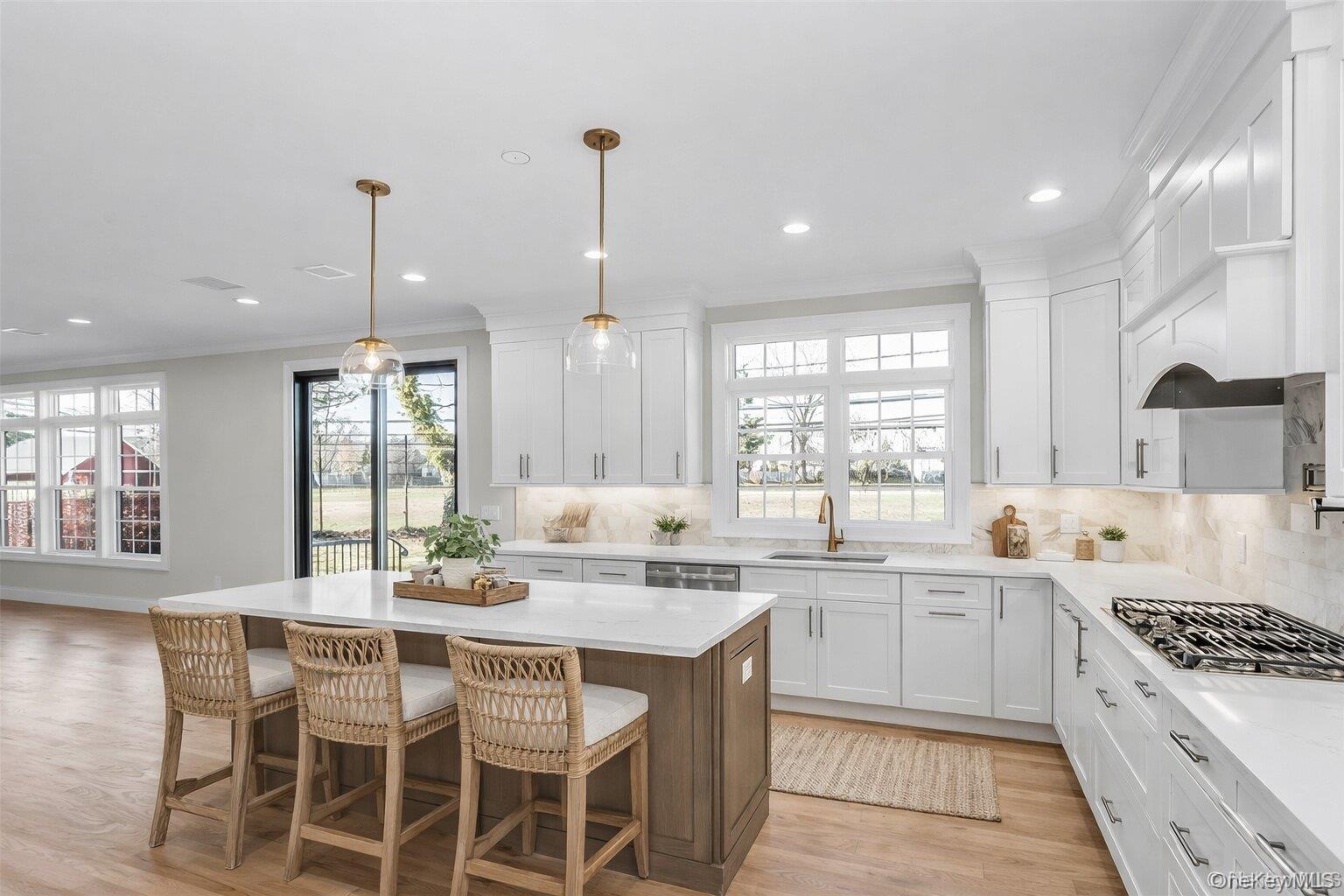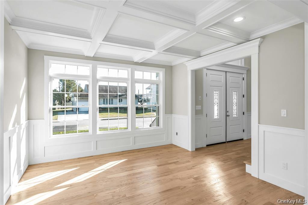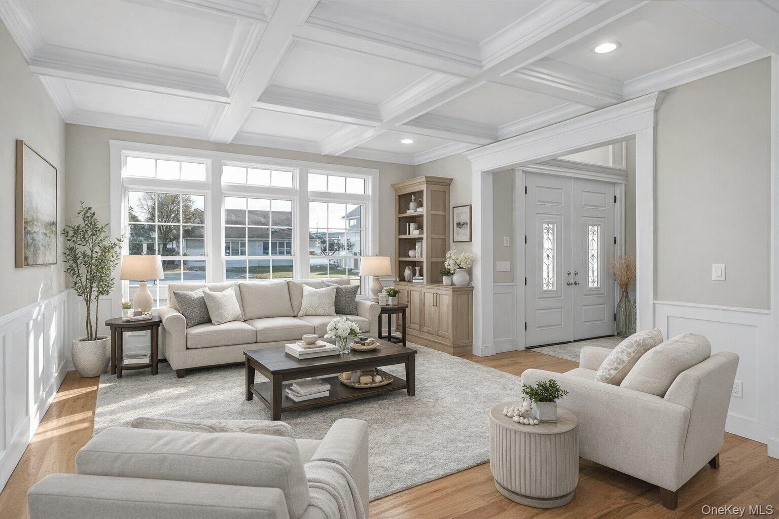 Beautiful Brand New Colonial! To be complete in April but can show exact finished one. Open First Floor Layout with Huge Eat-In-Kitchen, White Quartz Countertops, Gourmet Commercial Appliances, Large Island with Seating, and Butler Pantry w/ Dry Bar. 9' Ceilings on First Floor with Two-Story Foyer. 5 Bedrooms/ 3 Full Bathrooms Total, Including First Floor Bedroom. Four Generous Sized Bedrooms on Second Floor Including Huge Primary Bedroom and Primary Bathroom with Two Separate Vanities, Walk-In Shower and Soaking Tub. Second Floor Laundry Room with Full Cabinets For Storage. Generous Amount Of Closets Including Walk-in Closets in Primary Bedroom. Hardwood Floors Throughout. Exceptional Craftsmanship and Detail with Extensive Moldings and Beautiful Coffered Dining Room Ceiling. Beautiful landscaped yard with 4 zone sprinkler system and timer and 6 ft. white vinyl fence to enclose rear yard. This home is perfection to make memories!!!!