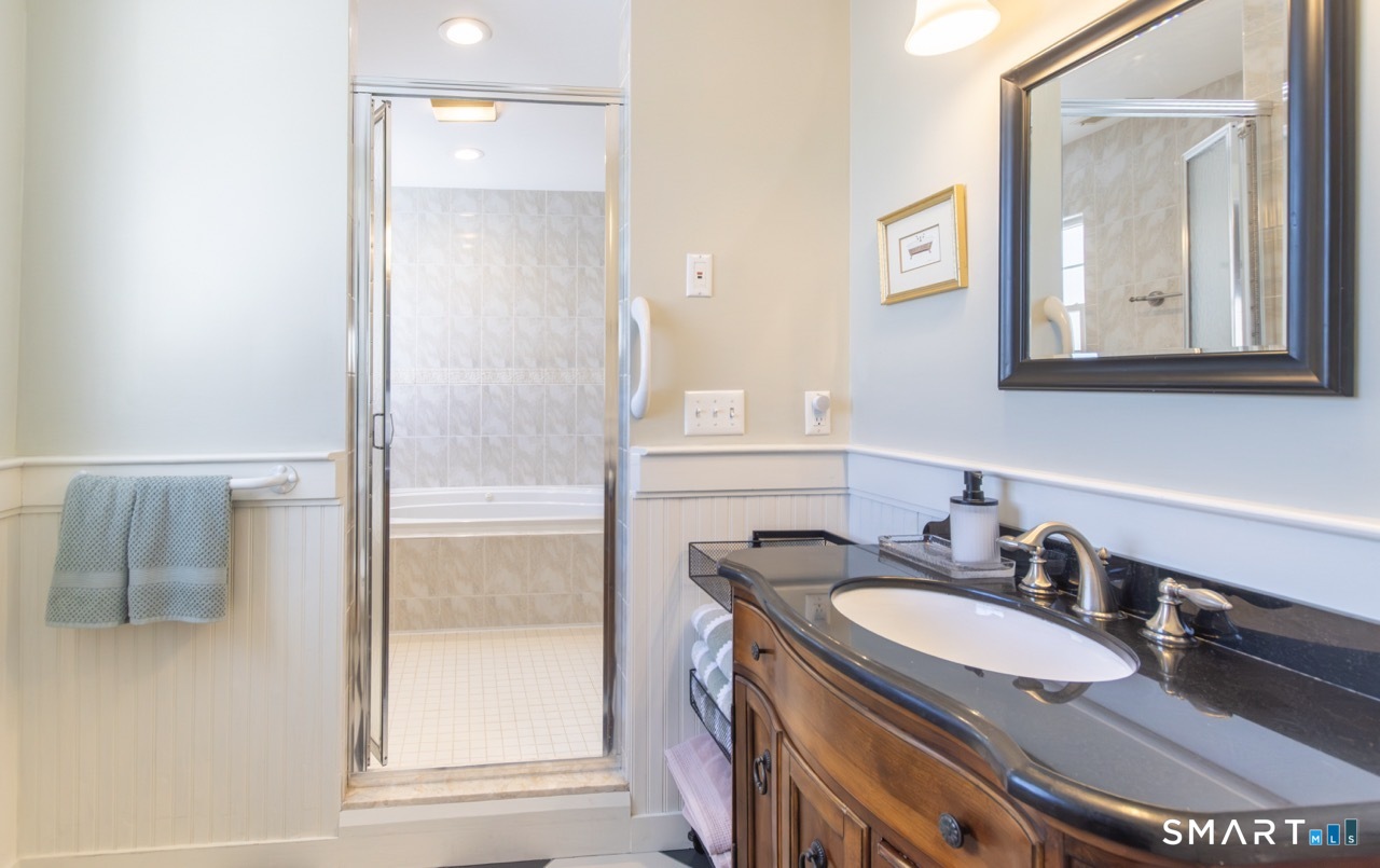 Better than new, this move-in-ready 1st Floor luxury condominium has been beautifully updated and meticulously maintained, featuring hardwood floors throughout the main level, abundant natural light, custom millwork and built-ins, an open floor plan, cathedral ceilings, generous storage, and a living room with a cozy gas fireplace and sliders to a private Trex-style deck overlooking a stunning grassy property framed by classic stone walls and mature trees beyond. The brand-new, fully remodeled kitchen is a true standout, offering all-new flooring, quartz countertops, ceramic farmhouse sink, stainless steel appliances, gas stove, high-end custom cabinetry, and pantry storage. The space is anchored by a charming eat-in area with custom built-in bench seating, creating a warm and inviting spot for casual meals and conversation. The main level includes a spacious dining and living room combination, a library or home office with extensive built-ins, and a primary suite with a full bath featuring both a walk-in shower and whirlpool tub, along with his-and-hers closets. Additional conveniences include a half bath, laundry area, and direct garage access. The finished lower level offers approximately 1, 290 square feet (per tax records), providing exceptional space for guests or personal use. This bonus area features new luxury tile flooring, a large family room with full bath, cedar closet, walk-in closet, a rare set of Bilco doors to the exterior-making moving in a breeze. Residents enjoy access to the clubhouse and year-round activities, including book club, poker, and seasonal gatherings. Ideally located within walking distance to shopping, dining, the library, town hall, and town gazebo with year-round functions, this terrific complex offers easy convenience and highway access. This is more than a condominium-it's a warm and beautifully updated home with a gorgeous yard and private deck paired with a relaxed, connected lifestyle. Guest parking is conveniently located in the driveway as well as directly next to the unit. Convenience abounds with nearby medical offices, restaurants, and three public pools (including one indoor). Located within this well-maintained community, 71 Cider Mill Lane offers a rare blend of beauty, tranquility, spaciousness, and accessibility. Recent community upgrades include brand-new roofs, gutters, roads, steps, and driveways, significantly enhancing the overall appearance and value of the complex. A special assessment for these improvements is $159 per month for 10 years. The association also charges a one-time move-in fee equal to two months of the current $325 monthly HOA fee ($650). This is an excellent opportunity to purchase one of the most recently updated units in the community. Please see the video link for a virtual walkthrough of this special home.