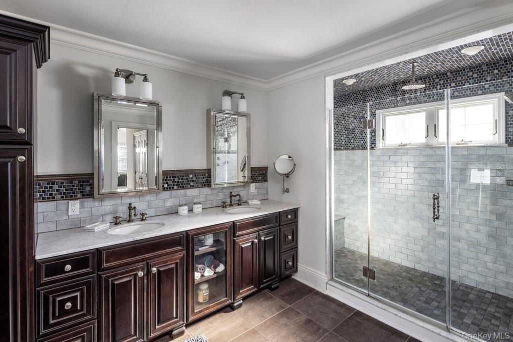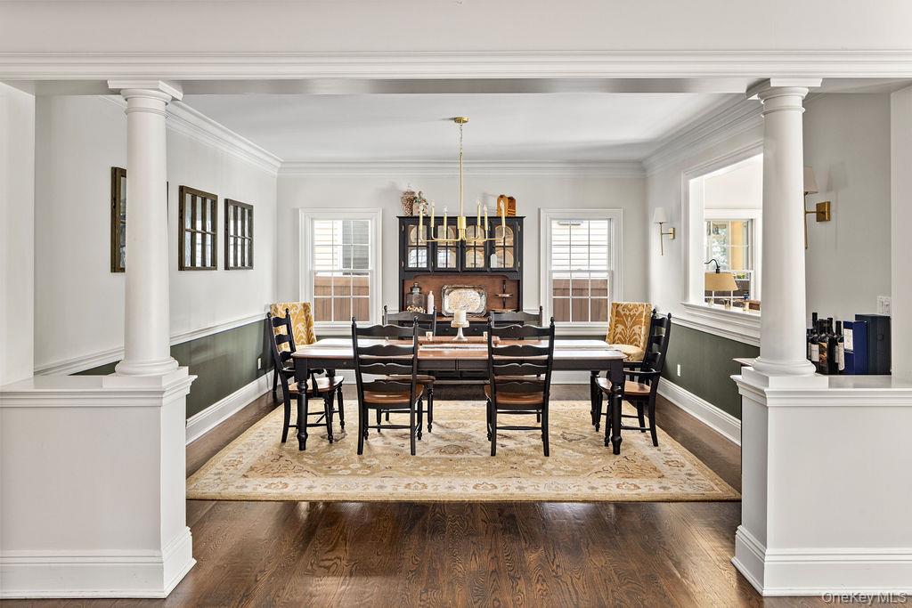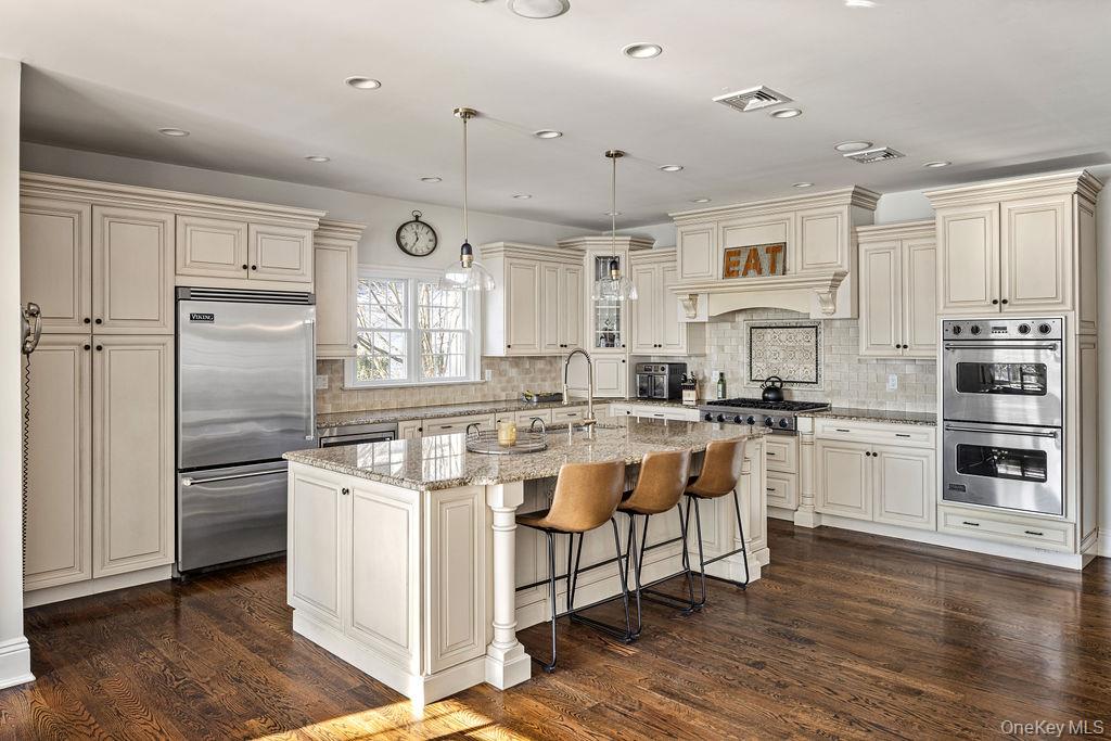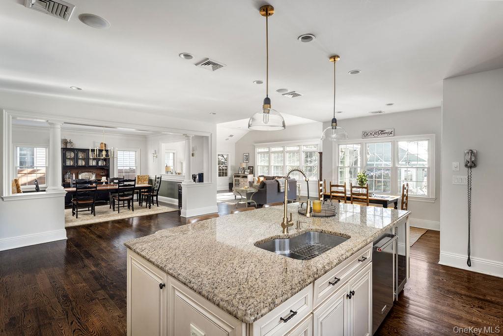 Welcome to 24 Loines Avenue, Merrick ! Located in the prestigious “MERRICK WOODS “ section and within School District 25 (Chatterton Elementary), this absolute stunner stands as one of the area’s most distinctive modern Center Hall Colonials. Custom built in 2008 and meticulously maintained, this exceptional residence offers approximately 4, 000 square feet of thoughtfully designed living space on a private shy half-acre lot with remarkable frontage and depth. Superior craftsmanship and premium materials are evident throughout, beginning with a grand two-story foyer, 9-foot ceilings on the main level, and rich hardwood floors finished with oil-based stain and topcoat. Formal living room with a fireplace and formal dining room provide elegant entertaining spaces, while the expansive den with vaulted ceiling and gas fireplace creates a warm and inviting gathering area. A sun-filled sunroom, enhanced by ten windows and its own gas fireplace, offers a stunning year-round retreat. The open-concept chef’s kitchen anchors the home and features Viking stainless steel appliances, granite countertops, custom cabinetry, and a substantial 4’ x 9’ center island with seating and storage, flowing seamlessly into the adjacent dining and living areas. Custom trim, detailed moldings, and refined oil-based finishes reflect the exceptional attention to detail throughout. The home offers five generously sized bedrooms and three full bathrooms, including a spacious primary suite with a private bath featuring double sinks, high-end finishes, and two oversized walk-in closets. All bedrooms are equipped with custom closet systems, while an additional full bathroom with double vanity and a second-floor laundry room with cabinetry provide everyday convenience. A fully finished basement with its own heating zone delivers versatile space ideal for recreation, fitness, or extended living. Advanced systems include three-zone hydronic heating, central air conditioning, natural gas utilities, hybrid insulation (spray foam and blown-in fiberglass), whole-house water filtration, 200-amp electrical service with sub-panel, and a full security system—offering exceptional comfort, efficiency, and soundproofing. The outdoor setting is equally impressive, featuring professionally maintained landscaping, extensive bluestone and brick hardscaping, a natural gas fire pit, underground gutter drainage, and an 8-zone automatic sprinkler system, with ample room to add a pool or additional outdoor amenities. Completing the property is a heated and cooled three-car detached garage, fully finished and equipped with a two-zone Mitsubishi split system, attic storage, new roof, slab, and footings, along with a long private driveway extending beyond a gated entrance for enhanced privacy and parking. Set on a quiet, tree-lined street close to the LIRR, parks, beaches, and major parkways, this turnkey residence seamlessly blends timeless architectural elegance with modern luxury—offering estate-like privacy and enduring value in one of Merrick’s most sought-after neighborhoods. Built to last, thoughtfully designed, and truly exceptional 24 Loines Avenue, Merrick is the dream you have always wished for. Make it your reality.