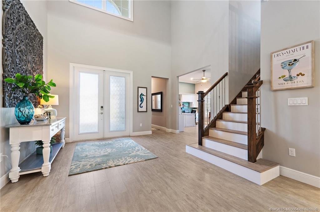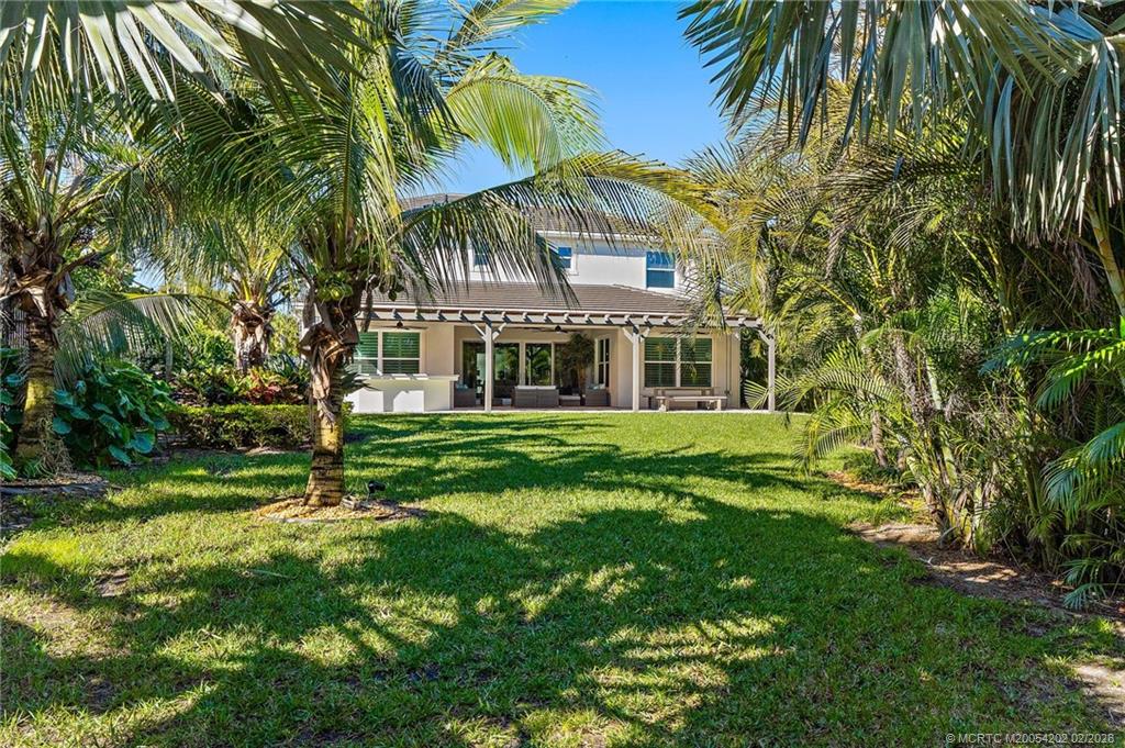 Langford Landing is a unique gated community of 57 newly constructed estate homes, each with similar architectural styling, 3-car garages and boat slips at the private marina. . . this is a rare find! This 4-bedroom, 4. 5-bath home has designer interior features including all en suite bathrooms, custom cabinetry with "soft close" doors and drawers, crown molding, quartz counter-tops, custom closets, and plantation shutters throughout. The over-sized owner’s suite with soaking bath is located on the first floor with remaining 3 bedrooms on the second floor, along with a large open loft area. Perfect for entertaining with its' extended covered patio, built-in summer kitchen, and sandy "beach" fire pit area; all surrounded by lush landscaping and absolute privacy. Includes a private boat slip with a 20, 000-pound Hurricane boat lift that can accommodate a 40' vessel. Just minutes from the St. Lucie inlet makes this the perfect location and ultimate home for boating enthusiasts.
