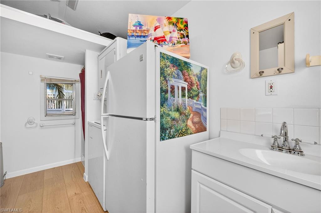 Along with the colorful bright adorable home, there is a shed that has a shower, washer and dryer, sink, refrigerator, bar and pantry for outdoor entertaining! The floors were just redone!!