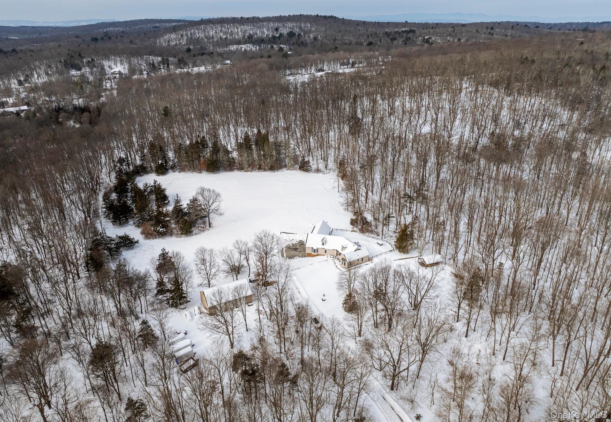 Perfectly situated at the end of a long driveway and enjoying complete privacy is this four bedroom Ranch on 8. 94 +/- acres offering a picturesque setting and located only minutes to the Village of Millbrook. The lovely interior features an open floor plan with many fine details throughout such as Anderson windows, custom trim and hardwood floors. The spacious open country Kitchen is fully equipped, perfect for entertaining. There is a wonderful light-filled Living Room with cathedral ceiling and wood stove which leads to a deck in the rear. The well-appointed primary Bedroom Suite with full Bath offers an oversized walk-in shower and soaking tub. There are two additional Bedrooms served by one full Bath. It is presently being used as a mother/daughter with an expansive open floor plan to include a separate entrance, one bedroom and den. On the lower level, there is a fabulous Family Room and Game Room. There is an attached four-car garage with plenty of storage space throughout the basement. In addition, there is a detached expansive three bay Garage with workshop area, car lift and plenty of storage. This property offers a wonderful setting with mature trees, stone walls with pretty views of the property.