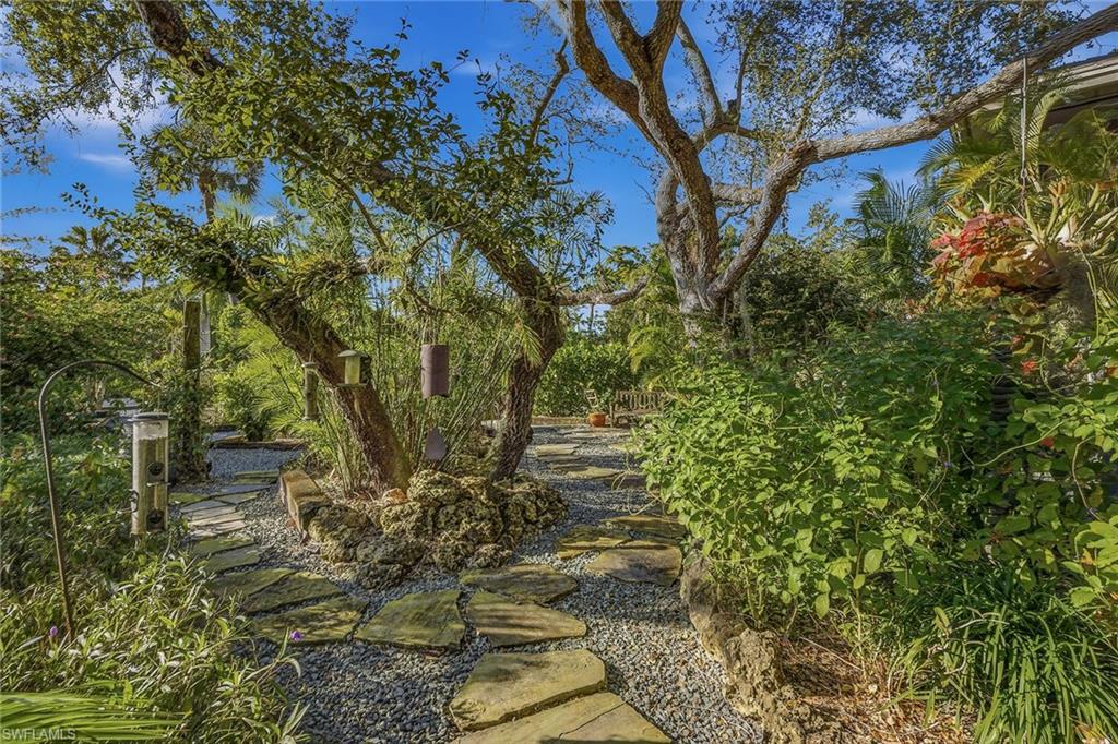This rare, . 54-acre, double-lot home with only one membership fee is one of the unique and special properties available within Hideaway Beach. The home is among the beautiful, mature botanical gardens created and meticulously maintained by the owners. The residence has endless charm and character, and you feel as though you are in a treehouse set atop the incredible setting. This was the second property built in Hideaway and over the years has been transformed into a tropical, extremely private bungalow. With numerous windows/impact sliders throughout, there is abundant natural light coming through. Offering three bedrooms plus den and three baths. What makes the property so special is the endless outdoor living spaces. Multiple decks that overlook the garden and pathways and over 1, 500 square feet of lower-level screened lanai creating endless opportunities for entertaining, recreation and easy access to your park-like setting. The property is in the heart of Hideaway Beach, just a quick golf cart ride to the beach club with formal/informal beach and gulf-side dining, community pool/spa and the new, state-of-the-art sports and wellness center. Featuring top-of-the-line fitness equipment, group exercise rooms, personal/group training, multiple golf simulator bays, physical therapy, nutritional counseling, well-appointed locker rooms with spa-like amenities, drink bar and more. Hideaway Beach is one of Marco Island's hidden gems and is more than just a community, it's a lifestyle. Designed to enhance residents' quality of life through array of amenities, programs available and social environment. Guard-gated entry, over two-miles of beach, nine-hole golf course, tennis, pickleball and more. This represents the least expensive home in Hideaway Beach at time of listing and priced for a quick sale. A must-see to appreciate.