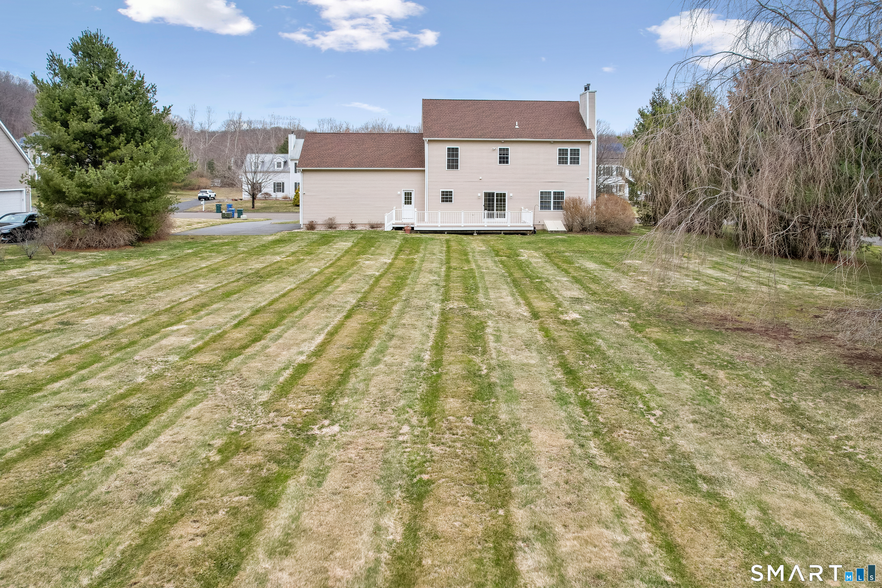 Move right into this well maintained and updated 4 bedroom Colonial that is located on a quiet cul-de-sac street! On the first you'll enjoy the updated kitchen with granite counter tops, the large living room with fireplace, formal dining room, and a den that could be a home office. One the second floor there is a primary bedroom with tray ceilings, a full bathroom, and a walk-in closet. Also upstairs are the 3 other bedrooms and a large bonus room above the garage! Outside, there is a large rear deck that overlooks the large flat private backyard that backs up to the woods!