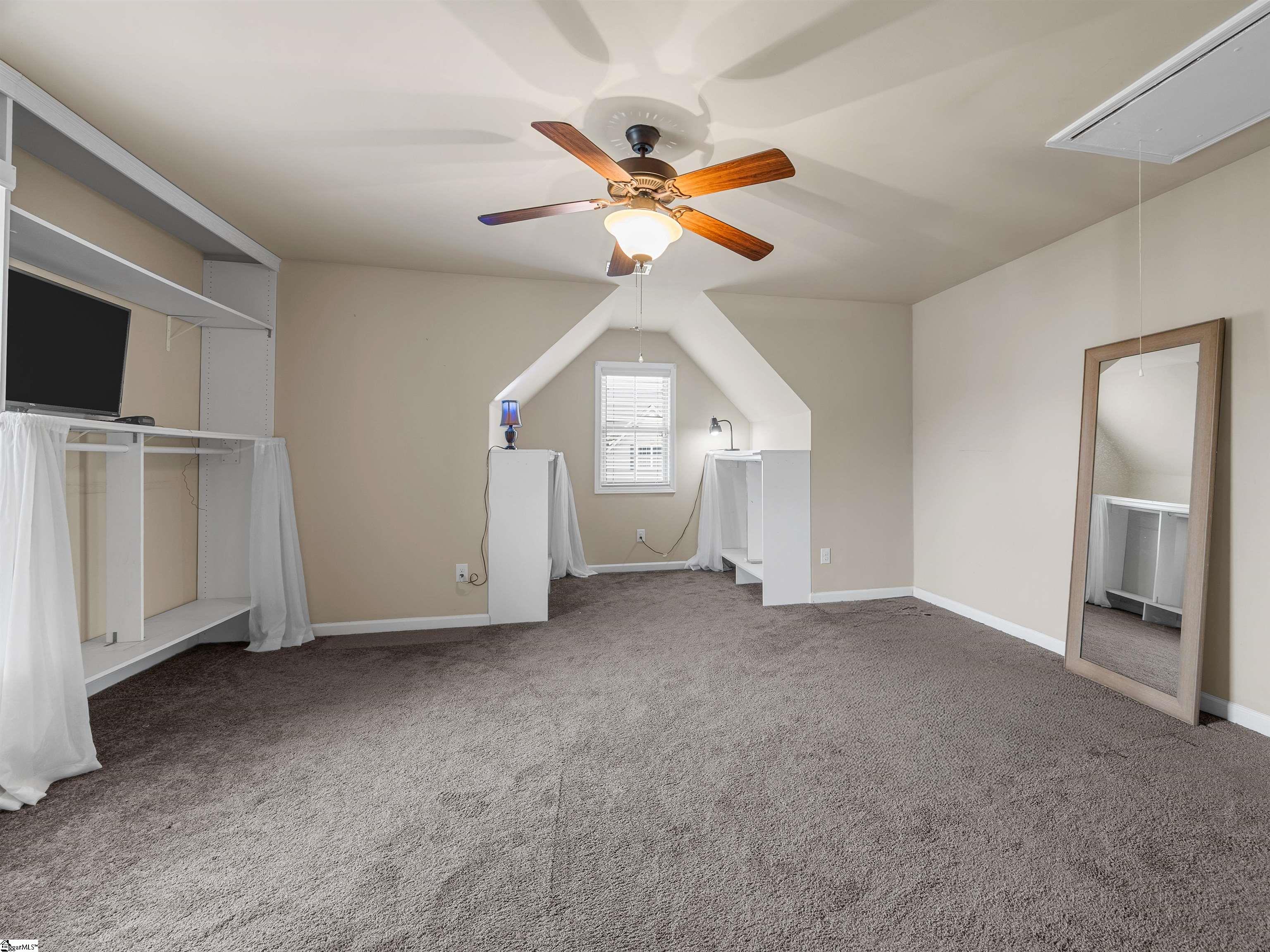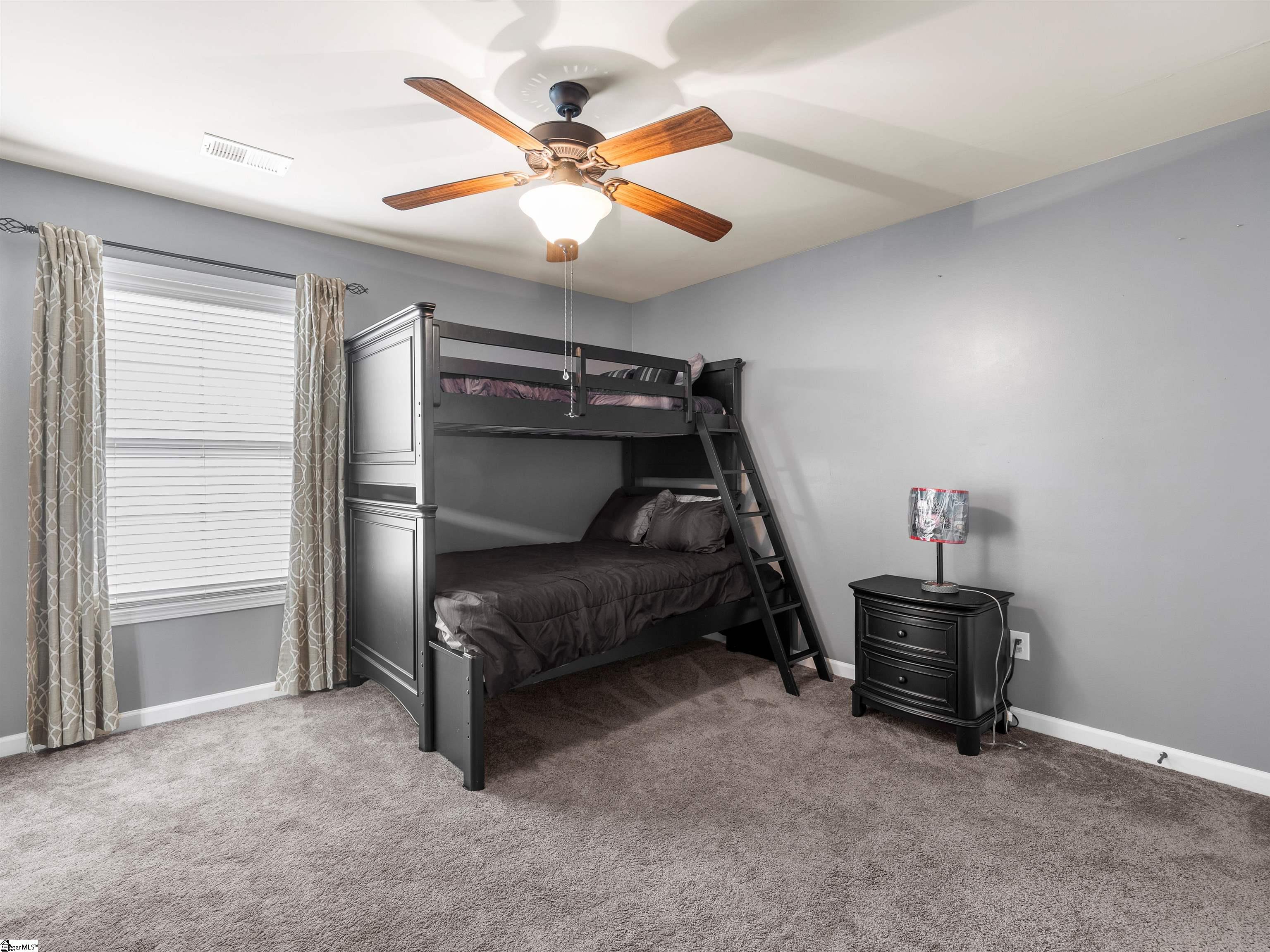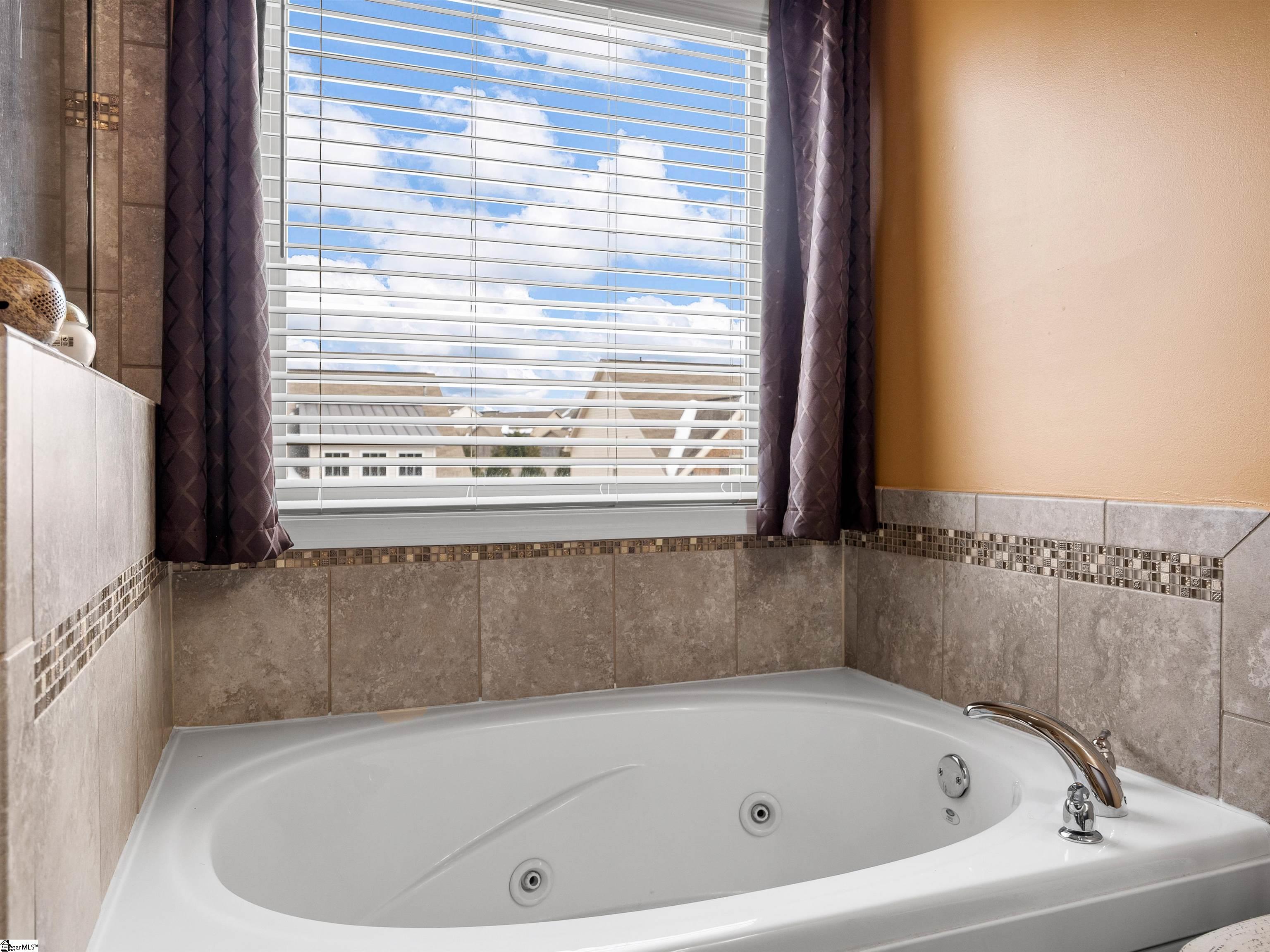Welcome to 450 Bucklebury Road a beautiful five bedroom, four bathroom home in a prime location. The moment you enter from the front porch you’ll be greeted by a foyer that seamlessly integrates the living, dining, and kitchen areas. The kitchen is equipped with granite countertops, tile backsplash, stainless steel appliances (including a gas range), a pantry, and large center island. The breakfast area leads to a sunroom where you can access the backyard. There you will find an oversized concrete patio with a gas hook-up for your grill, storage building that conveys, and fenced in backyard. Back inside, The great room is open to the kitchen and includes a cozy corner fireplace with gas logs. Finishing out the main floor is a bedroom (Murphy bed will convey) and full bath that provides convenience for potential guest. On the second level you will find one bedroom that was used as a walk-in closet for the current owner and a full hall bath. Two additional spacious bedrooms provide comfort and share access to a full bathroom. The primary suite features a large bedroom area, en-suite bathroom with a tile shower, jetted tub, dual vanities, and walk-in closet. The walk-in laundry room is also located on the 2nd floor with close proximity to all bedrooms. The roof was replaced in 2025 and solar panels are owned, to help lower the cost of energy bills. This home is situated on an upgraded corner lot in Franklin Pointe, a highly desirable community where you'll enjoy access to the neighborhood pool, clubhouse, and playground. Conveniently located near BMW, GSP Airport, I-85, and just minutes from downtown Greer and Greenville. Don't miss out on all this lovely home has to offer!