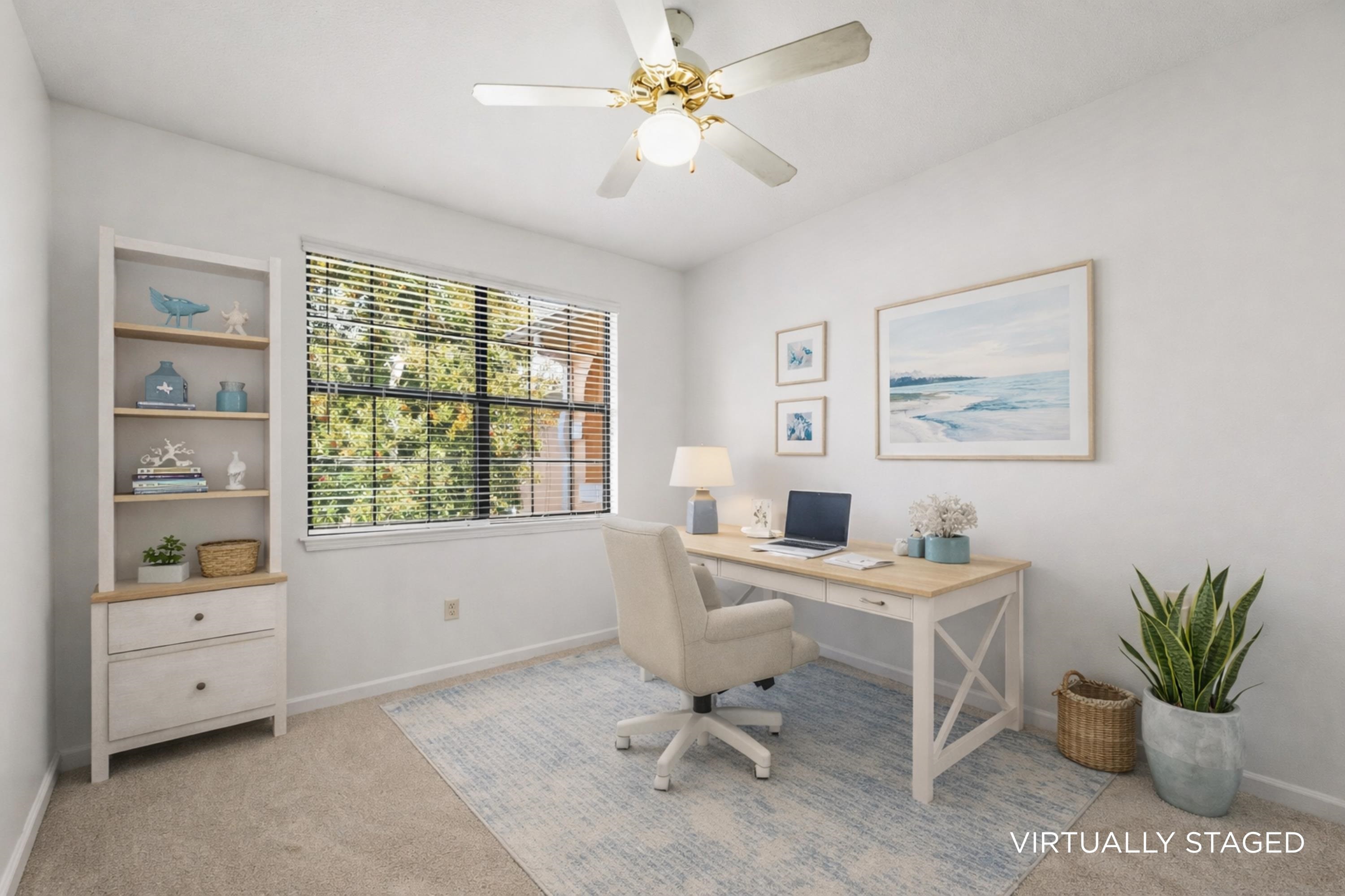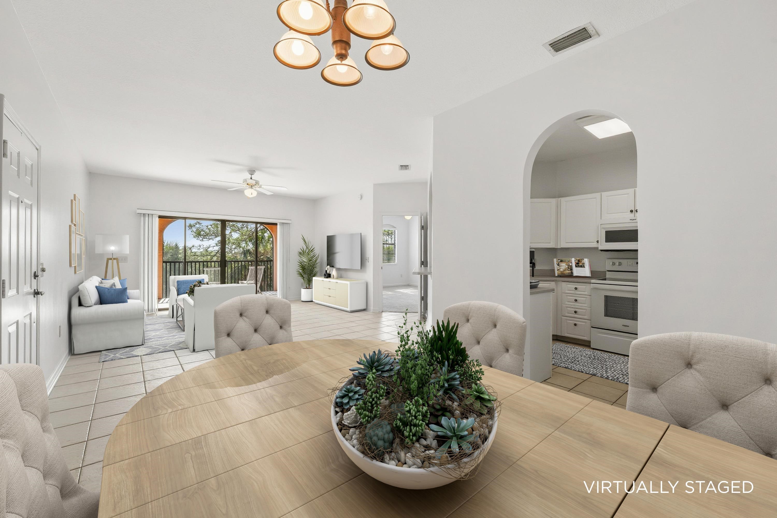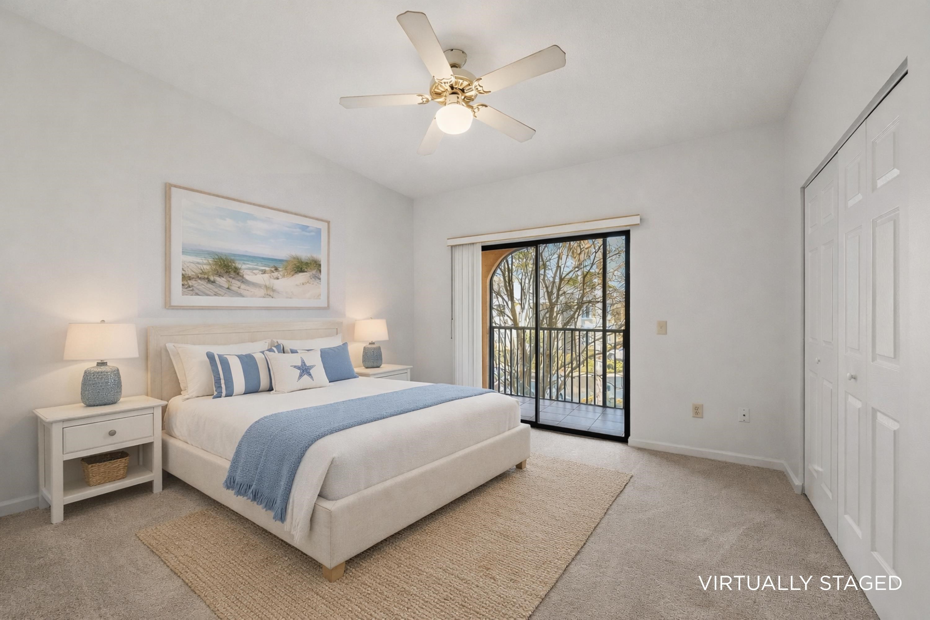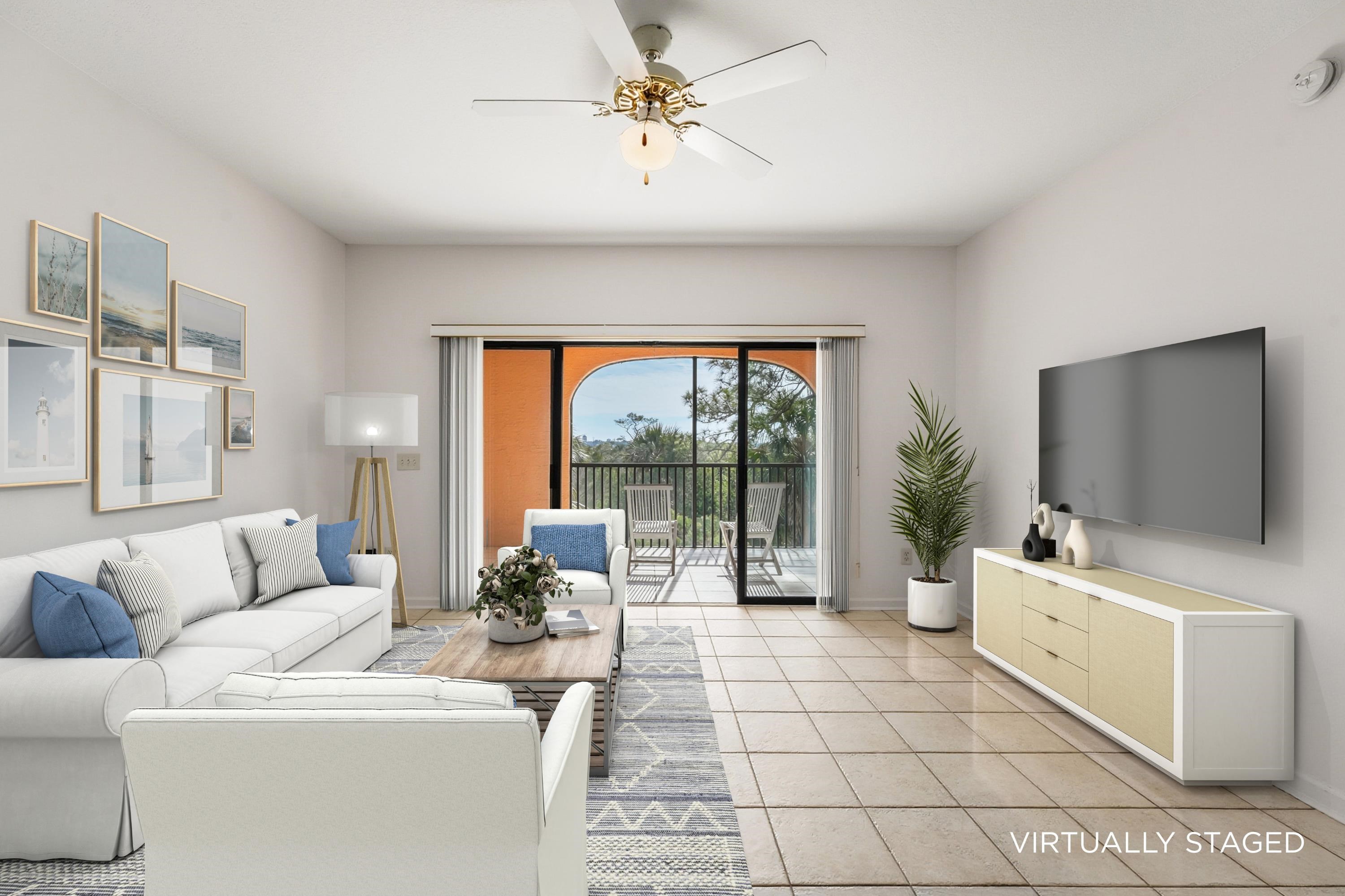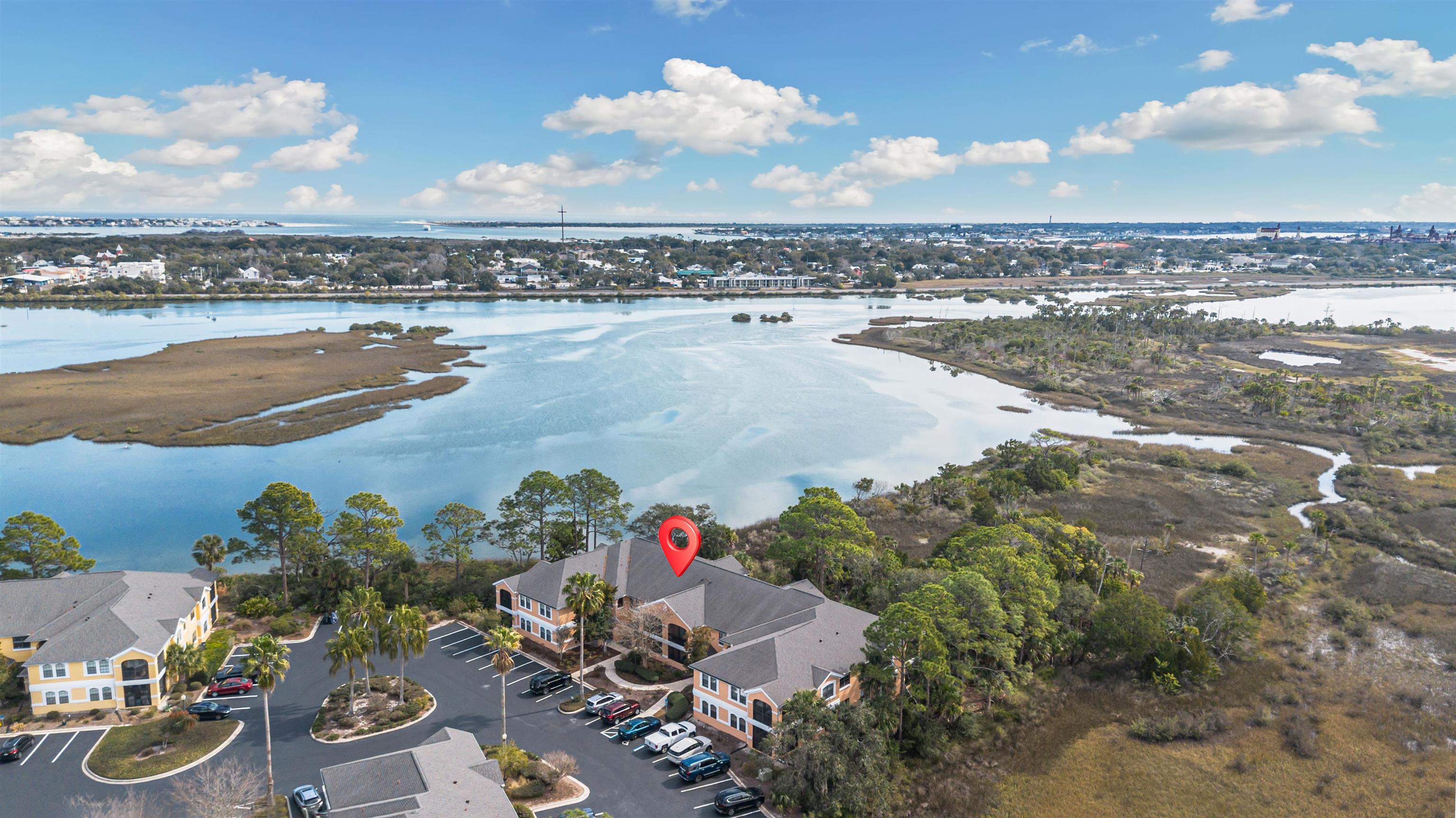 Gorgeous views of the marsh, river and downtown skyline from this spacious, second-floor Vista Cove condo. Located on a quiet cul-de-sac, this unit is perfect for the seclusion, privacy, and serenity only a second-floor unit can provide – away from the hustle and bustle of the ground floor. You will enjoy peaceful moments on the screened lanai surrounded by treetops and overlooking the picturesque San Sebastian River and St. Augustine skyline. The spacious floor plan provides an open living area, primary bedroom with ensuite bath and two guest bedrooms, one with an additional screened balcony. Amazing community amenities now include high speed fiber internet connection for streaming or working from home! Nestled in a gated community, it offers a true retreat with outstanding amenities, including a clubhouse, two pools (one heated), jacuzzi, fitness center, fishing pier, picnic area, and free RV/boat parking. Recent roof replacements and new exterior paint enhance its value. Seasonal landscaping beautifies walking trails and bird-watching spots. Enjoy breathtaking river and downtown views from the community pier, particularly during sunrise and sunset. Minutes from Historic Downtown St. Augustine, restaurants, shopping, and the beach, this property offers tranquility in an unbeatable location. You will love living here!