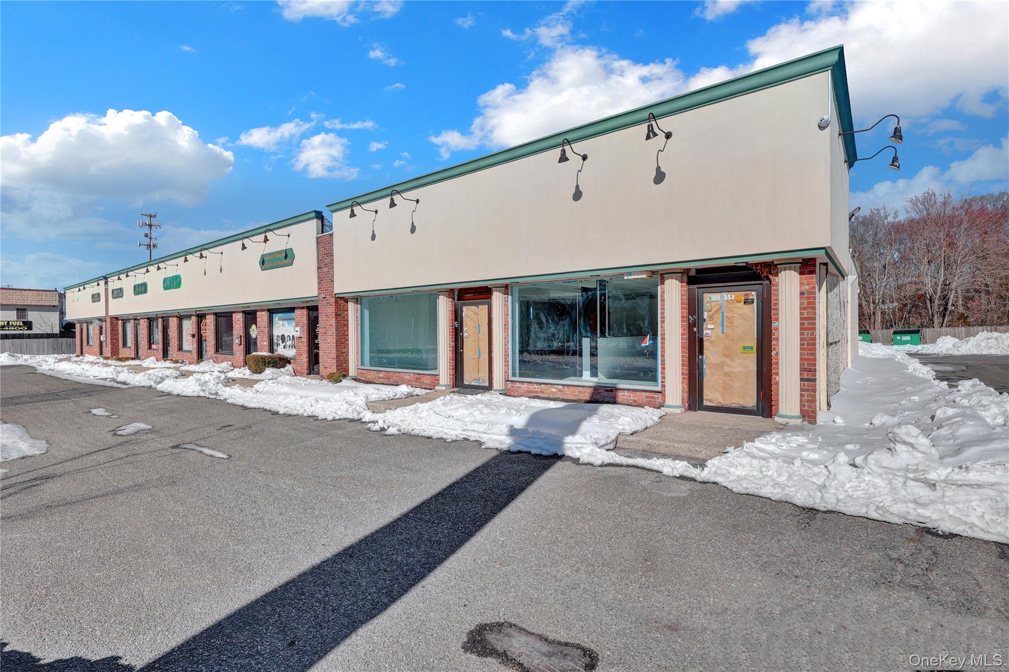 High-visibility corner commercial space offering approximately 2, 068 SF in coram plaza. Features include large storefront windows providing excellent natural light, an open and flexible floor plan, two existing bathrooms and rear door. J2 zoning. Convenient access, on-site parking front, and rear. With Pylon signage. Well-suited for appointment-based or destination businesses seeking visibility at a competitive rate.