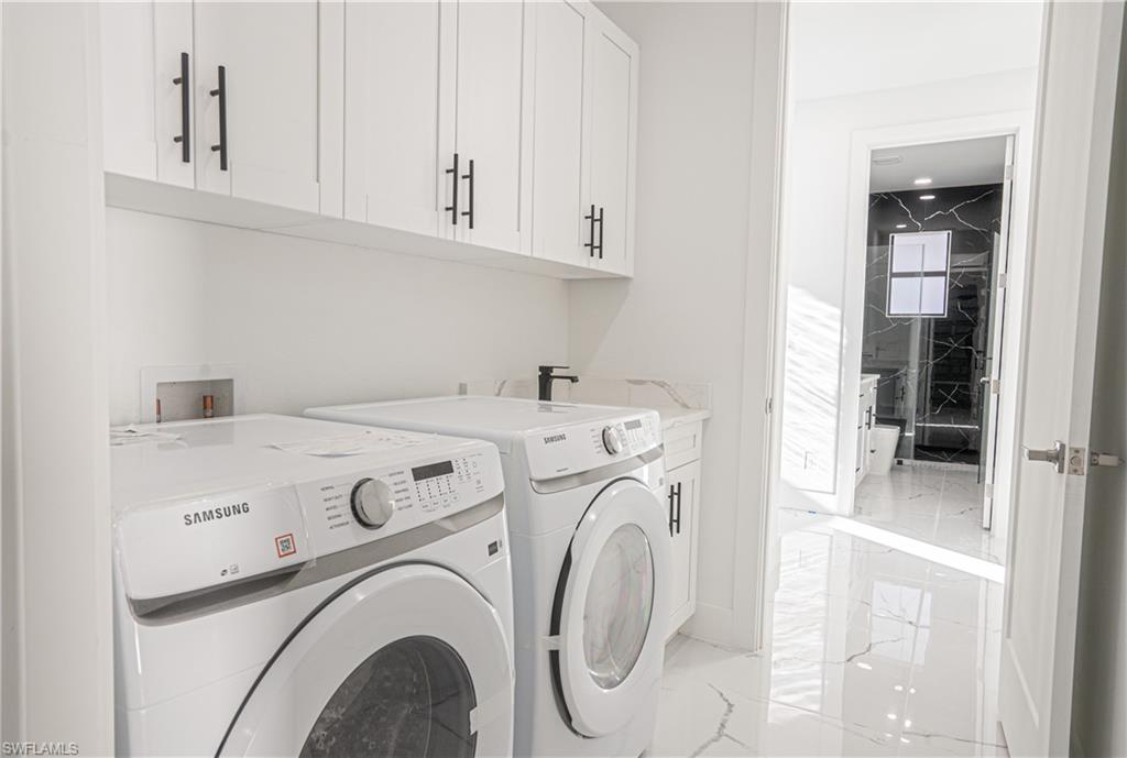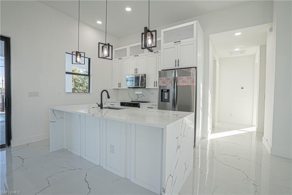 entertaining. The contemporary kitchen seamlessly flows into the main living area, creating a