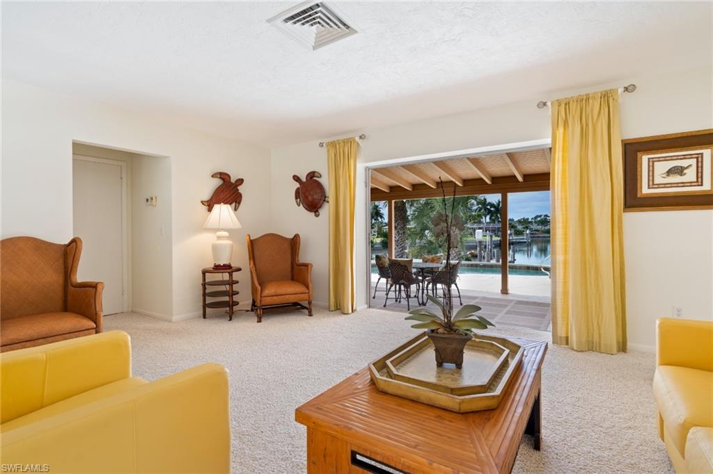 The home enjoys a unique setting with a perpendicular dock that allows wide, open water views from the home and outdoor living areas, rather than the typical blocked sightlines found along many canals. A 7, 000-lb boat lift makes getting on the water effortless, with the Marco River just minutes away. Whether heading out for a sunset cruise, fishing, or a day in the Gulf, this location offers efficient and direct boating access.