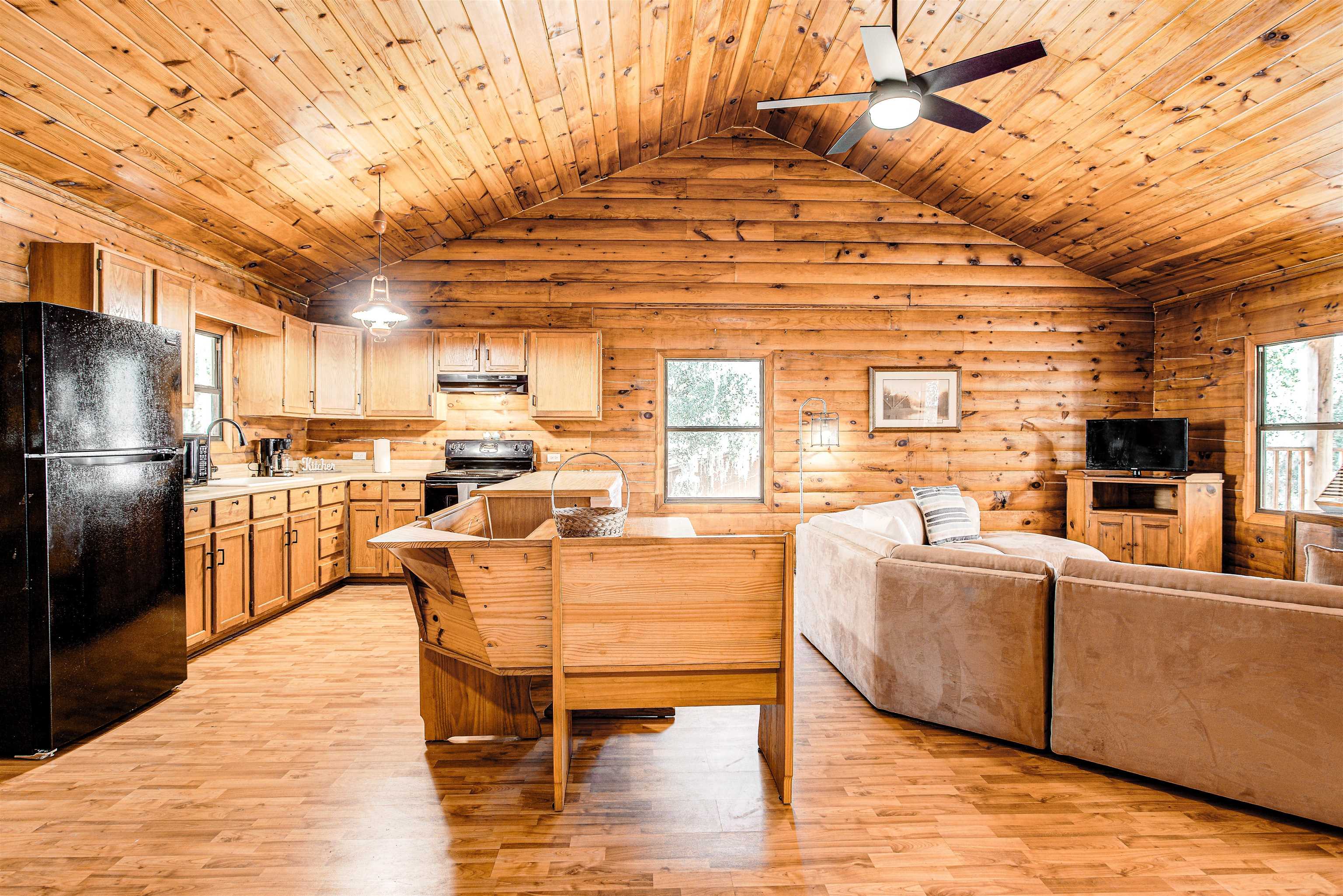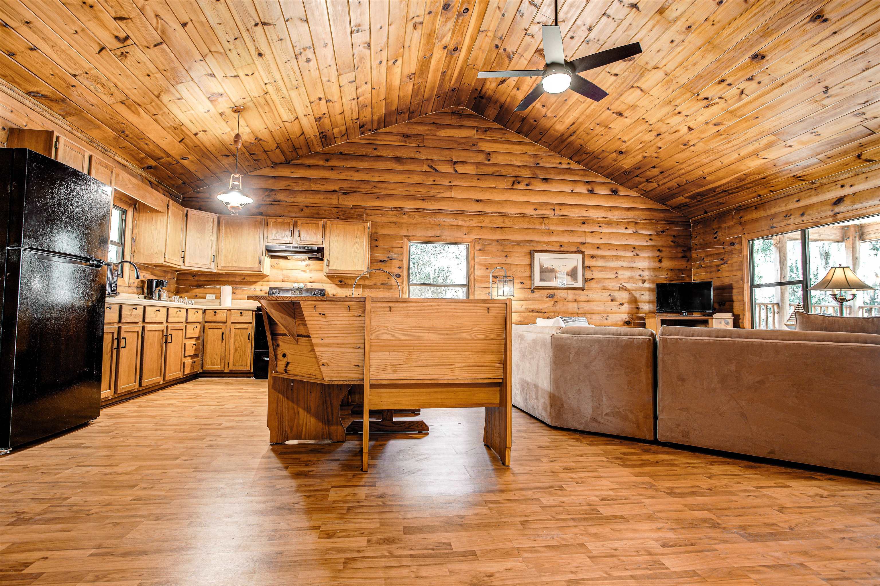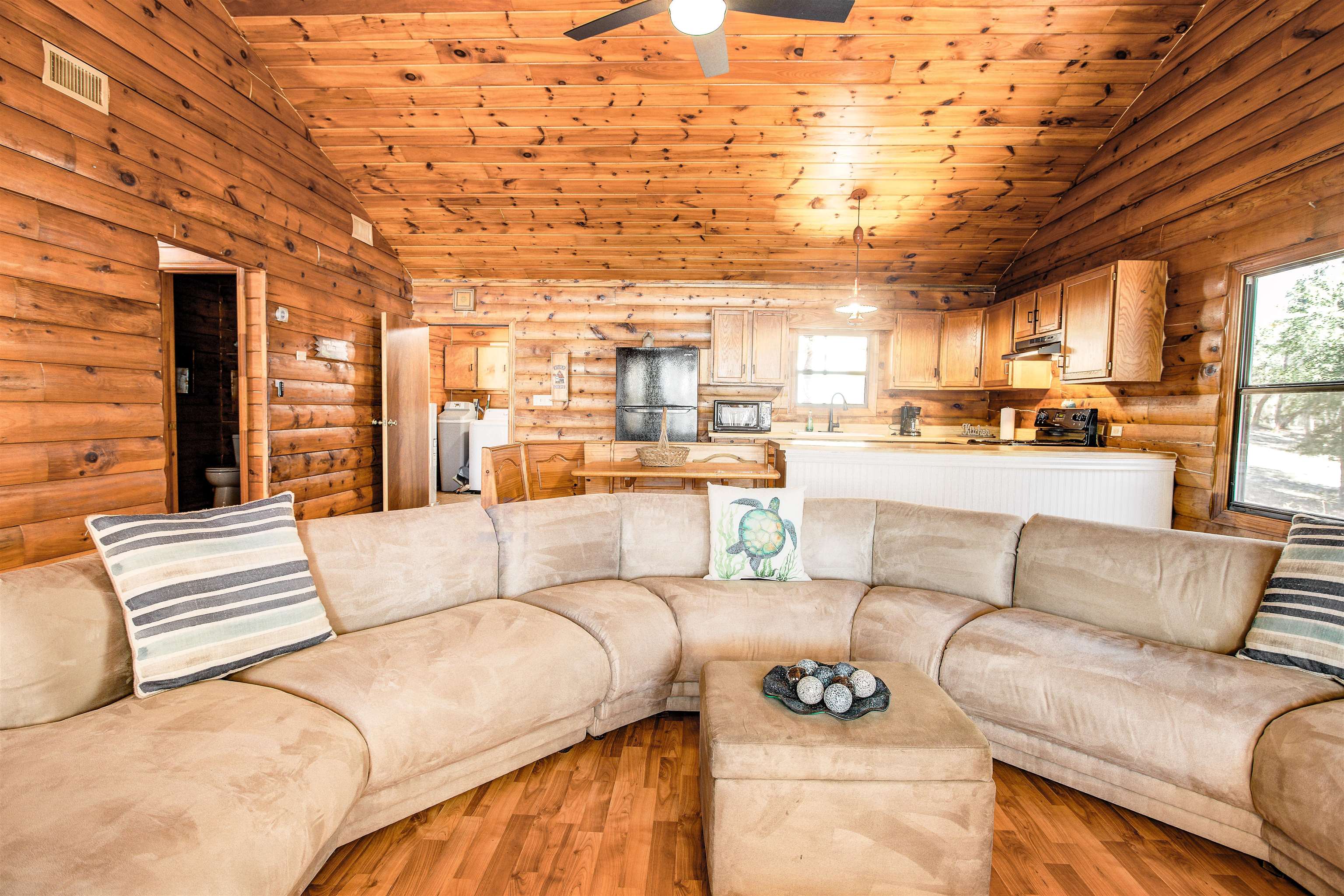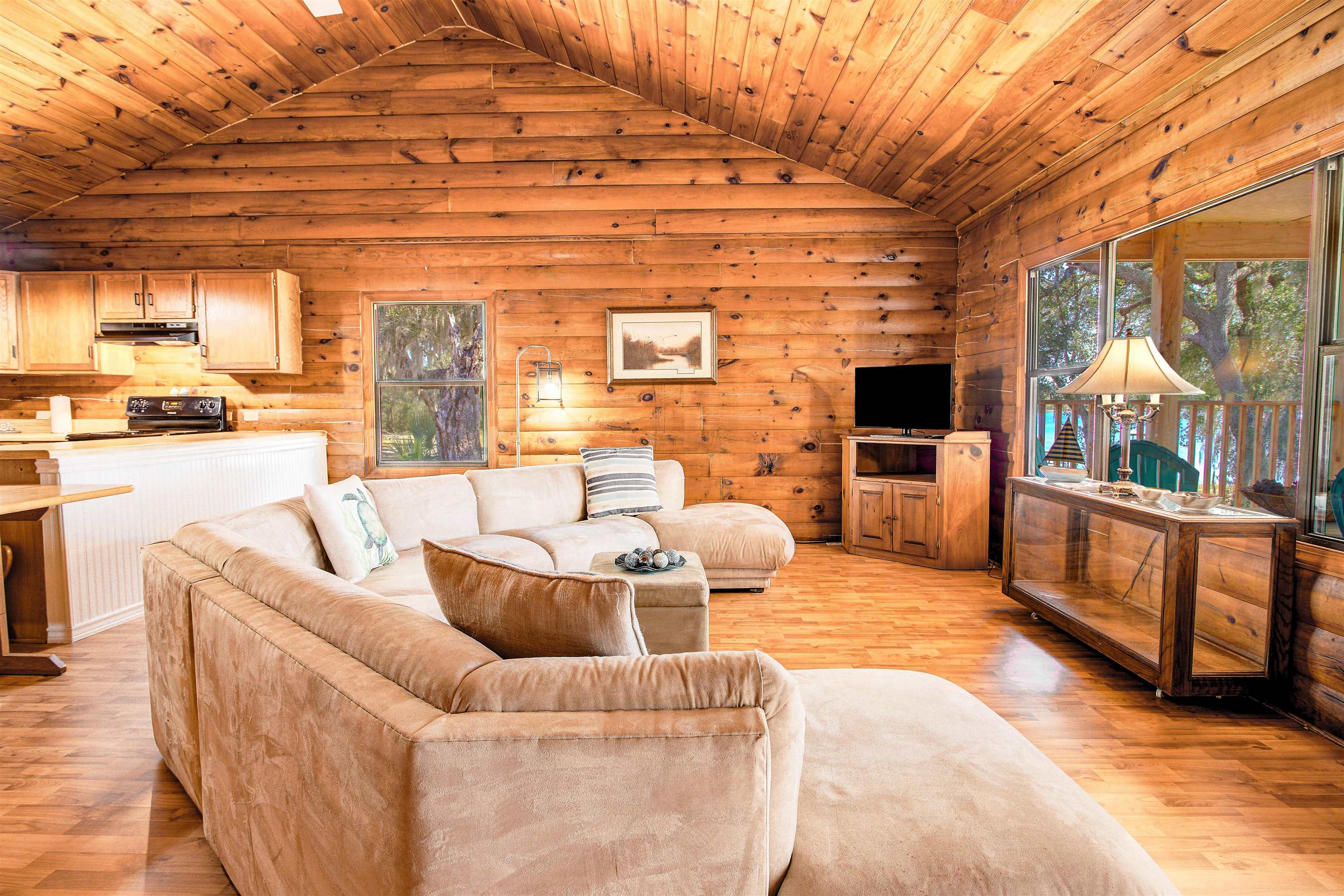 Tucked away on rustic Florida dirt roads, this charming log cabin sits peacefully on the shores of Lake Como in Pomona Park, surrounded by towering oak trees draped in soft moss. The setting feels private, natural, and unhurried—the kind of place where time slows down and the air feels lighter. The 2-bedroom, 1-bath cabin blends cozy cabin character with thoughtful updates, including a new roof, new appliances, and the convenience of a washer, dryer, and water softener. Warm wood tones and a simple, inviting layout make it easy to feel right at home. Out front, a clear, spring-fed lake stretches out from your private dock, perfect for water skiing, boating, kayaking, swimming, and fishing. Mornings begin with glassy water and birdsong; evenings end around the fire pit, watching the sunset sky fade through the trees. A detached garage and additional shed provide plenty of space for boats, tools, and lake toys, while the overall property offers a rare sense of tranquility and connection to nature. It’s a peaceful lakeside retreat—rustic, serene, and unmistakably Florida. Listing agents are Florida Licensed Realtors.