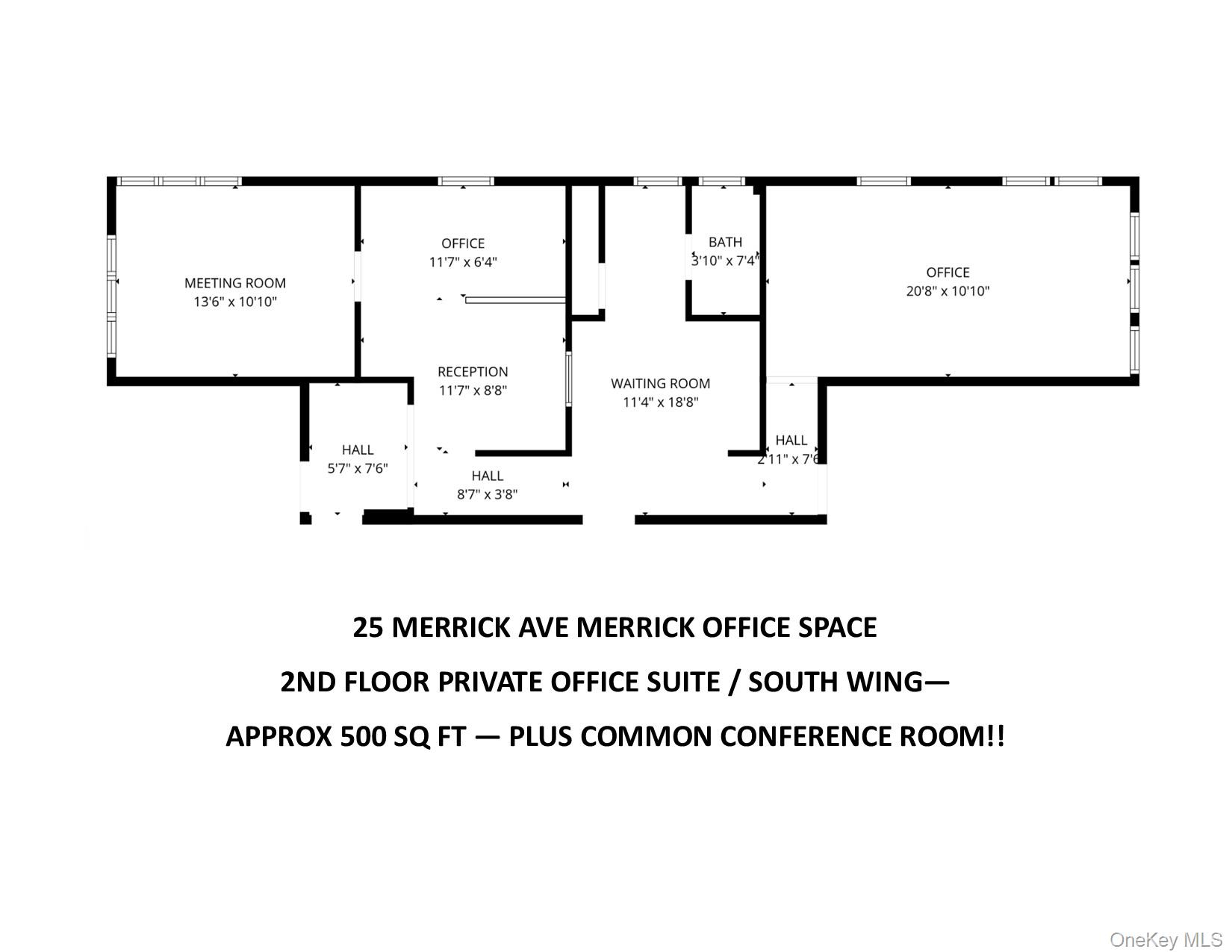 Large, bright, private office for lease on 2nd floor in prestigious law office building. This office/ flex space, located in the south west wing also offers the addition of a beautiful adjoining client waiting room and private bathroom. . . with the possibility of two extra small office spaces for your admin/staff. All of this space is contiguous for a cohesive turn-key professional business presence that will surly impress your clients. Use of conference room included along with a receptionist on the first floor with a general waiting room to meet and greet your clients. Conveniently located next to train station and in the heart of Merrick Village with plenty of parking right behind building. This space is perfect for a professional: law, accounting, mortgage professional or similar industry. Note: Additional space use TBD -- inquire within. (1st floor handicap conference room also available for client convenience. )