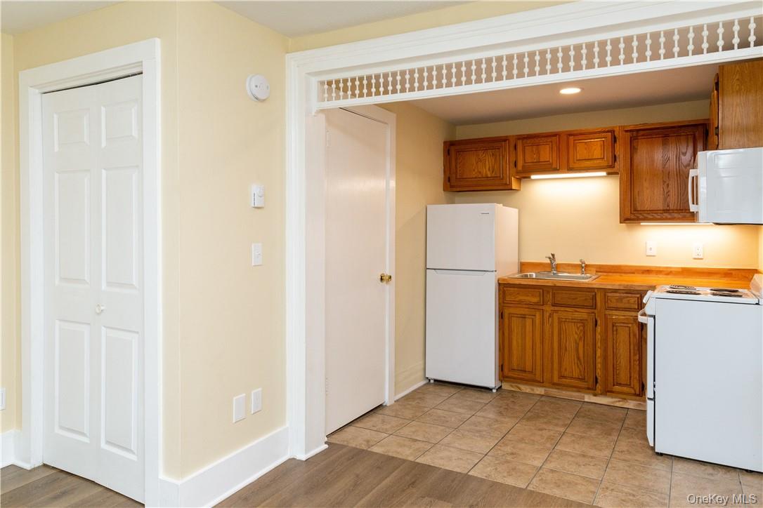A clean and bright first floor studio in downtown Patterson. Overlooking the front lawn and walking distance to the Patterson - NYC Metro North train station, restaurants, and shopping. Enter through the front porch to a bright studio with windows on two sides. Freshly painted and whisper clean. Kitchen with oven, microwave, and refrigerator. Full bath with shower tub. Closet in the studio. Includes off-street parking for one car in the small lot behind the building. Credit score of 650 or higher is required by landlord, no exceptions, and no co-signers. The tenant is responsible for electricity, including electric baseboard heat and hot water, cable and tenant insurance. The landlord pays the garbage, lawn maintenance, plowing of driveway and parking lot. The tenants are responsible for shoveling the sidewalk and walkways to the front door.