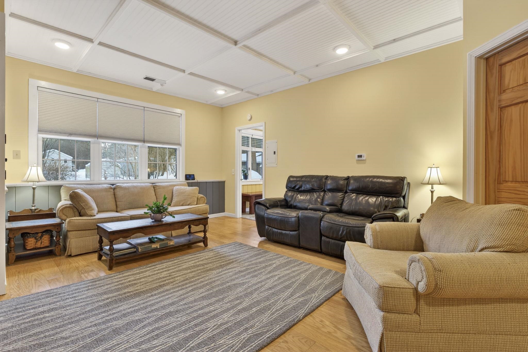 Amazing opportunity available for you here in Wilton! Use it as a single-family home with an in-law/apartment, or live in one side and rent out the other, or rent out both and just use it as a straight investment property! Feature list: 3300 finished sq. ft. of interior space, and around 3000 sq. ft. of exterior barn/garage space, with 5 bays. Heated woodshop. 12+ car parking. Separate well for watering your sun-soaked gardens and greenhouse. Massive bonus room, an amazing hosting space, that joins the main home to the apartment. So many things to take in and appreciate, you have to come see it to believe it all! Inside, there are legally 4 bedrooms, but there are 7 rooms that have been used as bedrooms, so there is an abundance of flexibility with those. The main home has an updated and bright kitchen, a dining room with pellet stove, living room, laundry room, full bath and 3 bedrooms with a bonus room. Between the 2 units is the "summer kitchen, " with seating for 20+ people, built-in shelving, a 2nd pellet stove and a kitchenette. Beyond that, the heated woodshop offers 550+ sq. ft. of workable space, and includes another of the "bonus bedrooms" above it. Finally we come to the apartment, where you will walk into the cozy living room with yet another pellet stove. It also includes a full bath and kitchen, with one bedroom up and another on the end of the unit. Heading back outside, this home sits on a lovely residential street that is great for walking, and offers lovely views of the Souhegan River. Just 5 minutes from groceries and shopping, and with a plethora of trails nearby for hiking, biking, skiing, ect, it's a wonderful and convenient location. Clearly this home has a LOT to offer, so please do come take a look for yourself and see if it's the one for you!